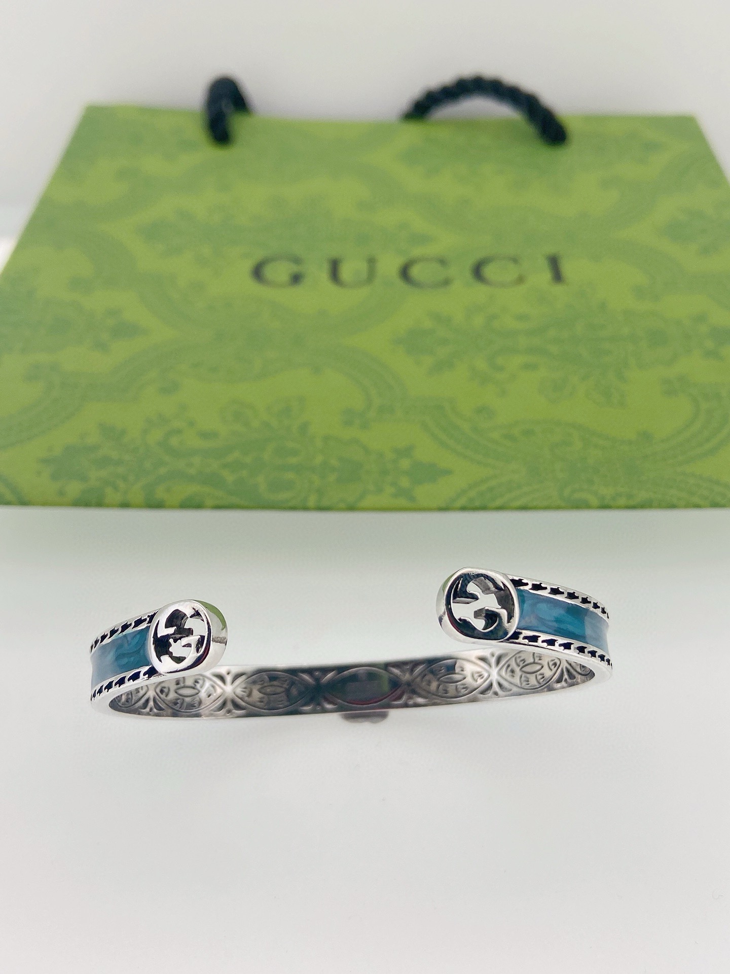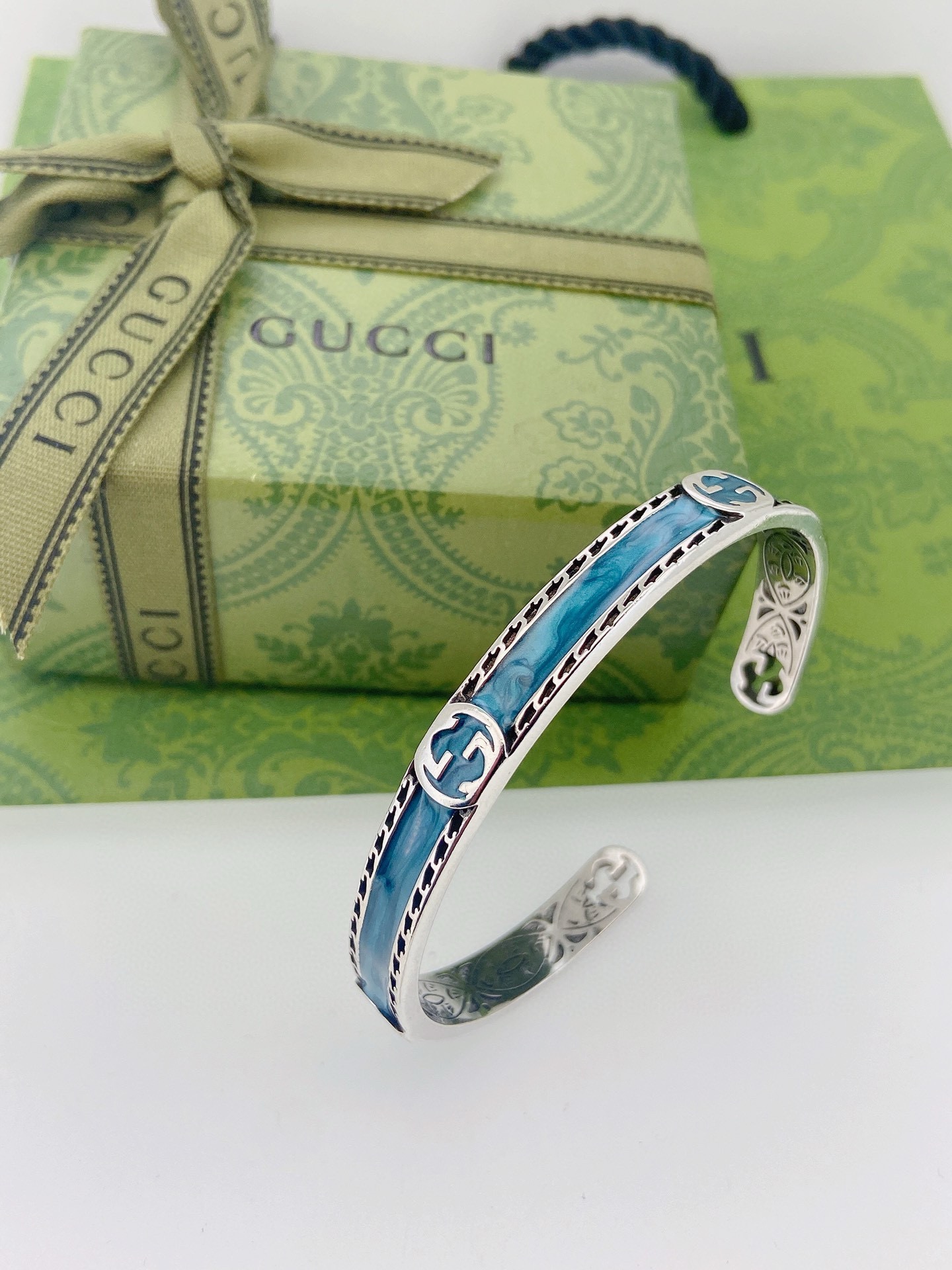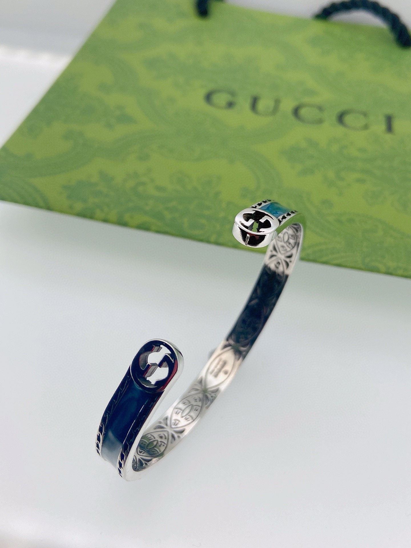 85353944 - Gucci古驰蓝色开口手镯 泰银版本 别具一格的质感和色泽 547164