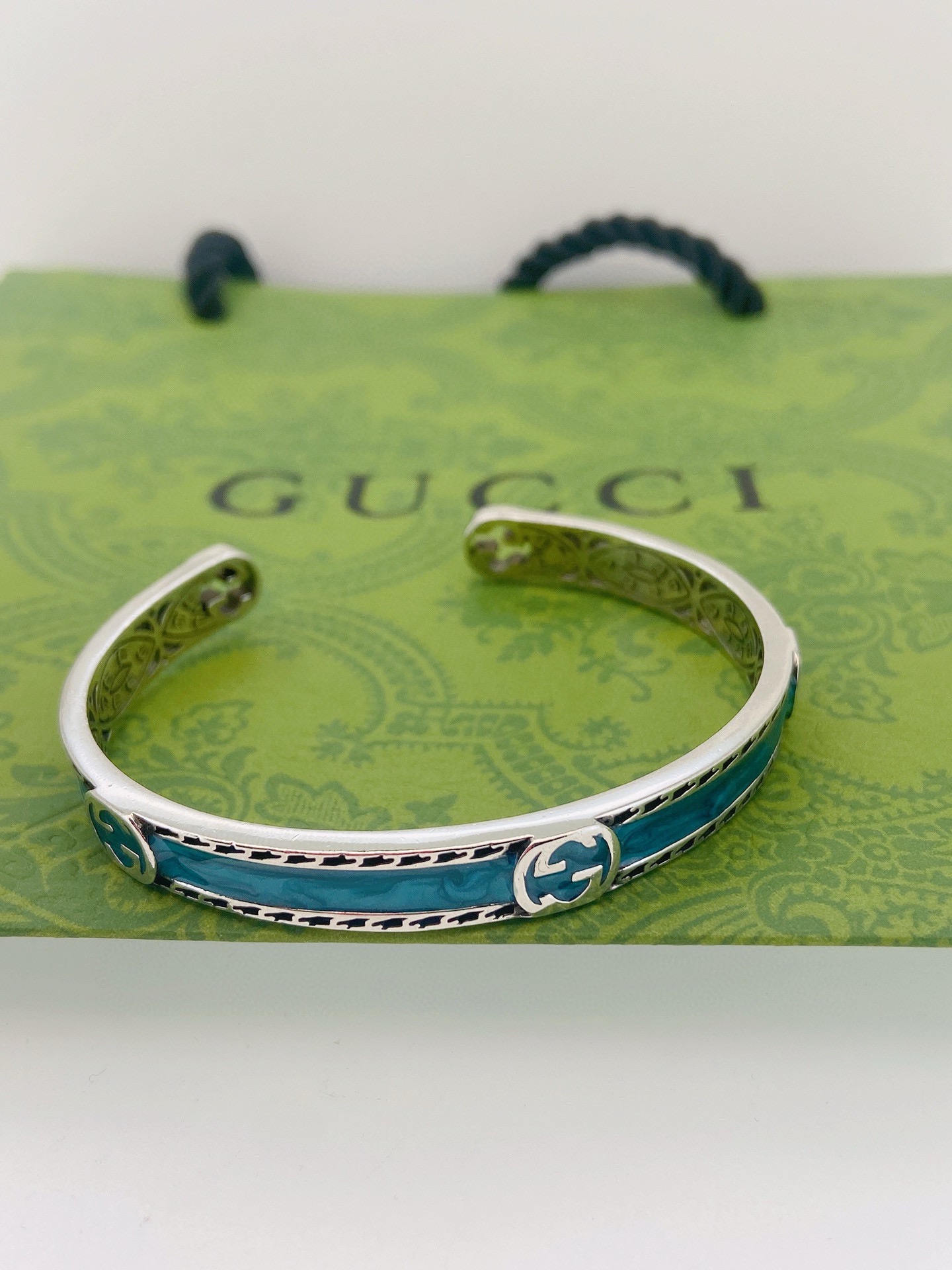 Gucci古驰蓝色开口手镯 泰银版本