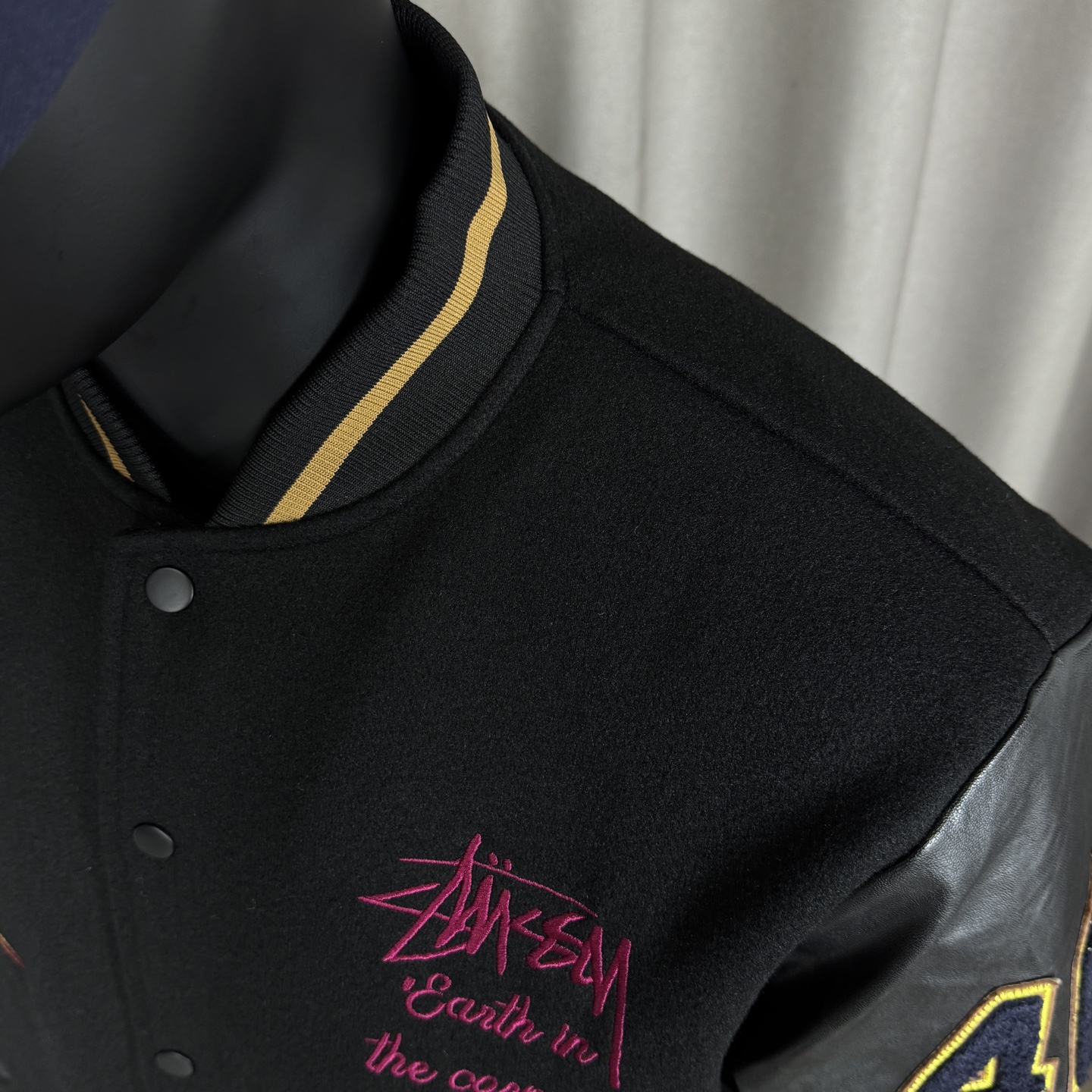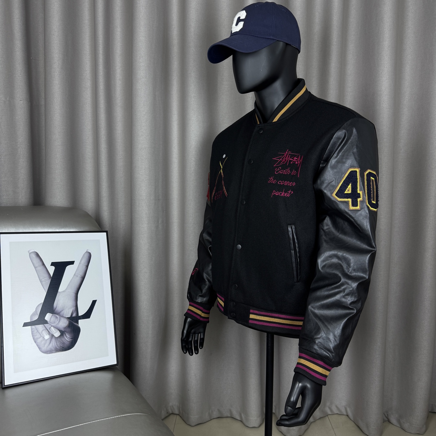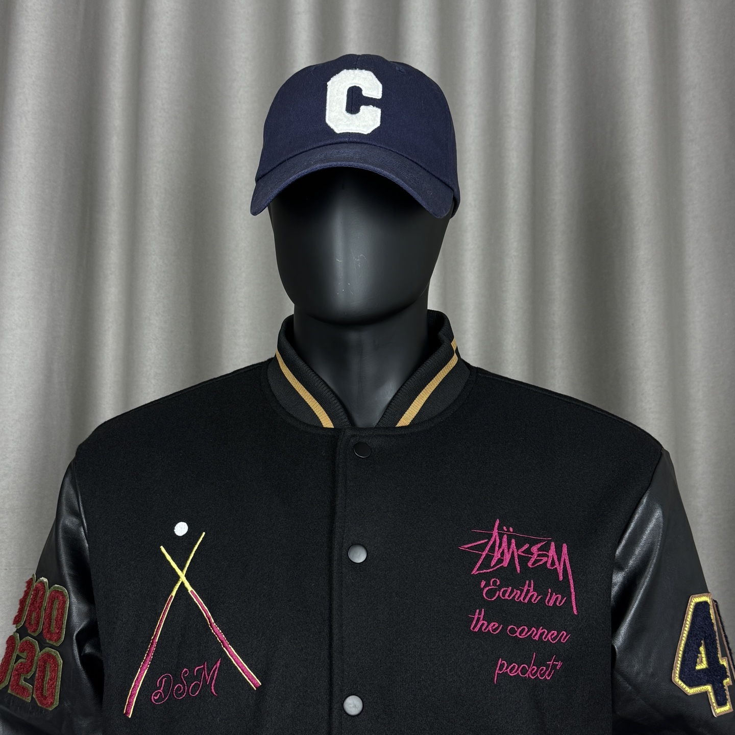 𝑺𝒕𝒖𝒔𝒔𝒚 斯图西夹棉刺绣40周年限定款徽章拼皮贴布绣黑8台球毛巾绣情侣棒球服飞行夹克外套男女同款