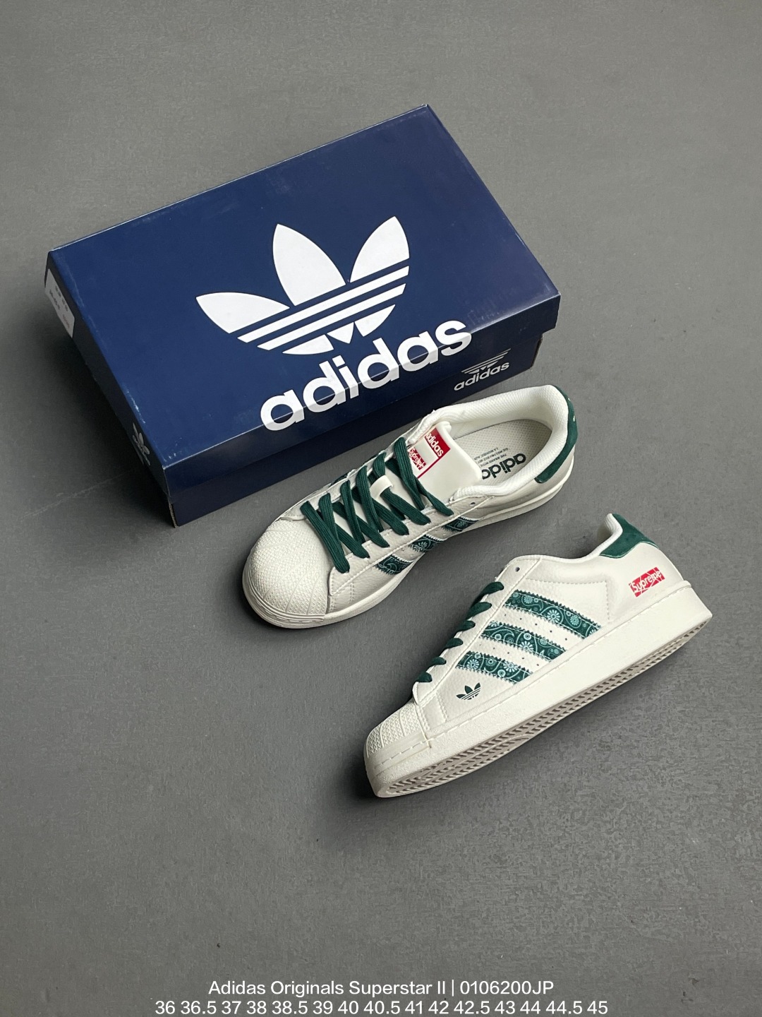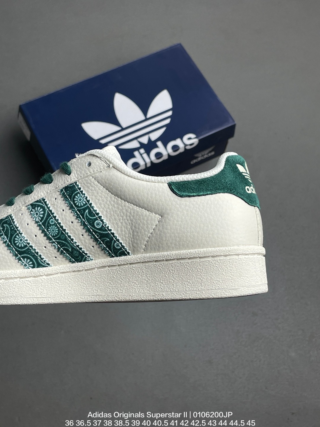Adidas 阿迪达斯 升级原楦原纸版开发 采用牛剖革鞋面材质 2020改良全包围鞋垫 正确2020版鞋底模具及扇贝头盖片阿迪达斯 三叶草Adidas Originals Superstar II 经典贝壳头系列低帮百搭休闲运动板鞋