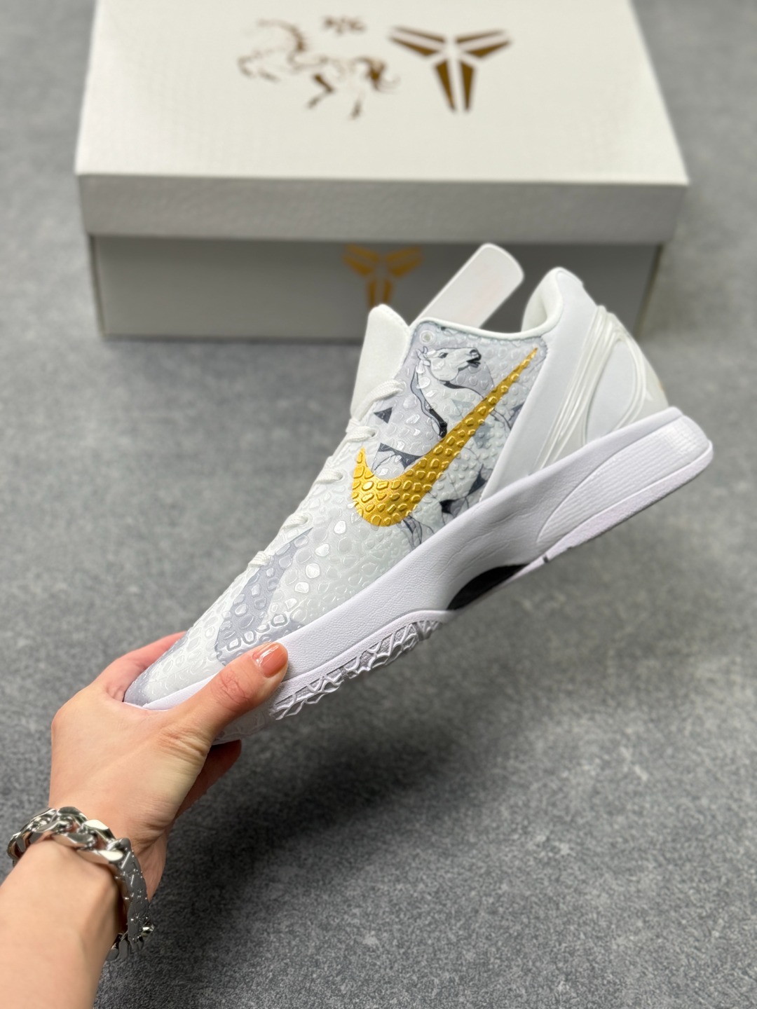 科比6代马年限量款鞋是耐克为庆祝中国农历马年特别推出的纪念版本 以科比 布莱恩特第六代签名战靴为基础设计 鞋身采用中国传统红色与金色搭配 融入马年元素如生肖图腾 祥云纹样等细节 鞋舌或后跟常带有专属 马 字标识 该鞋款兼具高性能篮球科技与文化收藏价值 全球限量发售 深受球鞋爱好者与科比粉丝追捧 成为运动鞋文化与生肖主题跨界结合的经典之作