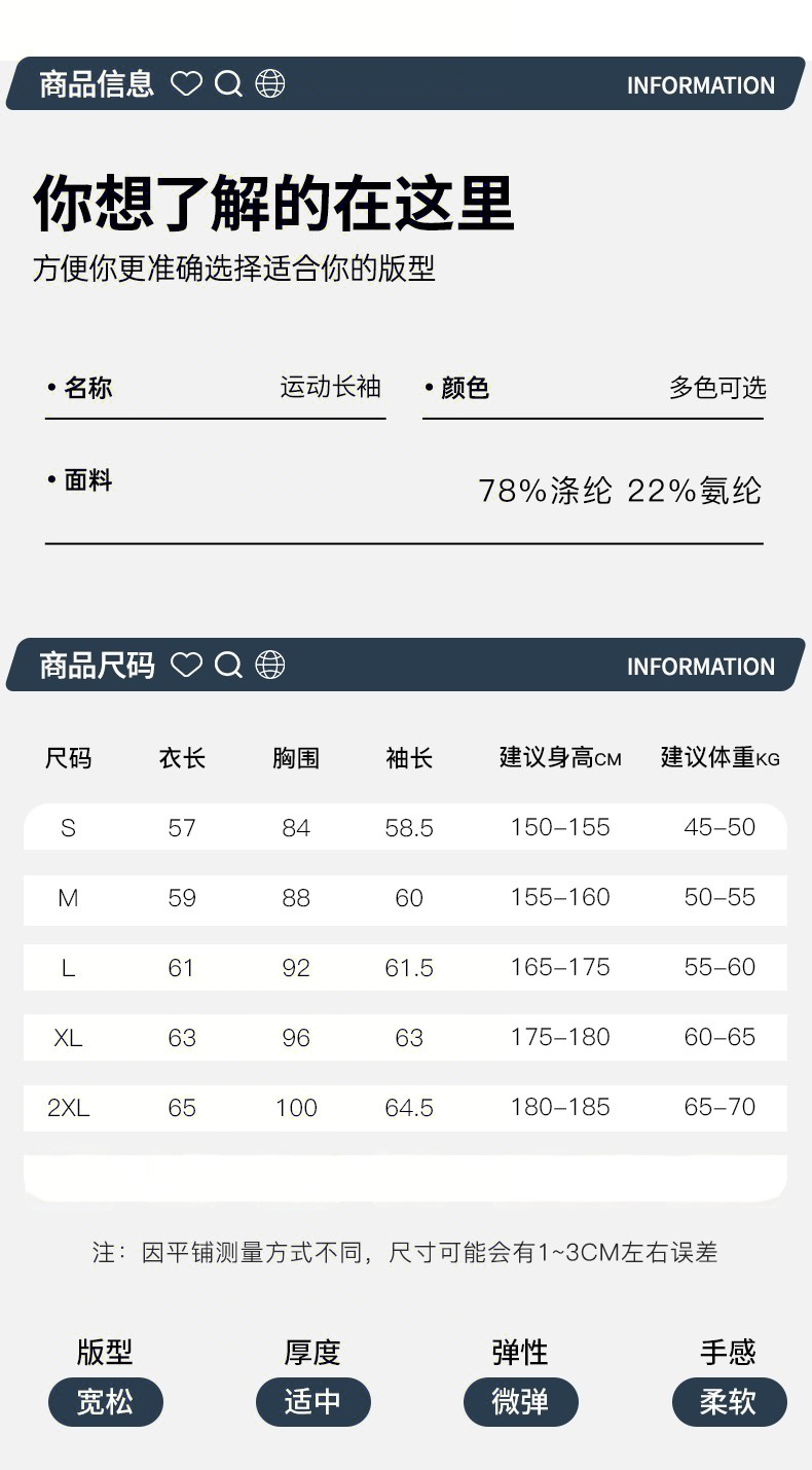 1 涤氨针织面料240G 具有亲肤舒适 弹性好 柔软柔顺 速干 透气性 面料具有7A抗菌功能 减少异味 呵护健康