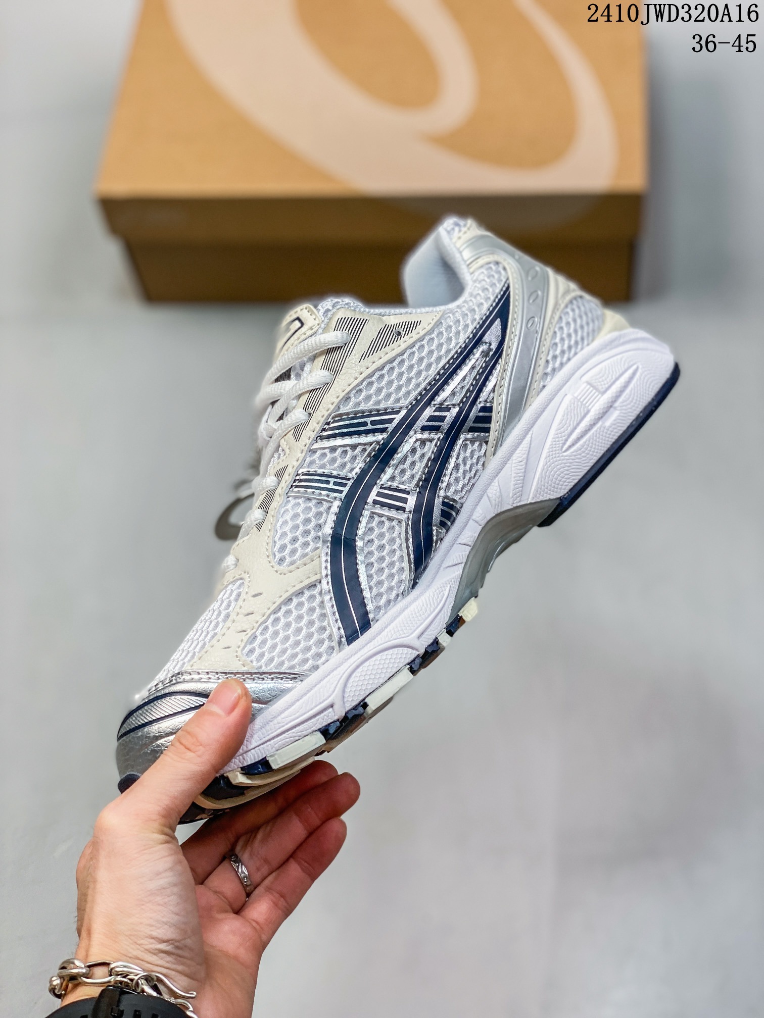ASICS GEL KAYANO 14 于2008 年在万众期待中横空出世 设计师 Hidenori Yamashita 以 Flash 一词为灵感 创造出未来感金属色鞋面 改造升级内在性能 由内而外全面革新 为 GEL KAYANO 家族传承及经典跑鞋文化的延续 创下里程碑式作品 ASICS GEL KAYANO 14 跑鞋重新诠释了复古的跑步形状 并以其 2000 年代后期的美学理念重新铺装 银色与蓝色的鞋面极为高档 网面铺陈与鞋面 鞋头多处细节位增添了透气性 ASICS GEL KAYANO 14的鞋后跟部中底上以及多密度耐磨鞋底增加了 GEL 缓震胶 提供高抗冲击性 缓冲性 可保护脚部免受地面冲击的影响 穿着舒适性十足 入手同款