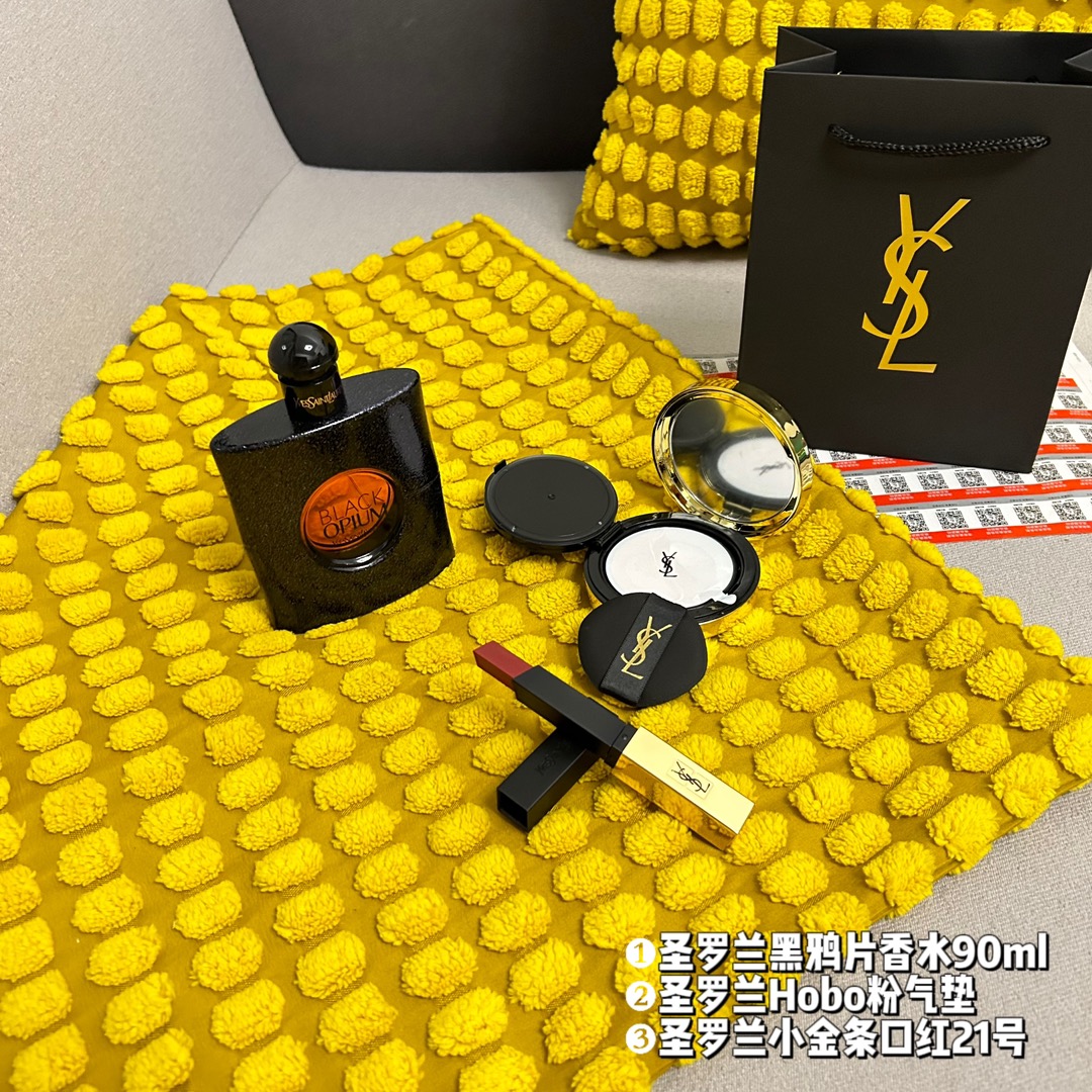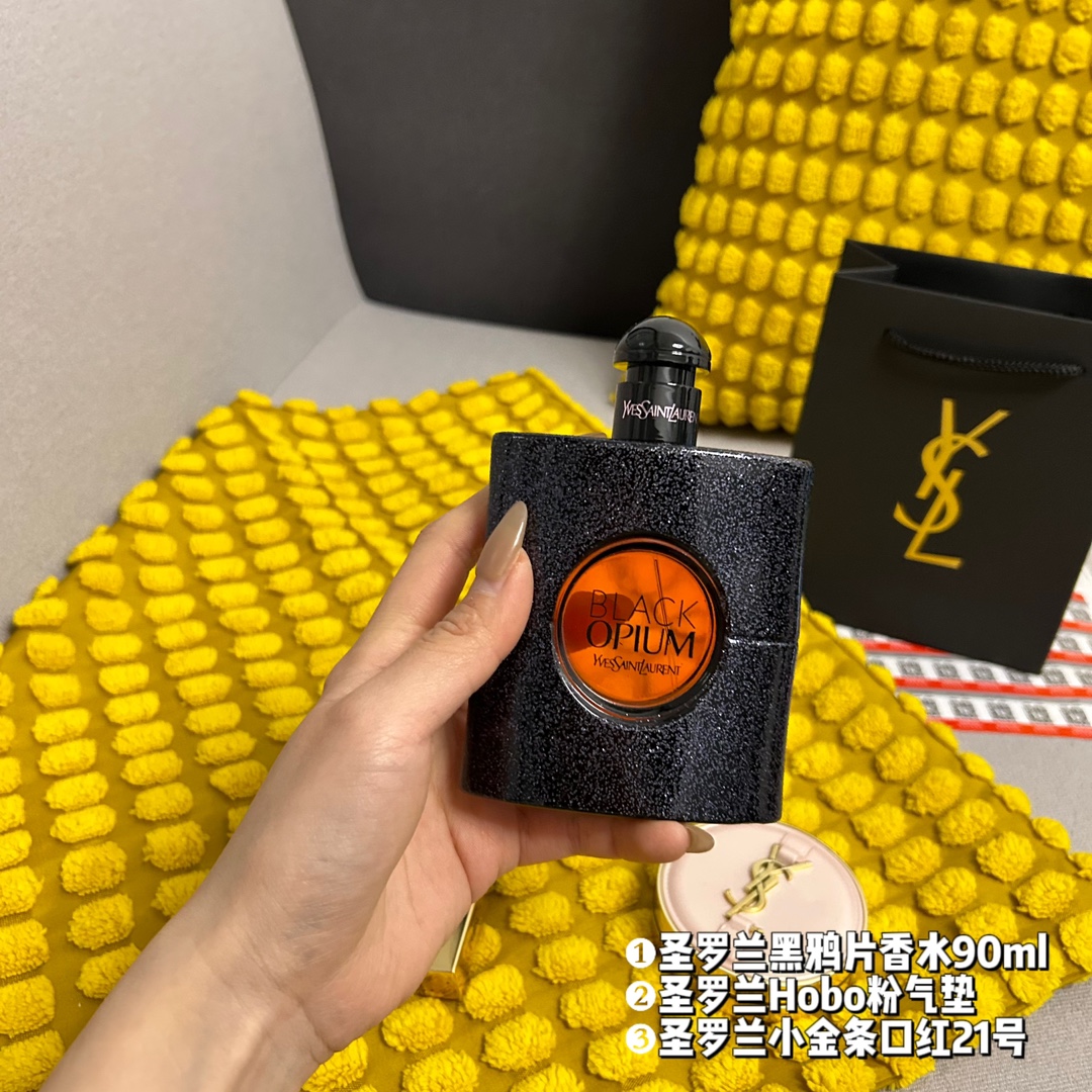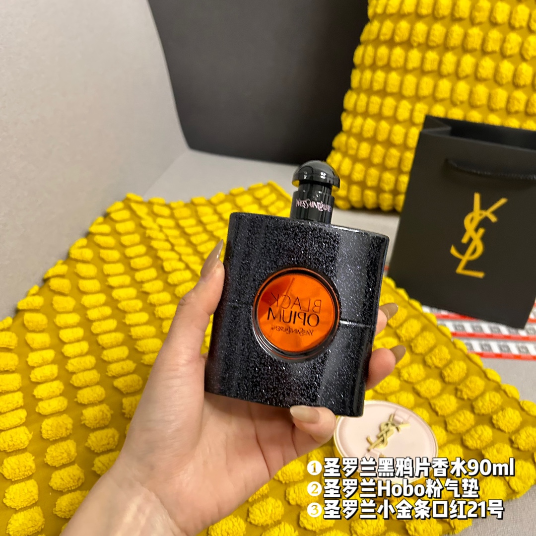 件套 礼袋装 3件套 圣罗兰黑鸦片香水90ml 原单 圣罗兰Hobo粉气垫10号 原单 圣罗兰小金条口红21号 原单 配礼品袋 超级精美 送礼自留都可的超值套组 从妆容到味道从新改变让你拥有另外一种气质 均支持扫码