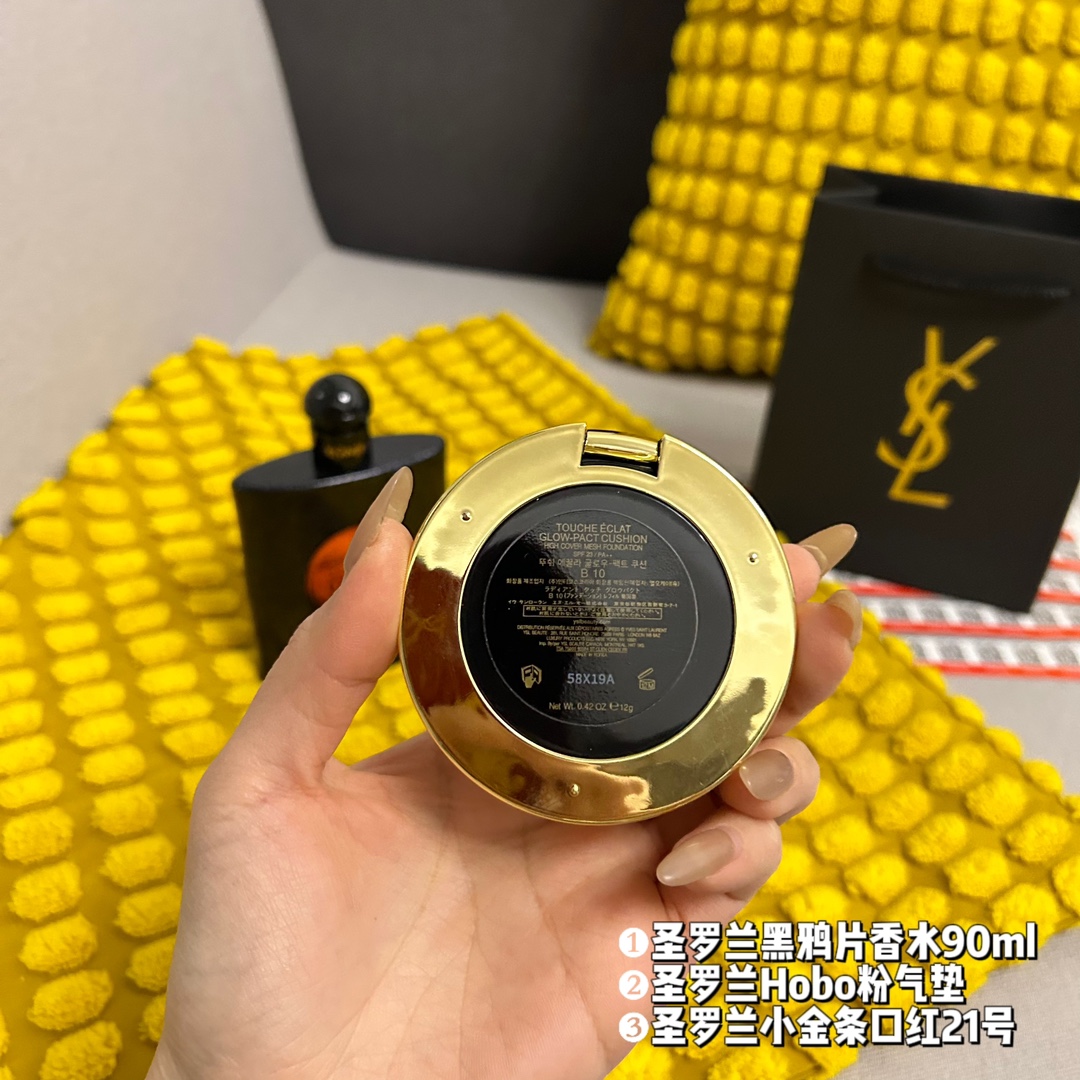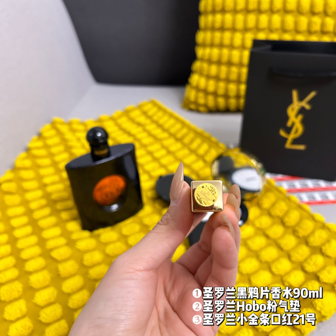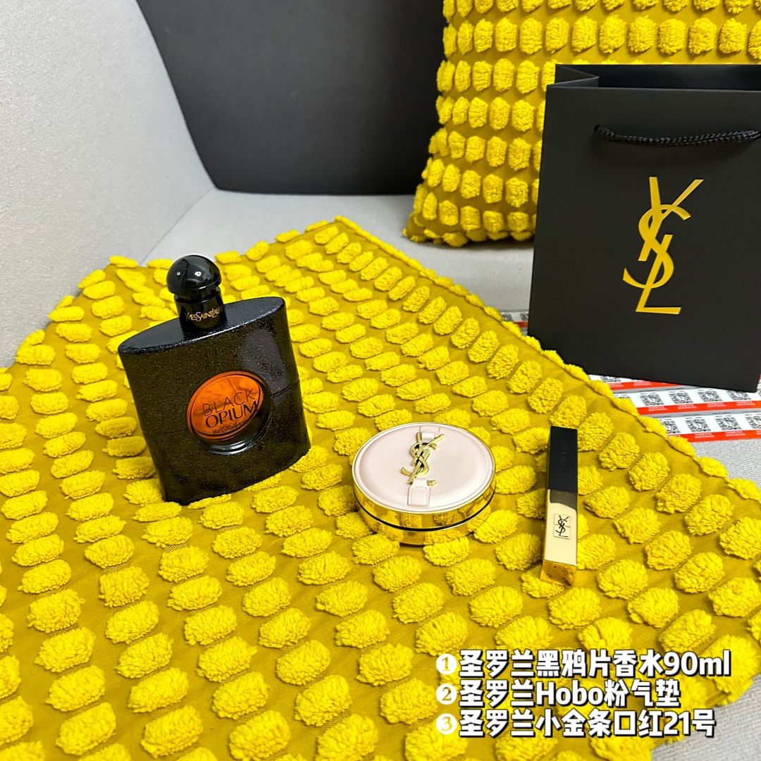 件套 礼袋装 3件套 圣罗兰黑鸦片香水90ml 原单 圣罗兰Hobo粉气垫10号 原单 圣罗兰小金条口红21号 原单 配礼品袋 超级精美 送礼自留都可的超值套组 从妆容到味道从新改变让你拥有另外一种气质 均支持扫码
