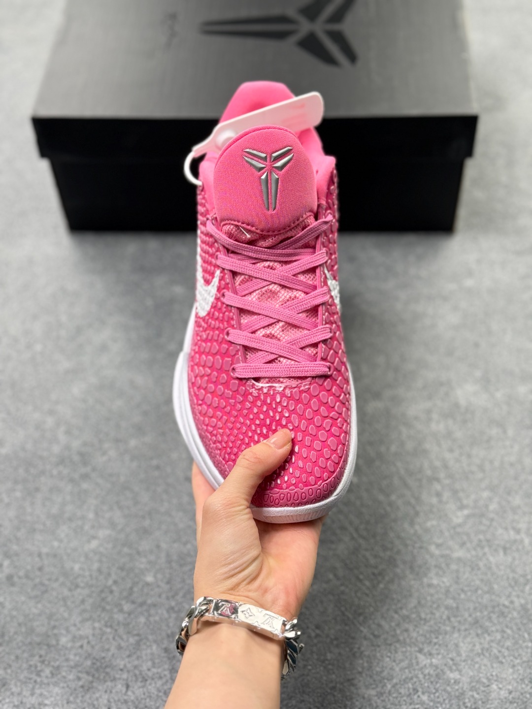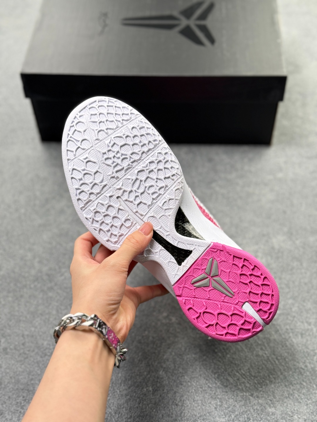 外观灵感 设计灵感来自科比的外号 黑曼巴 将毒蛇的攻击性与速度感融入细节 如聚氨酯 凸点 模拟蛇皮纹理 外底前部刻有 Venomenon 突出黑曼巴的致命毒液