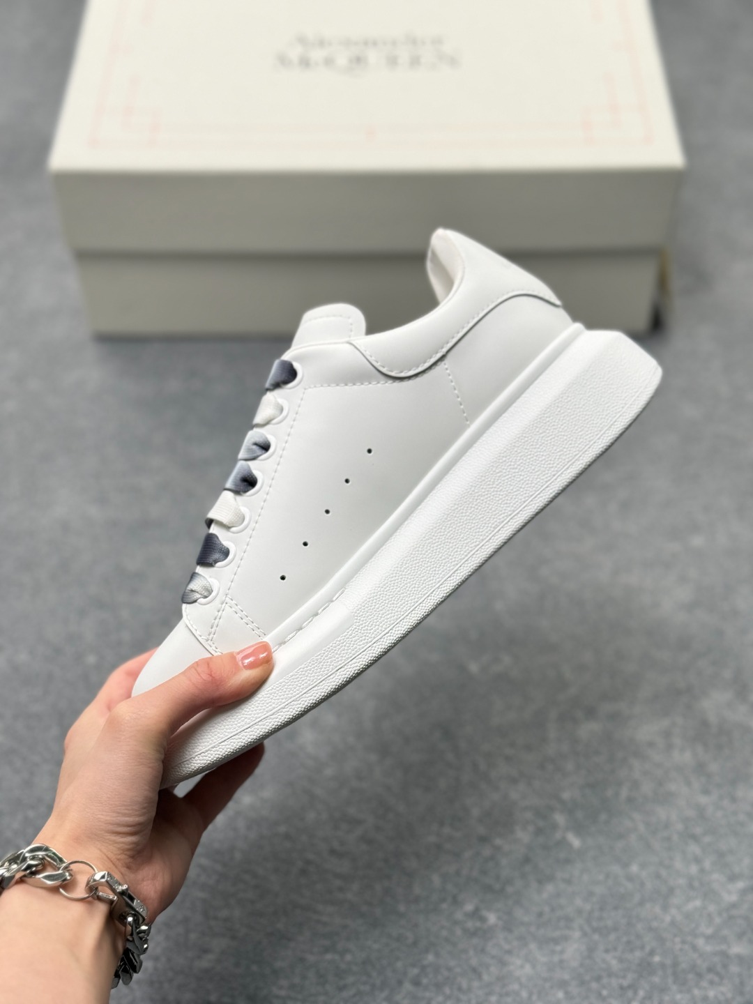 意大利高奢品牌Alexander McQueen亚历山大 麦昆 Sole Leather Sneakers 松糕鞋厚底增高小白鞋