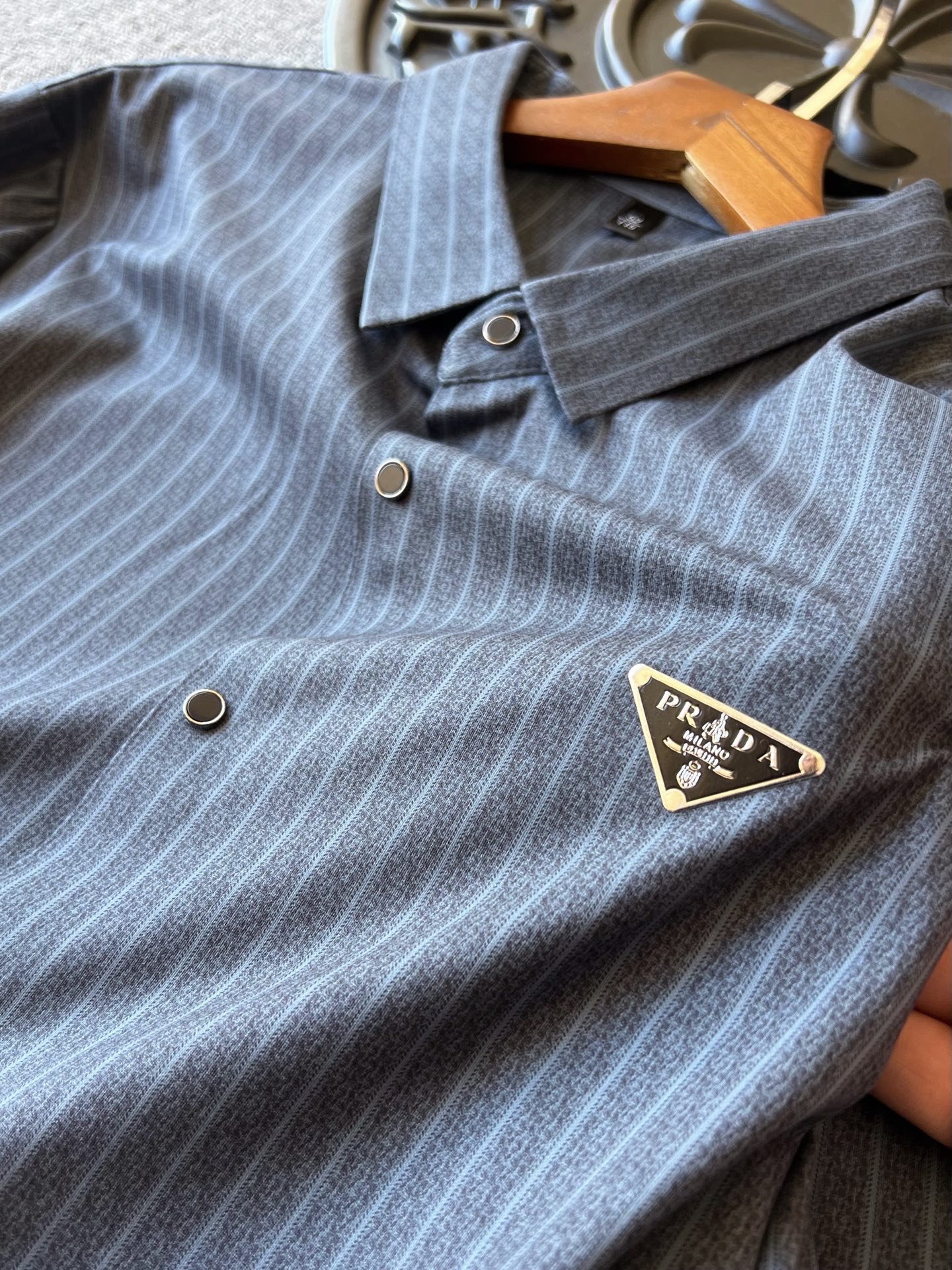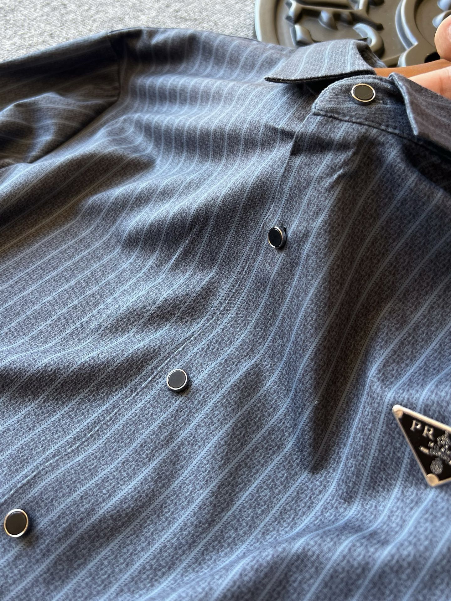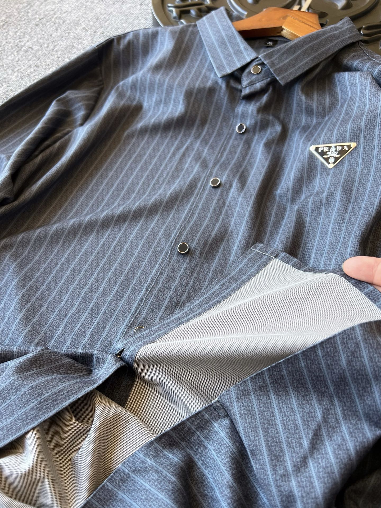 细节细节再细节 Prada家商场新品无缝长袖衬衫 全身竖条纹设计 主打高奢气质风 胸前进口TPU激光雕刻Prada小仆人公文包logo 精致感满满 从领口门襟到双袖下摆全部做了无缝压胶锁边工艺 高端精致