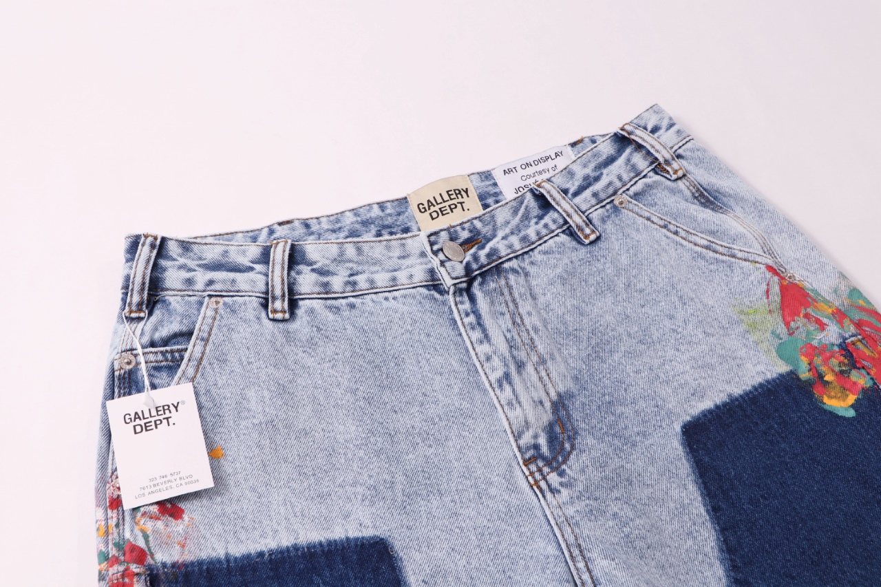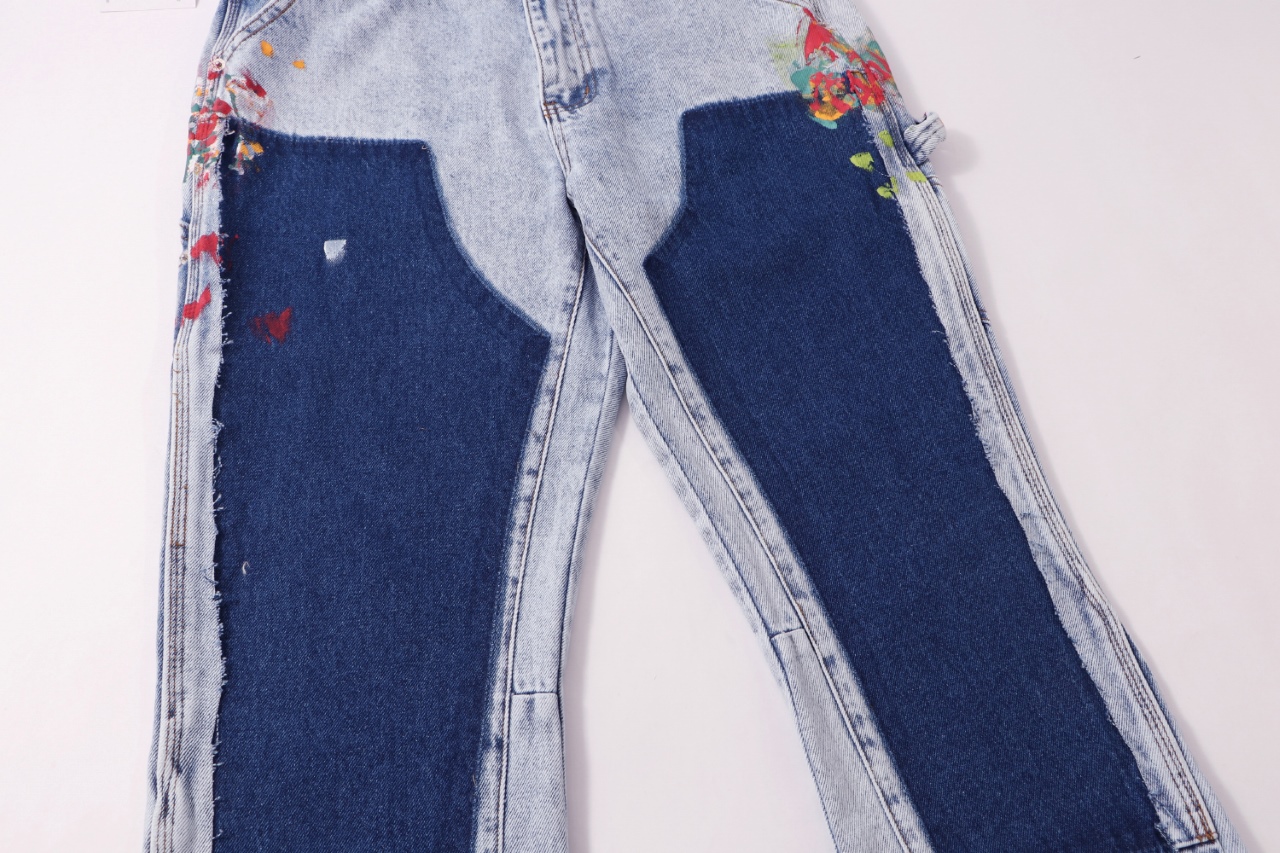 Gallery Dept新款泼墨泼漆补丁拼接贴布工装裤伐木裤水洗蓝色拼接微喇牛仔裤美潮裤子百搭休闲长裤 洗水蓝色 S XL