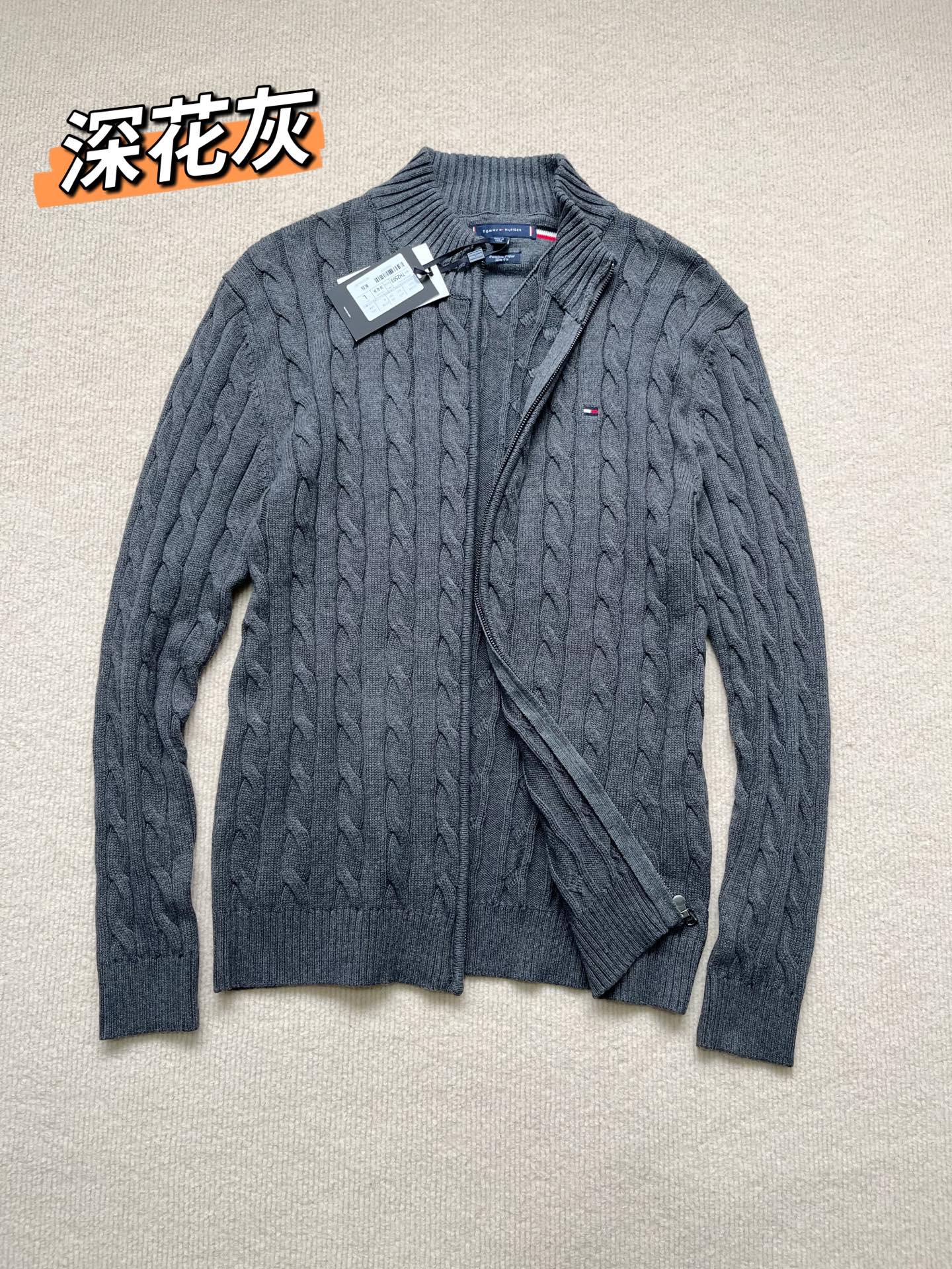 130158626 - Tommy25新款秋冬男装绞花肌理拉链立领全棉针织衫毛衣开衫 329777