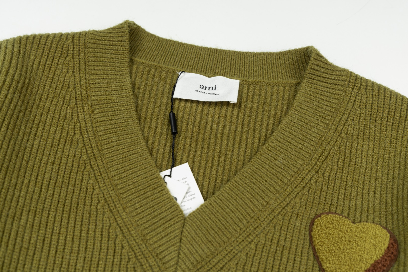 Ami 爱心2025ss胸前毛巾绣爱心LOGO款V领毛衣 原版开模定制