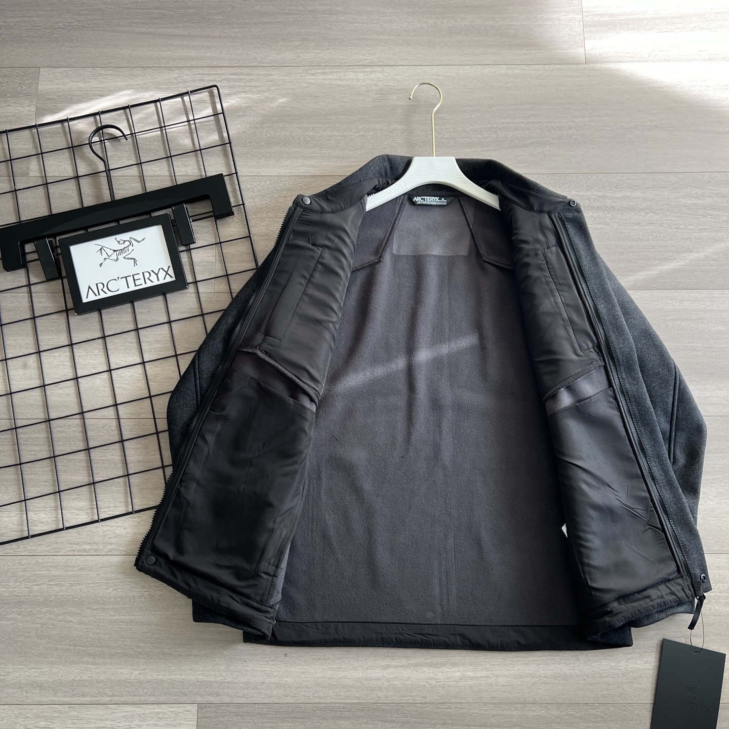 面料材质 采用Tech Wool羊毛混纺面料 外层具有耐候性能 合成纤维的加入使面料柔软耐穿