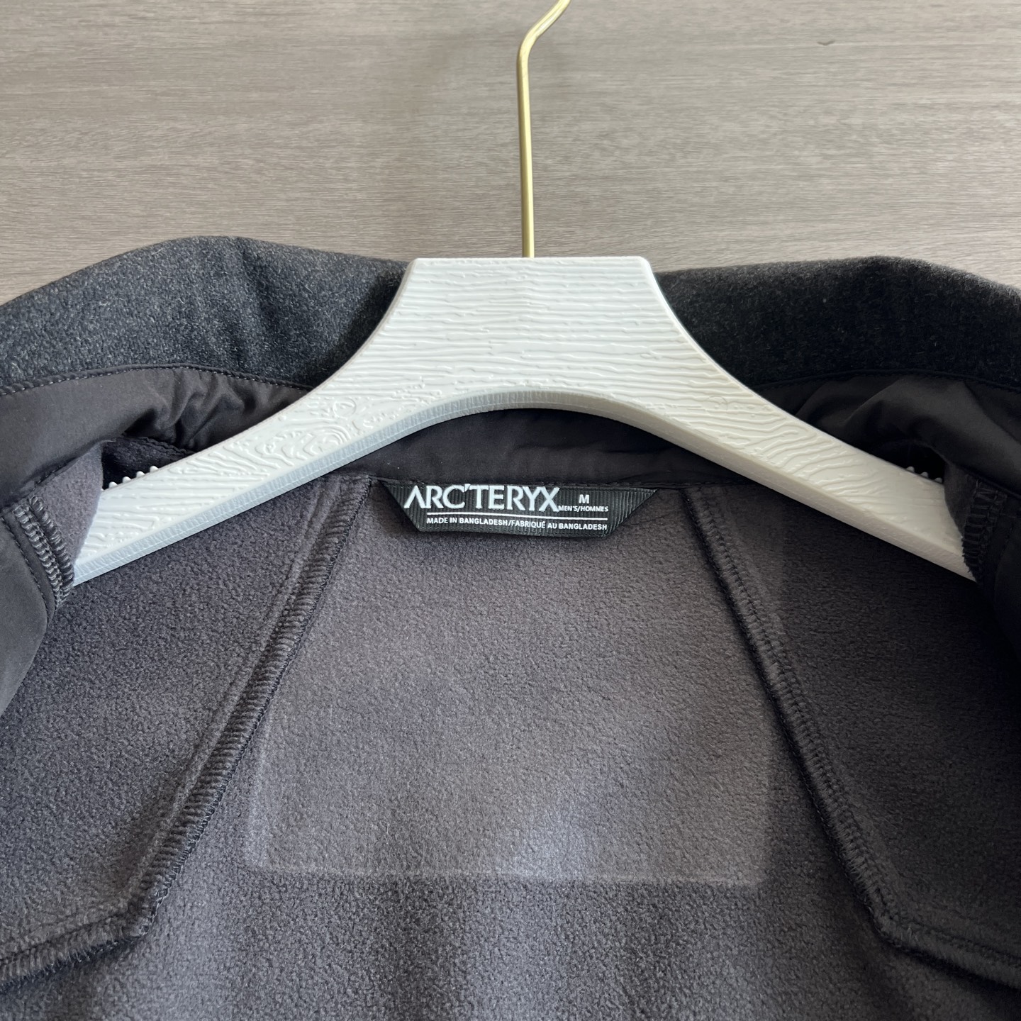 刺绣工艺 胸前的始祖鸟logo刺绣采用进口高士线 针脚细密 每平方厘米超过300针 形成立体浮雕效果 边缘与面料过渡自然 线头隐藏在内衬夹层
