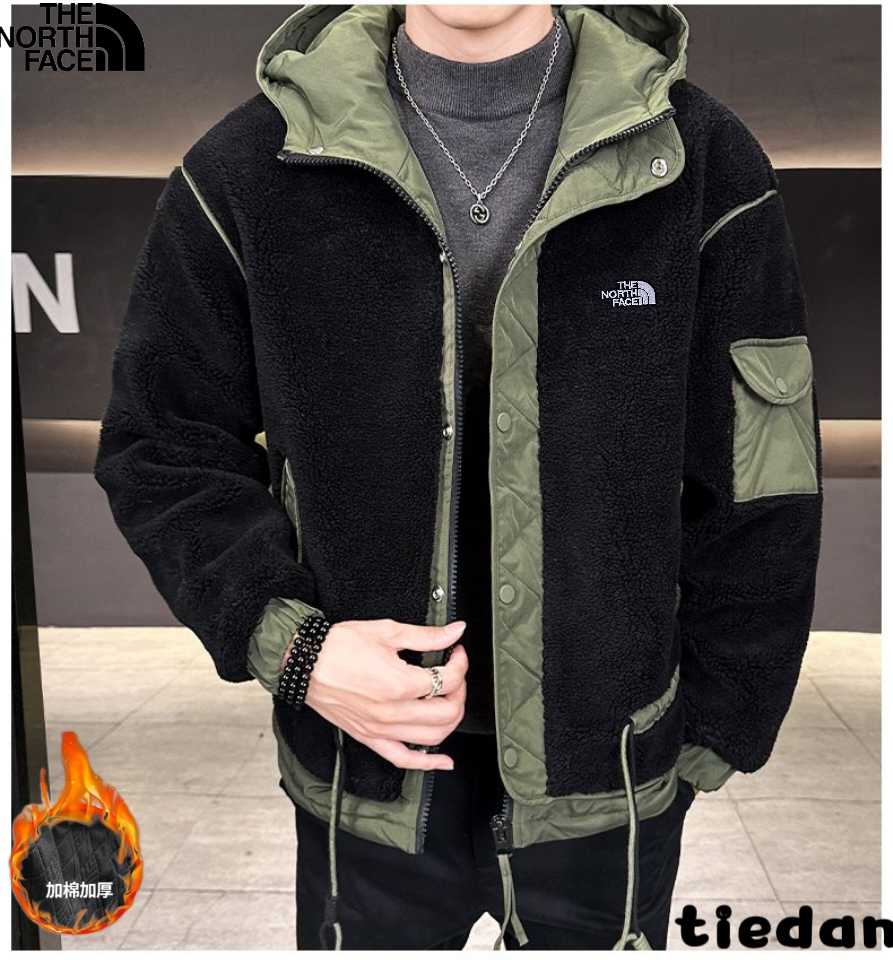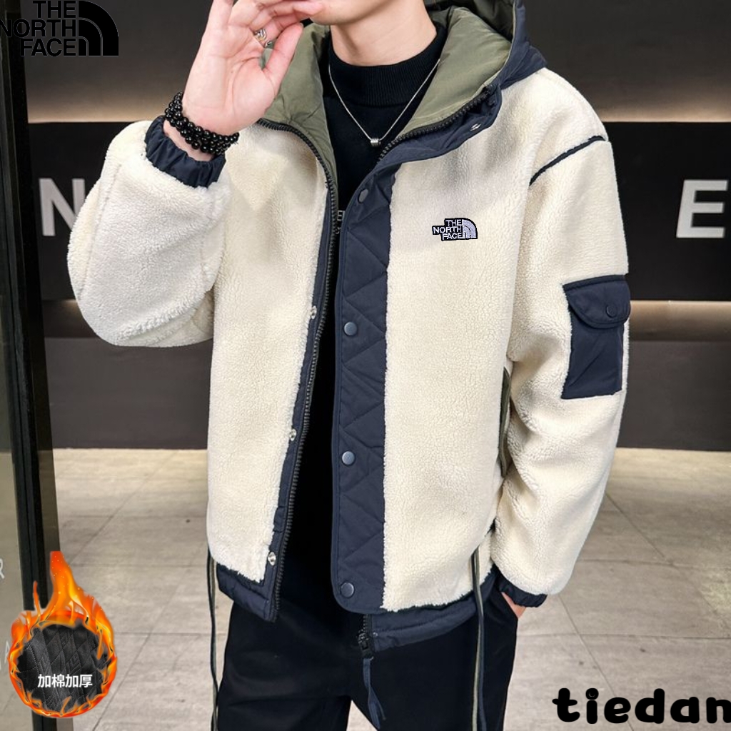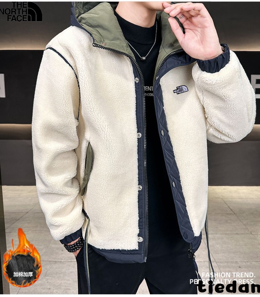 北面The North Face冬季新款 男女同款撞色拼接连帽领加厚科技绒外套 男士加厚棉衣外套 采用大颗粒羊羔绒材质 密实紧致 防风效果强保暖效果好 不掉毛不滚球 细致做工看的到 怎么穿都好看 情侣 闺蜜 兄弟皆可 上身效果超级好看