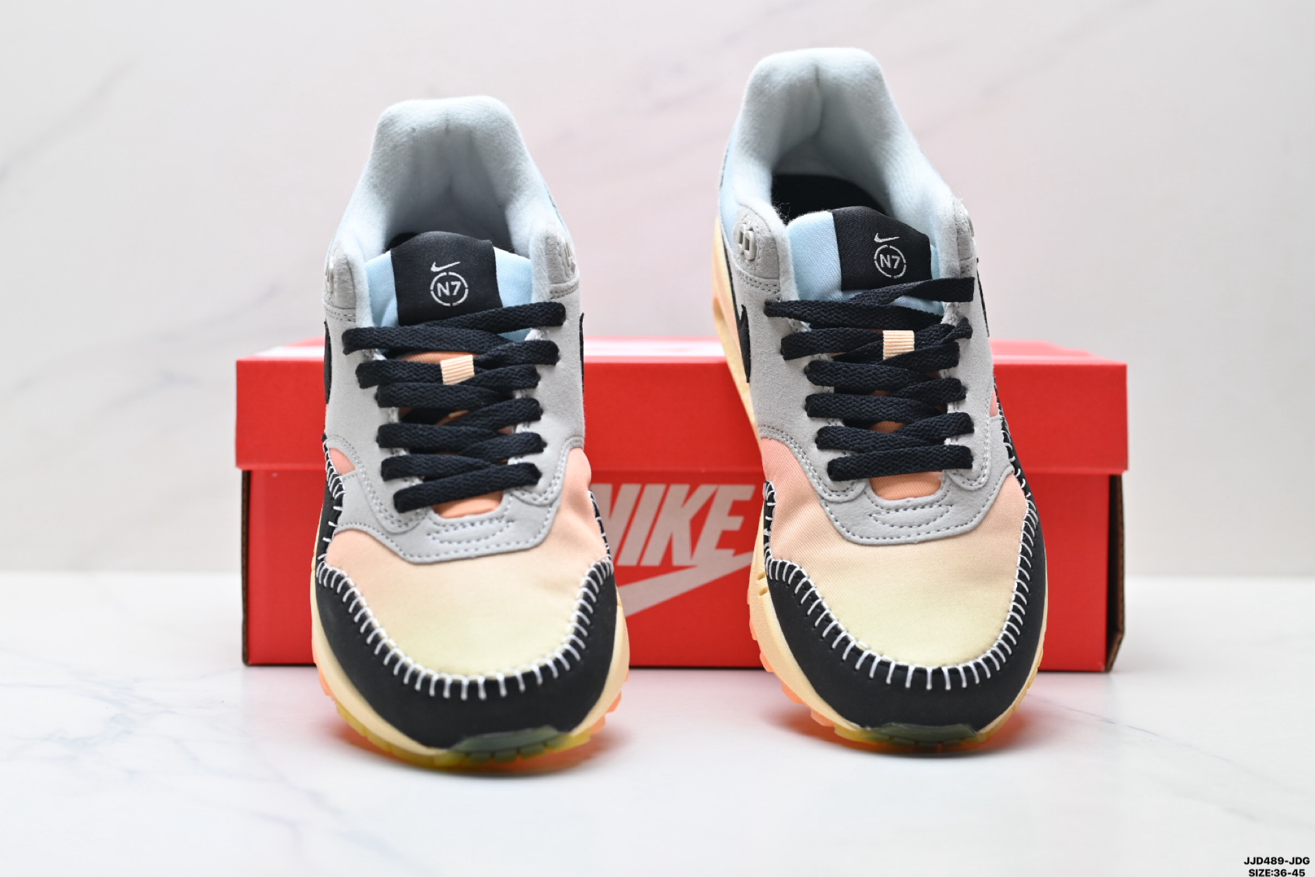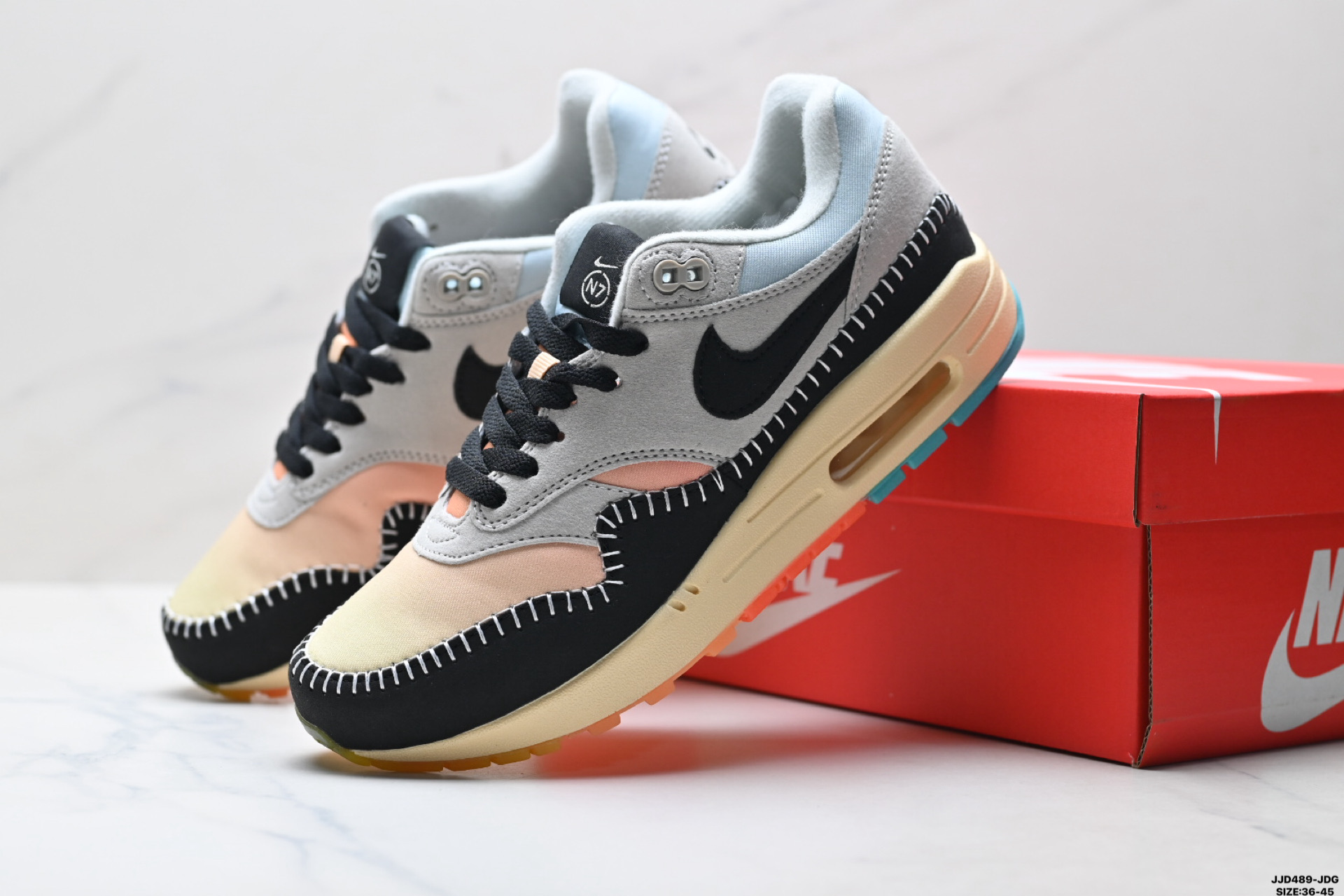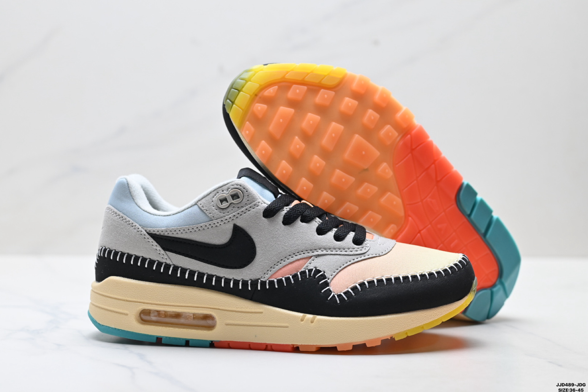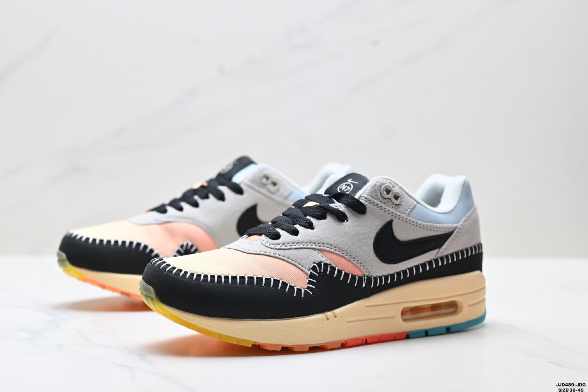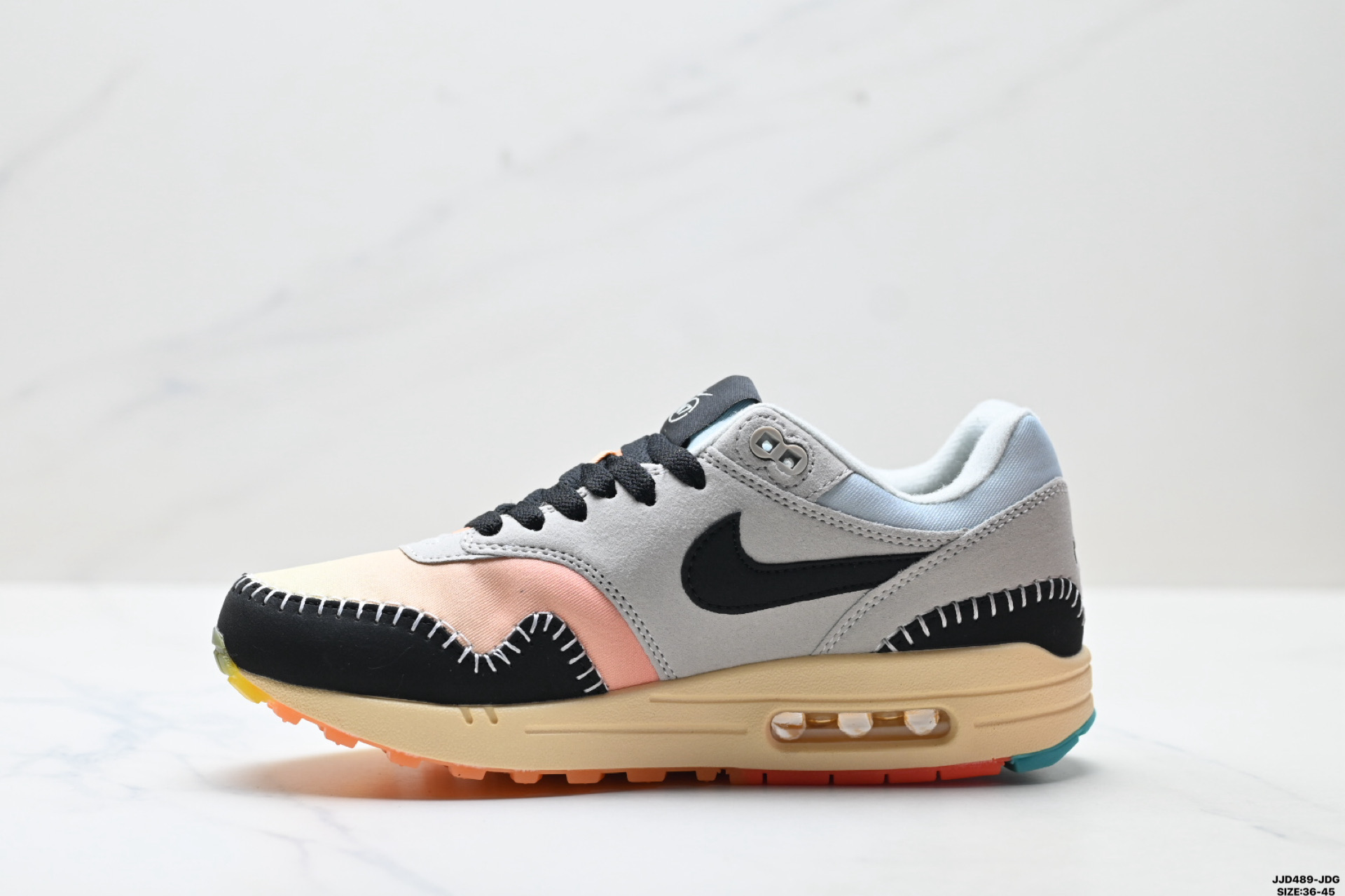 真标Nike Air Max 1 耐克 气垫 缓震 耐磨运动鞋 鞋身材质均选择皮革 织物 麂皮多种材质覆盖 保证质感的前提下 层次感也相当不错 带有开窗式 Air Max 气垫的中底收尾 完善整体造型设计 货号 FD5088 001 尺码 36 45 ID JJD489 JDG