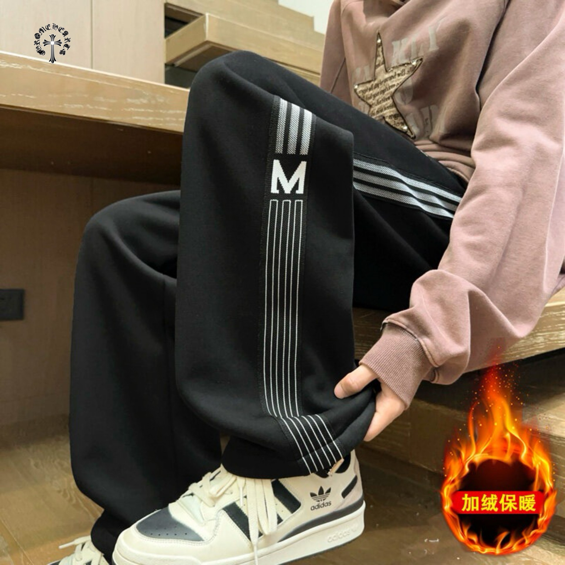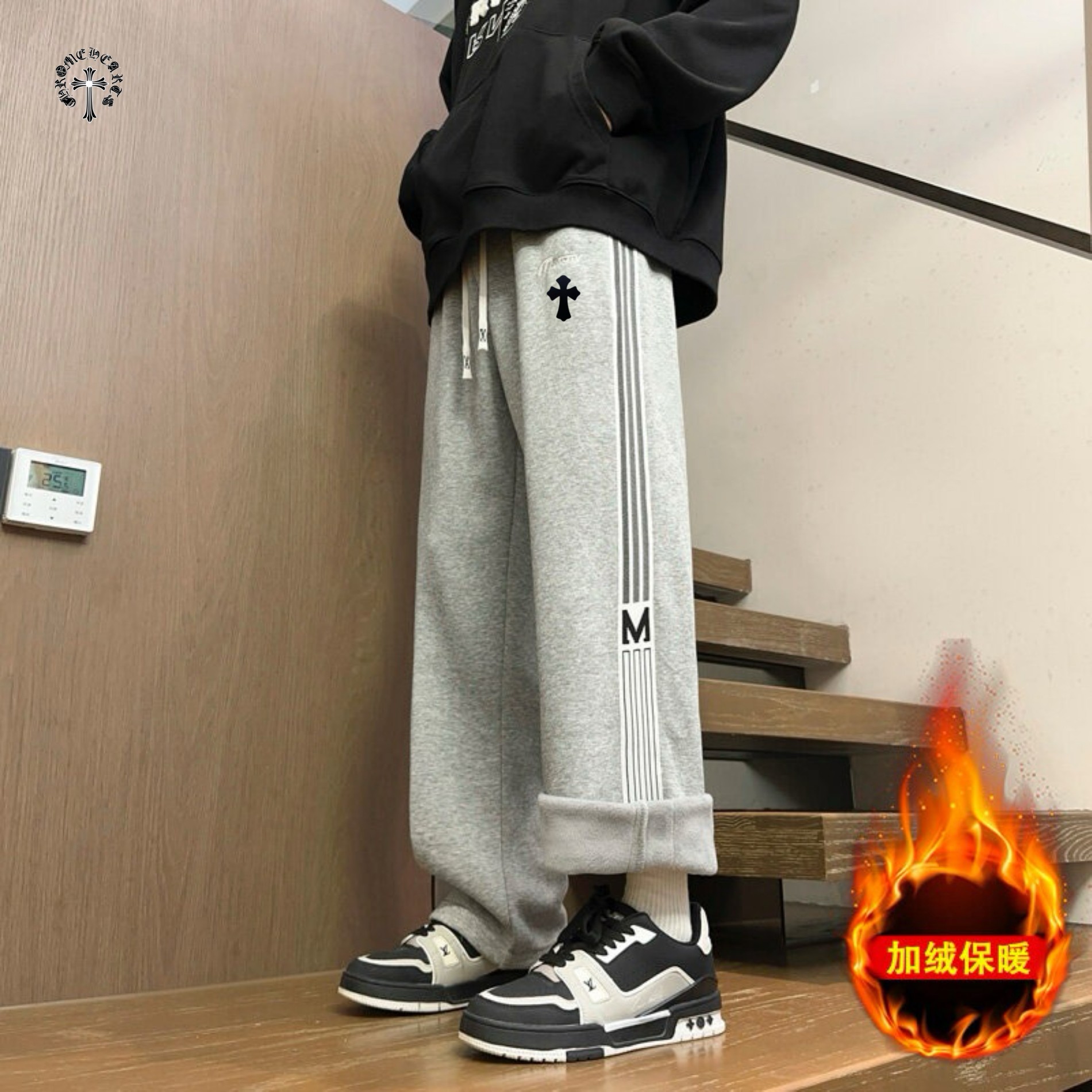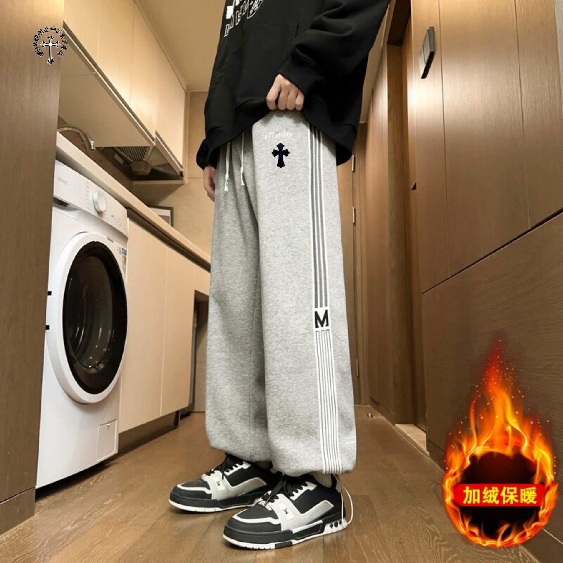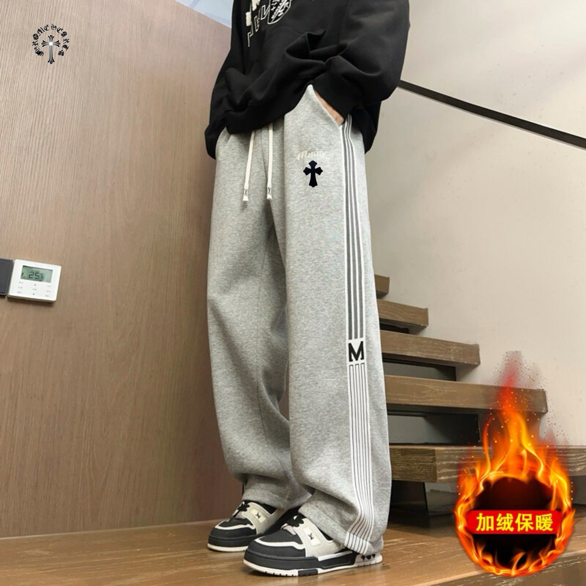 CHROME HEARTS克罗心海外版25ss新款两色串标相拼加绒加厚休闲运动裤