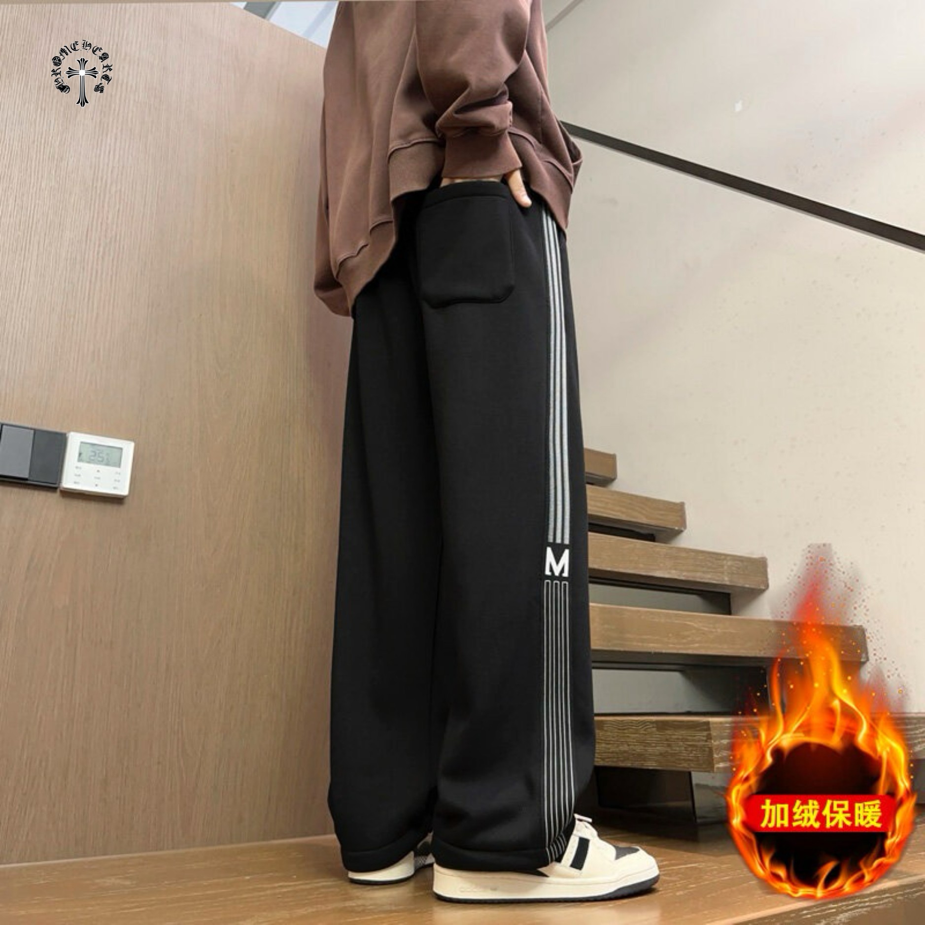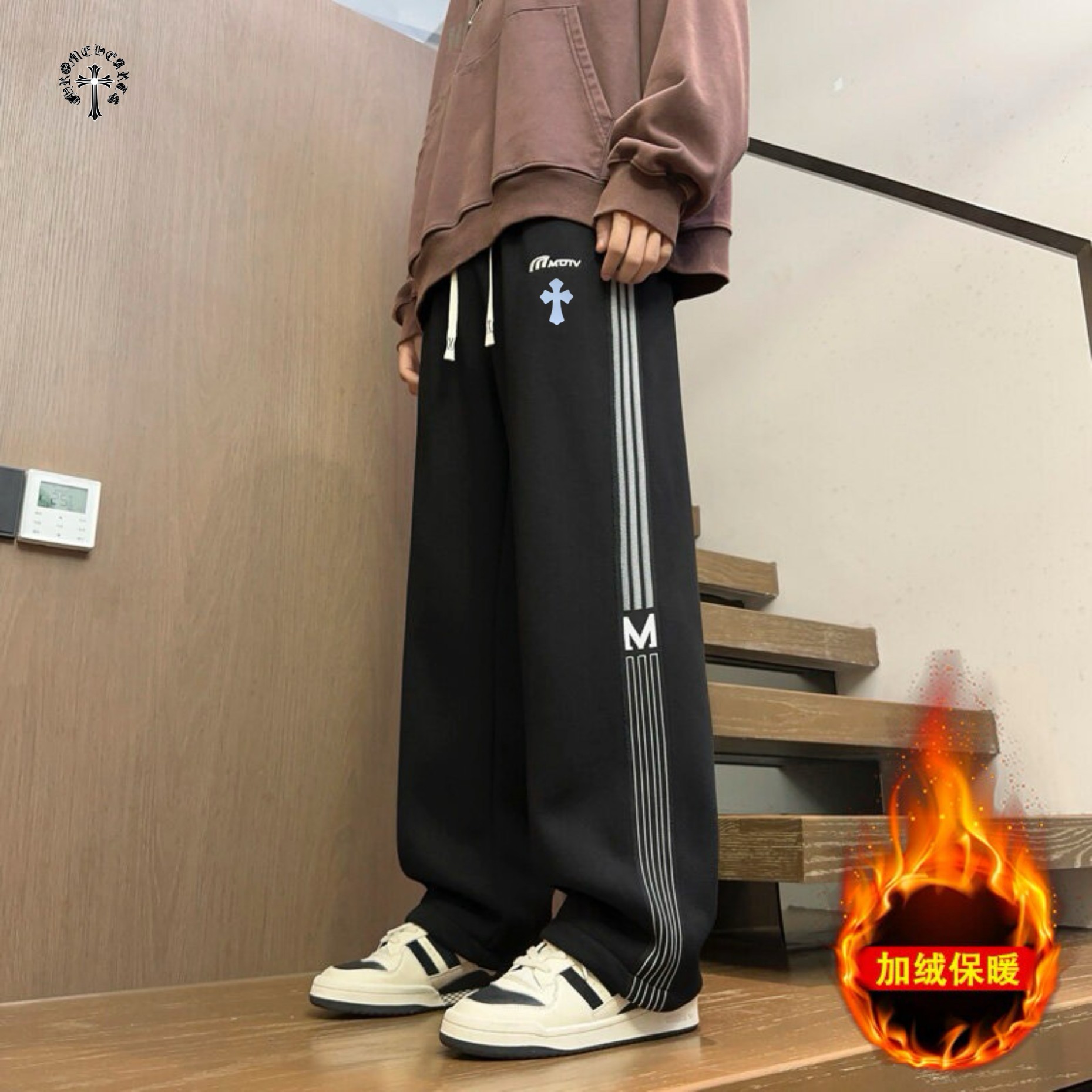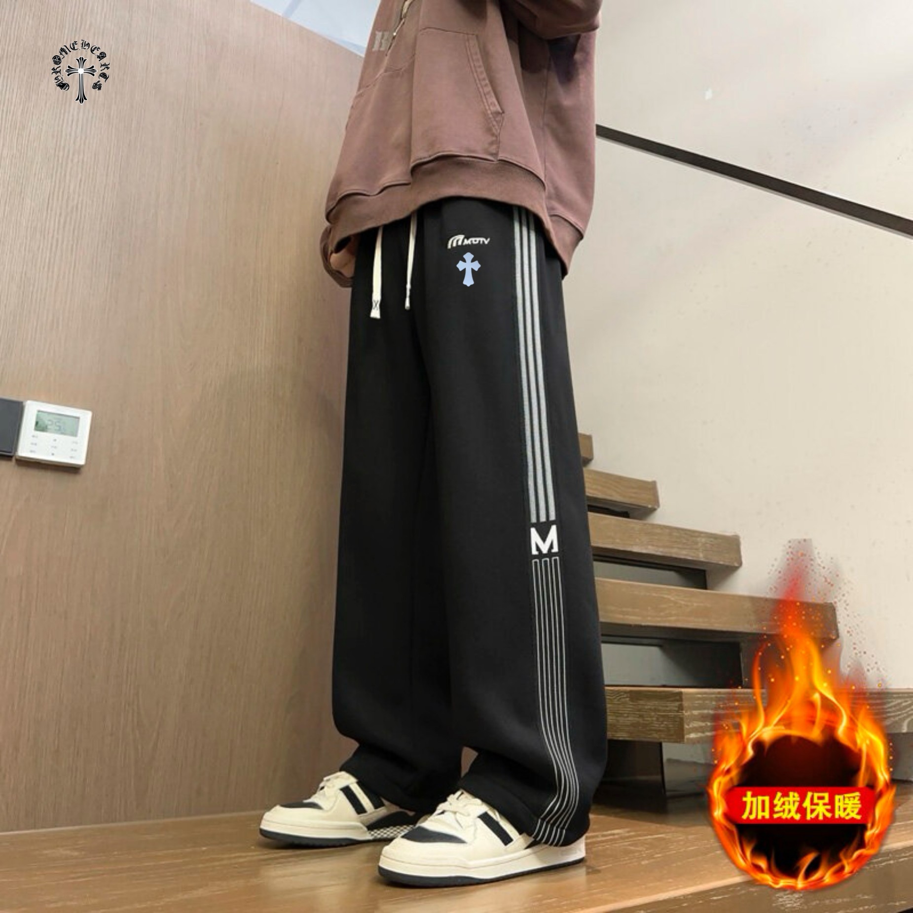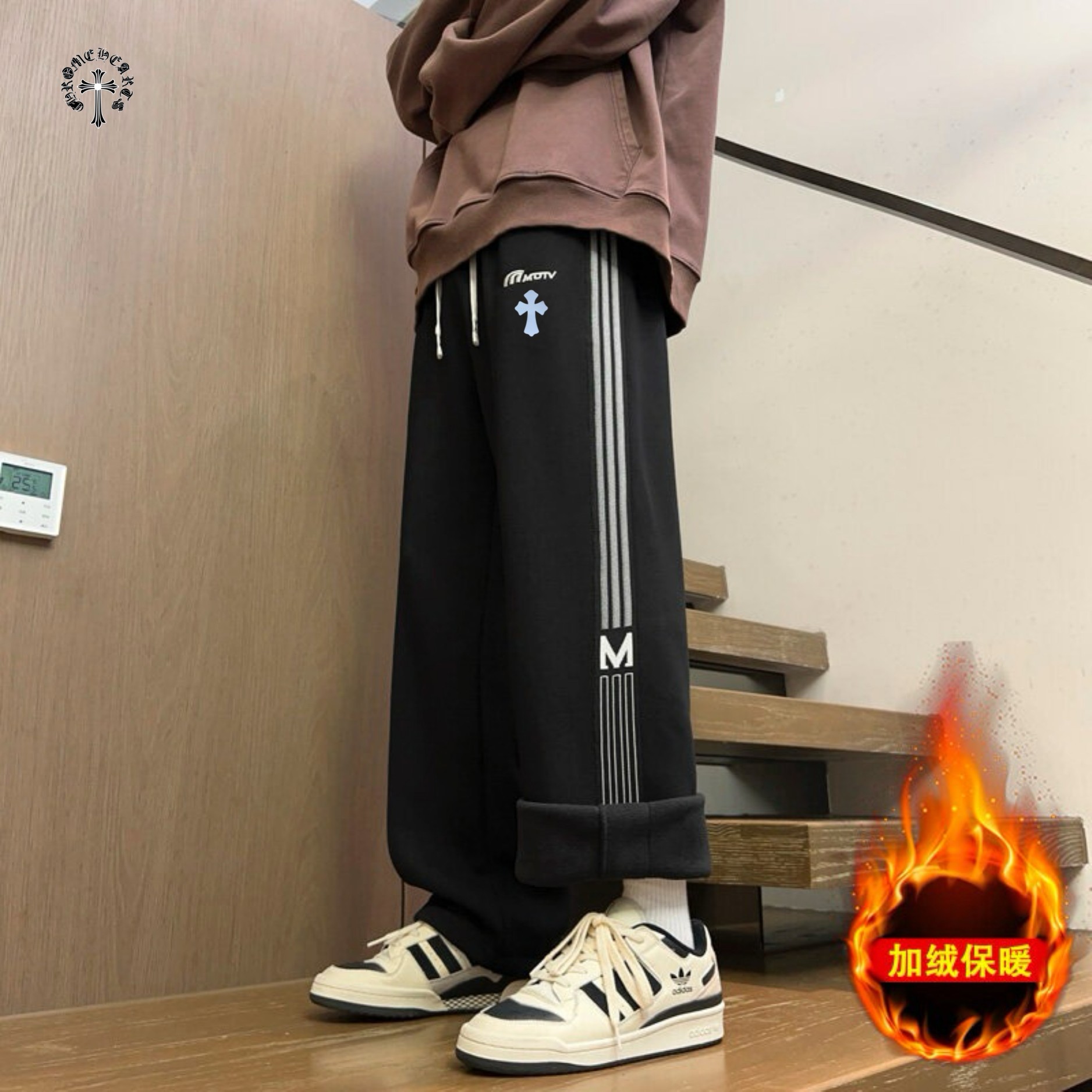 CHROME HEARTS克罗心海外版25ss新款两色串标相拼加绒加厚休闲运动裤