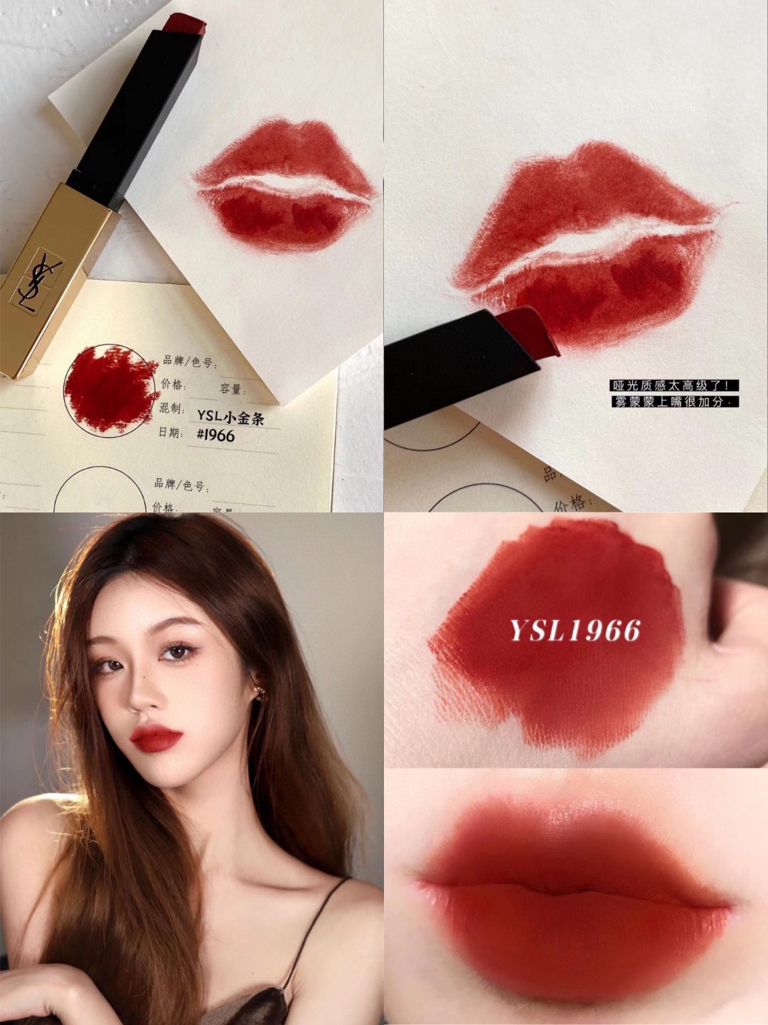 上嘴是很正的苹果红色 显色度很强 刚涂上稍带一点暖橘调 薄涂有一点偏水红的颜色上嘴少女感十足 有点斩男的感觉哈哈 厚涂超级显气场 超级无敌显白 而且很提气色 涂上会让人感觉眼前一亮