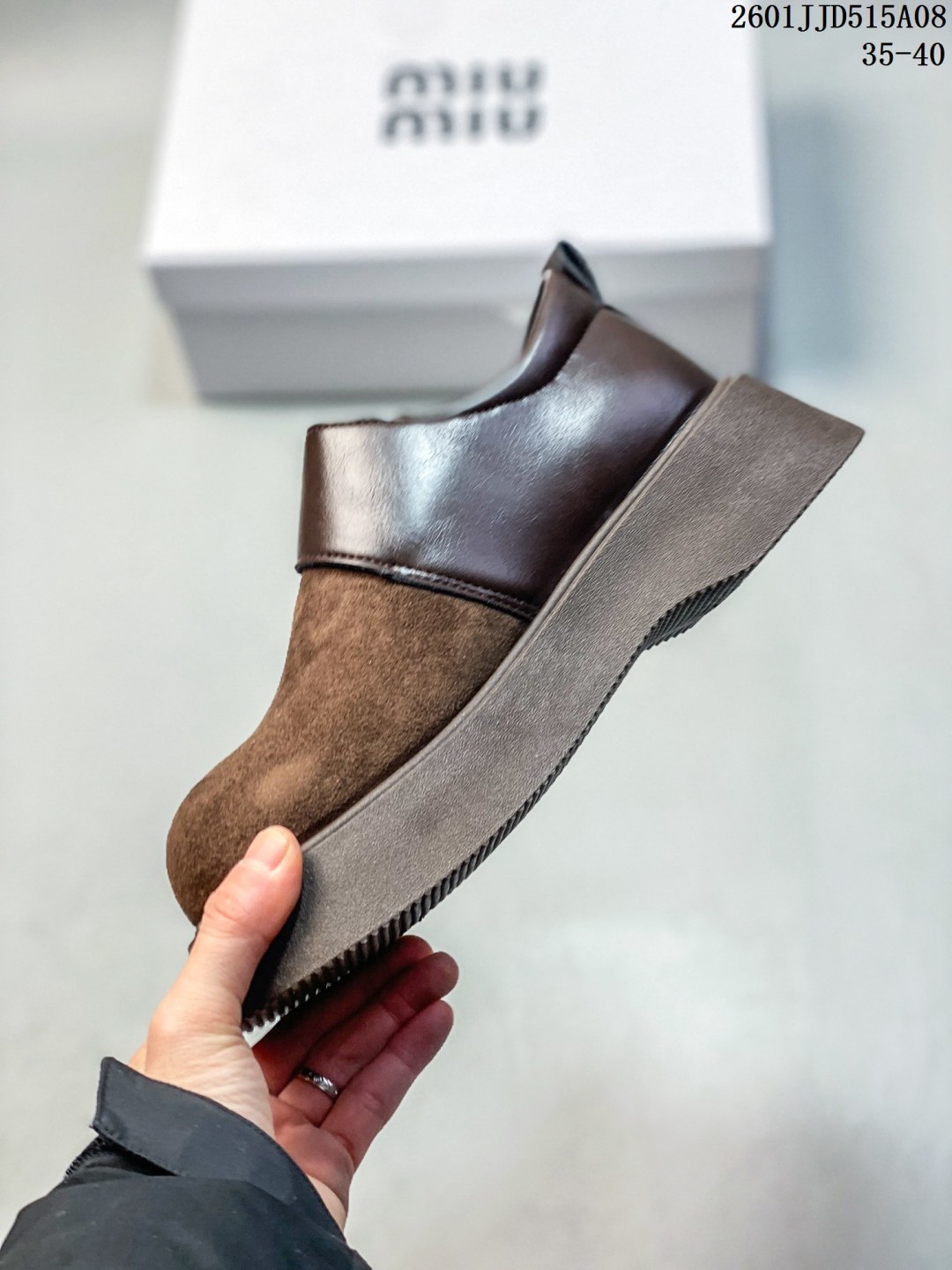 120248854 - MIUMIU复古拼接全包2026早春新款一脚蹬懒人鞋厚底乐福 148111
