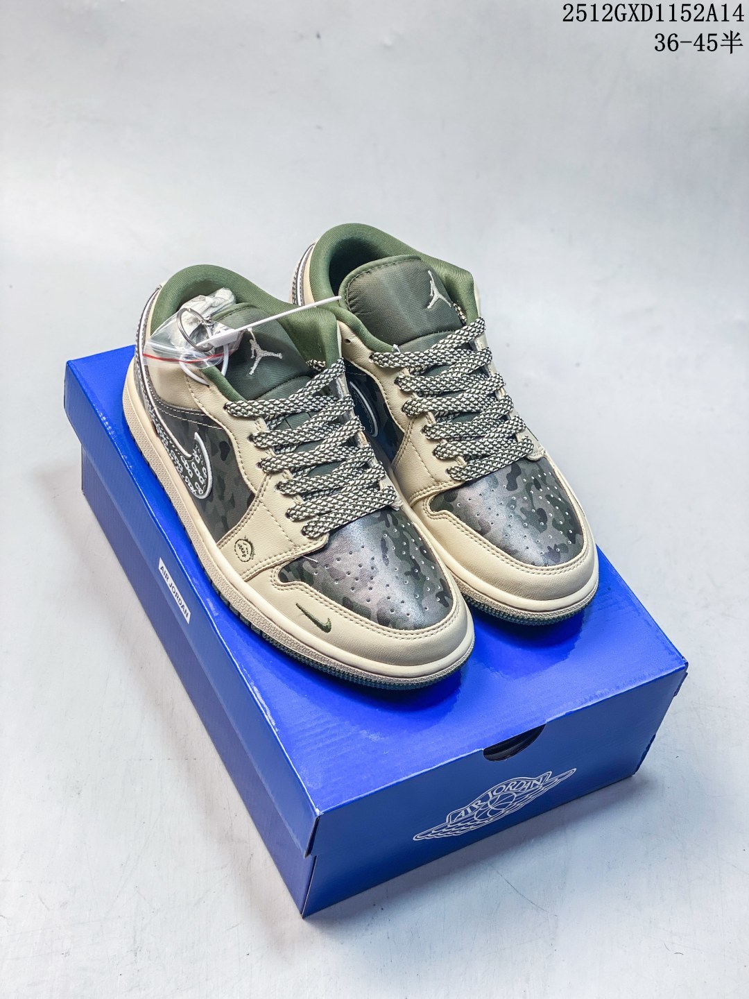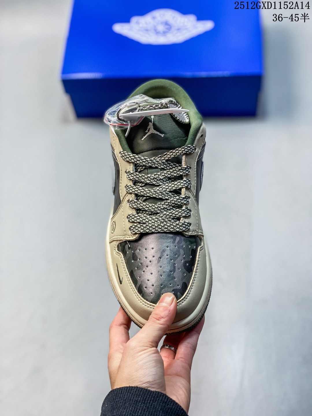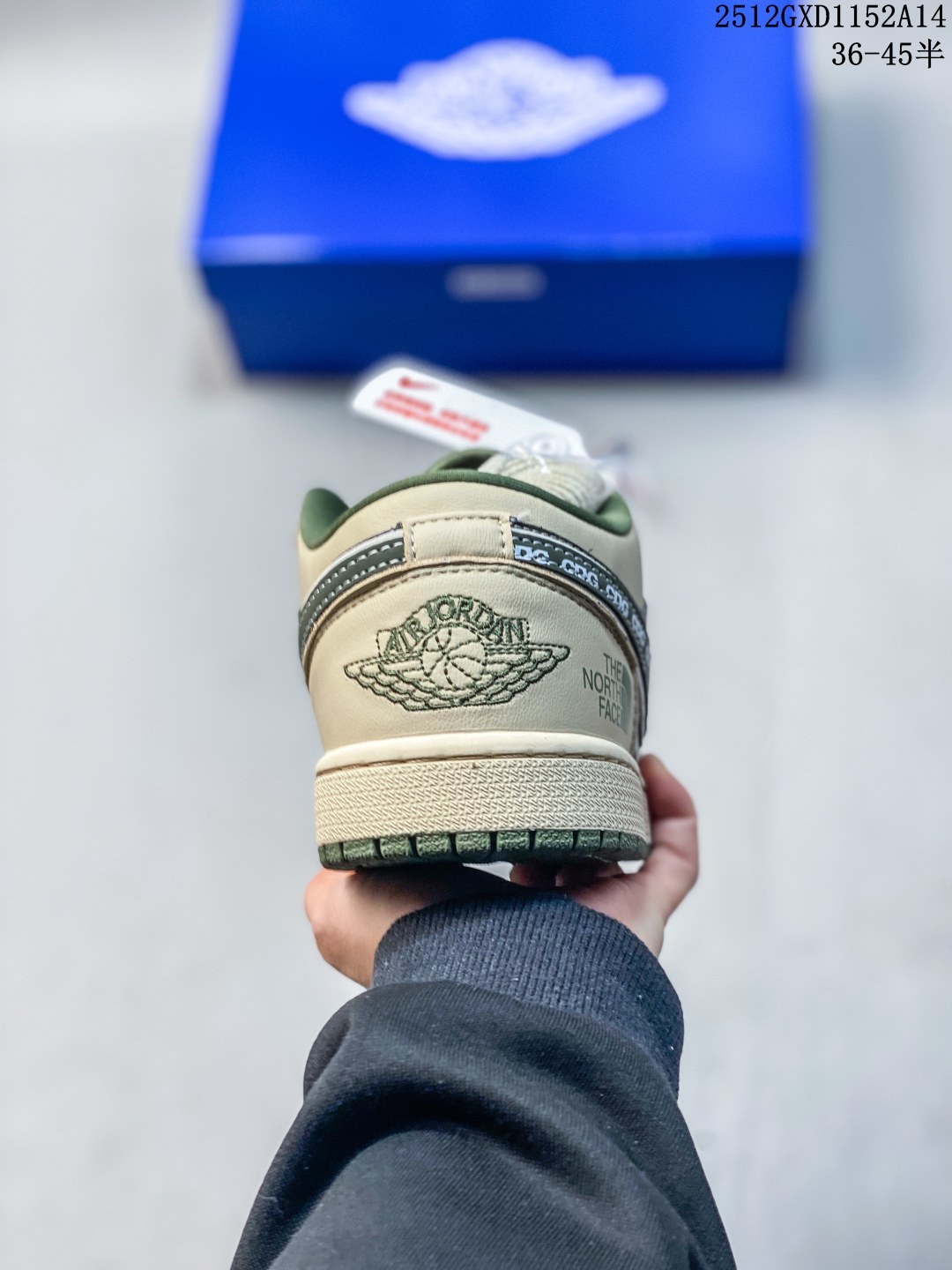 Air Jordan 1 Low x 北面 x CDG 联名款 野性与潮流的碰撞 当飞人图腾邂逅户外传奇 再融合先锋时尚的基因 这双Air Jordan 1 Low QG1988 017直接把跨界联名的质感拉满 浅卡其色鞋身搭配墨绿迷彩拼接 皮革与耐磨材质的碰撞 既有AJ1经典的复古轮廓 又注入了The North Face的户外硬核气质 鞋侧Swoosh满印CDG标识 后跟北面logo醒目点缀 三重品牌元素的融合毫不违和 每一处细节都透着潮流与机能的双重魅力 粗织鞋带 撞色包边的设计 让这双鞋不仅是穿搭利器 更暗藏户外探索的野性 低帮版型兼顾日常上脚的舒适与百搭 不管是街头潮搭还是轻户外造型 都能轻松hold住 这双集AJ的经典 北面的硬核 CDG的先锋于一体的联名款 是潮流玩家和户外爱好者都无法拒绝的收藏级单品