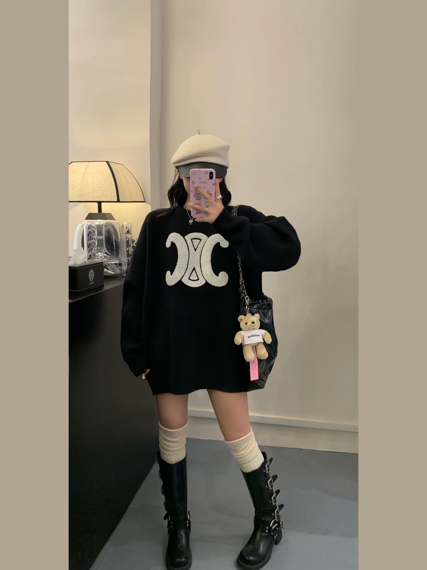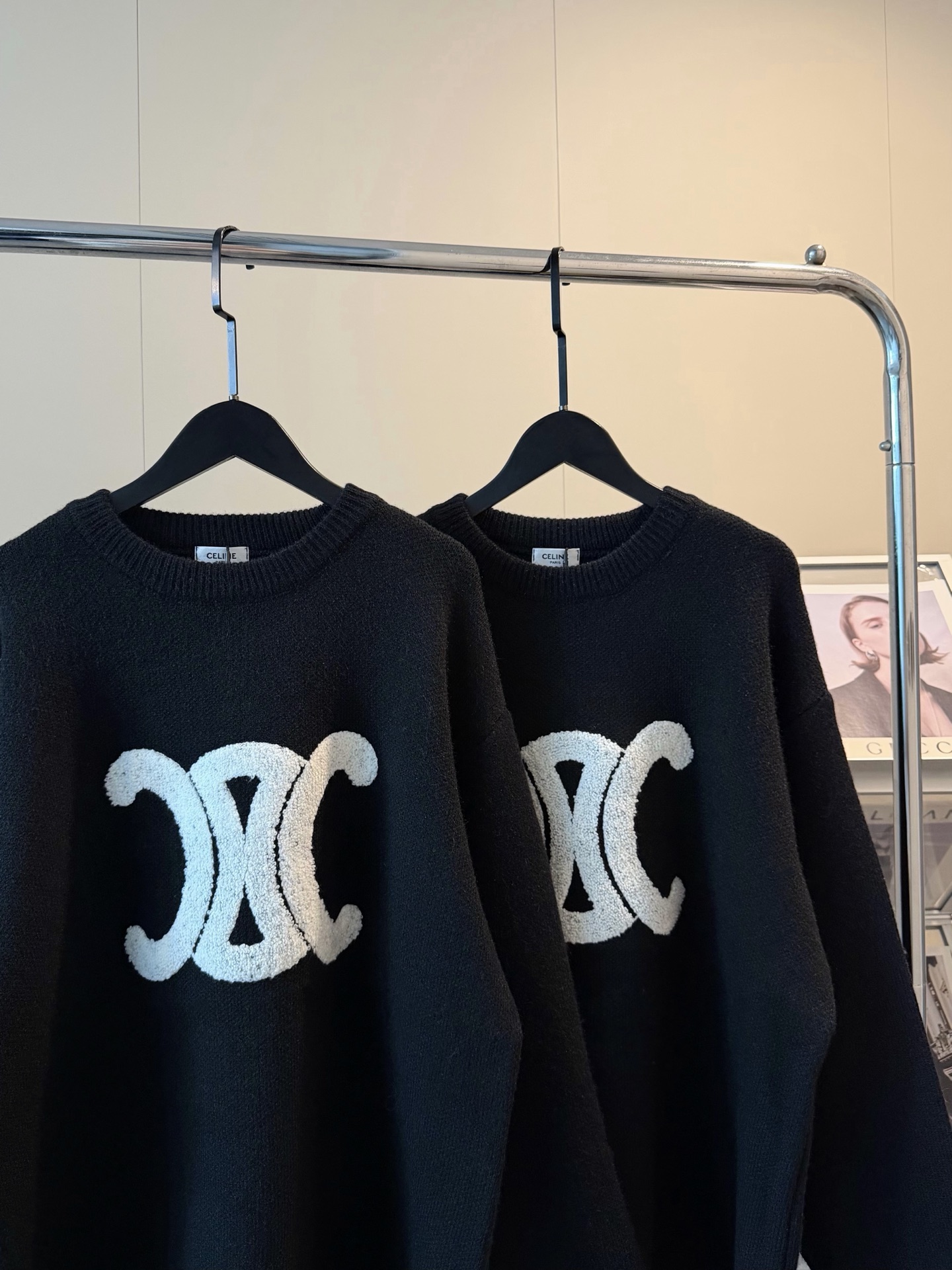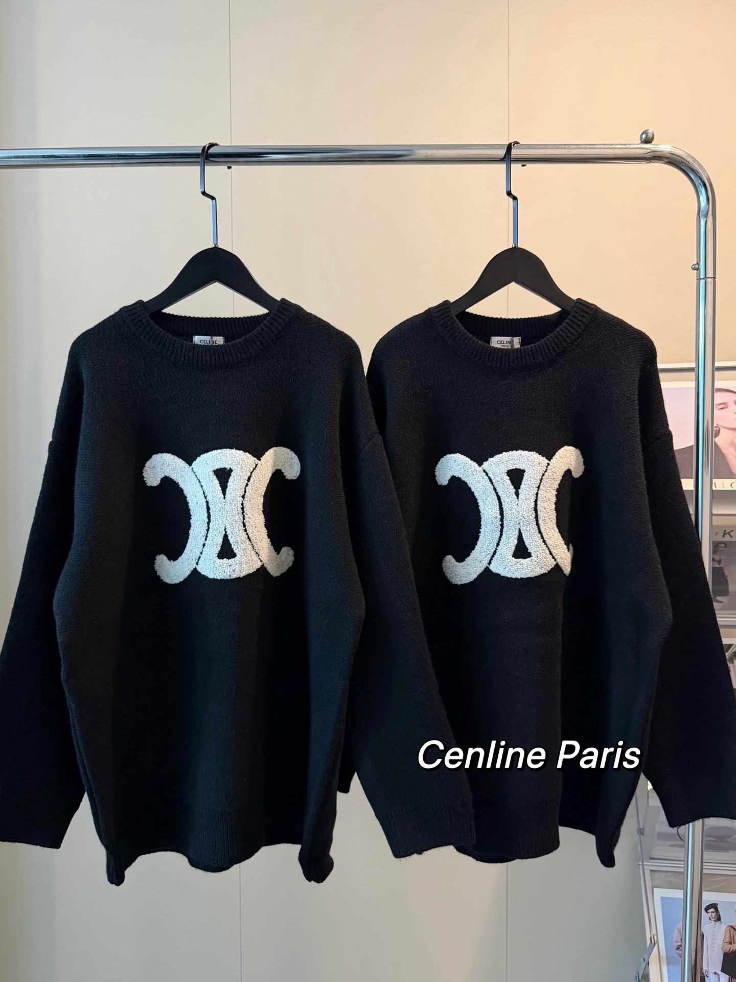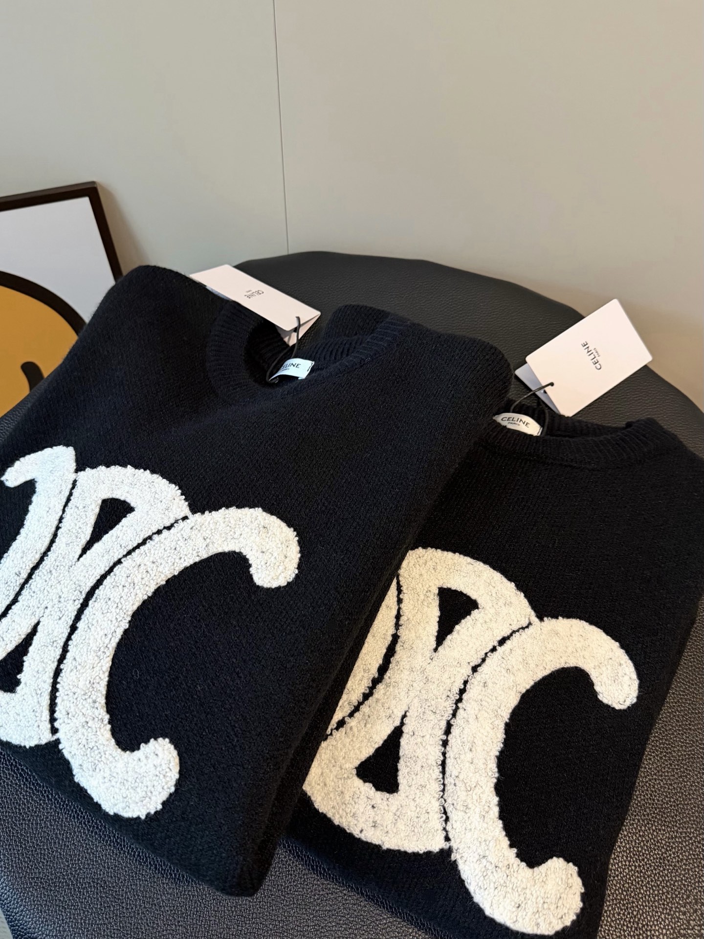 Celine赛琳新款凯旋门毛巾刺绣logo羊毛圆领加厚毛衣