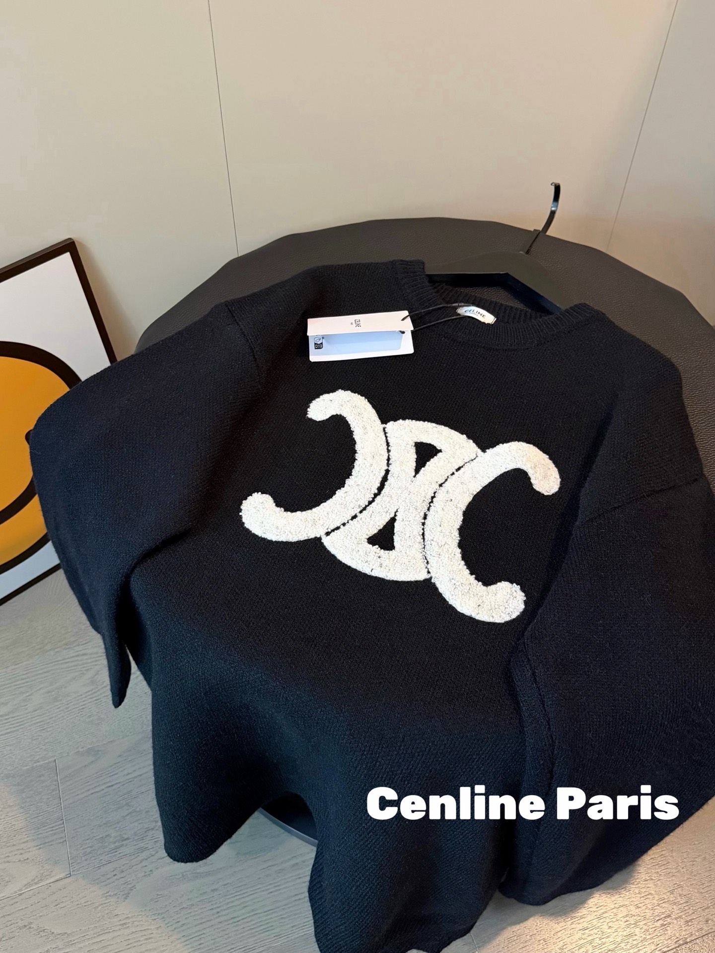 105128537 - Celine赛琳新款凯旋门毛巾刺绣logo羊毛圆领加厚毛衣 374301