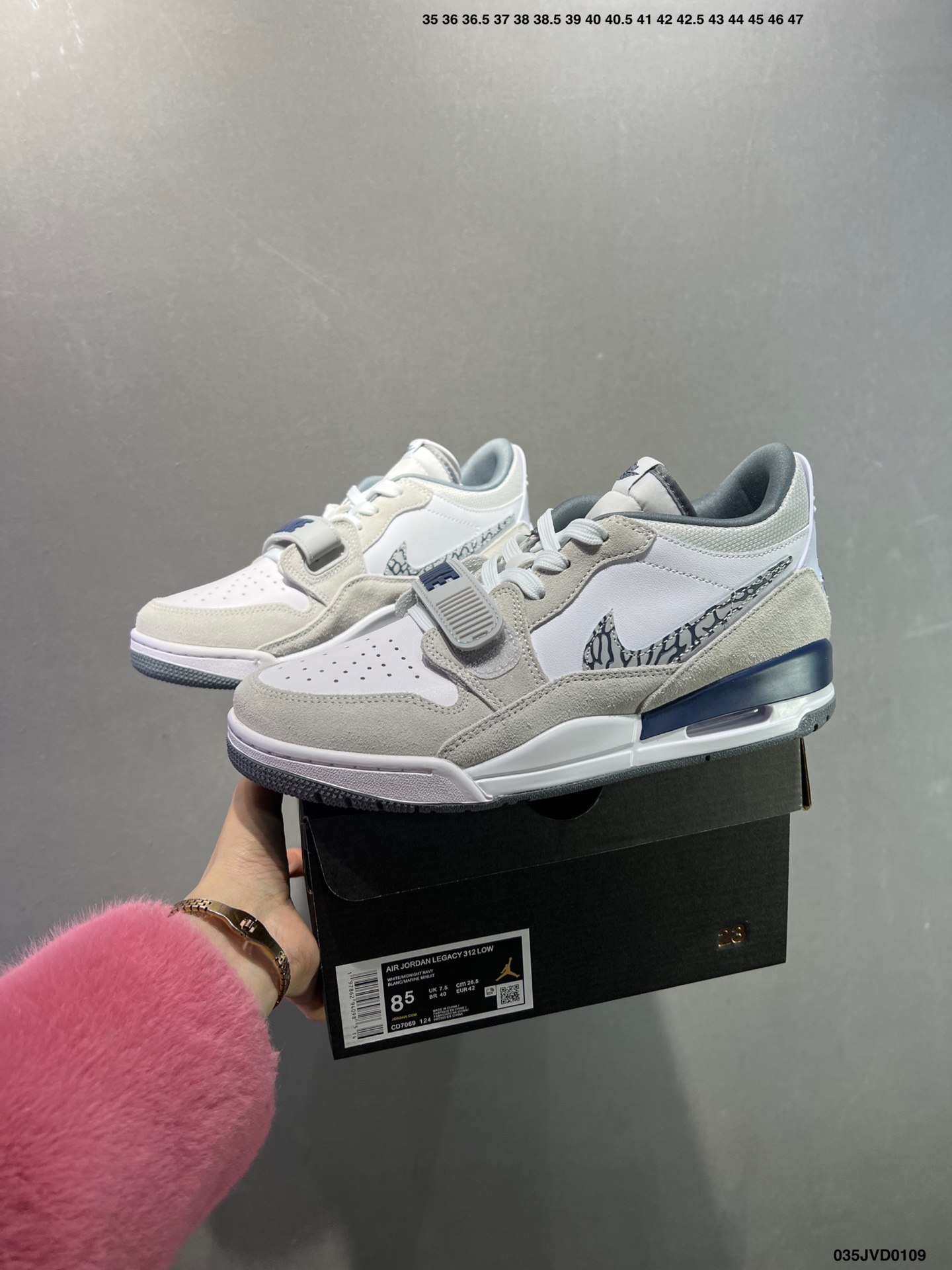 公司级耐克 Nike AJ312 Air Jordan Legacy 312 NRG Pure white 官方货号 CD7069 141乔丹联名号称 最强三合一 的 Jordan Legacy 312 自然有着杂交结合的设计 它的名字就展现出它所包含的鞋款元素 312 分别对应了 Air Jordan 3 Air Jordan 1 和 Air Trainer 2 将这三双经典又有不俗人气的鞋款融合 最强三合一 的名称由此得来 Size 36 44半码 ID 035JVD0109