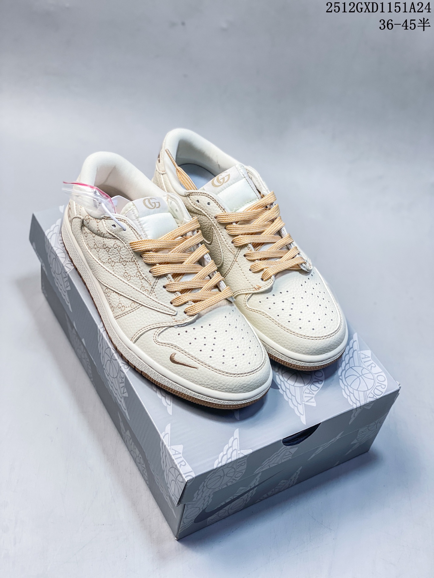 海外爆款限量发售 Nike Jordan Air Jordan倒勾 古驰联名 米棕印花 高端定制 低帮 复古 减震 防滑 耐磨 篮球鞋 定制鞋盒 大厂纯原品质出货 超高清洁度 皮料切割干净无任何毛边 细节完美