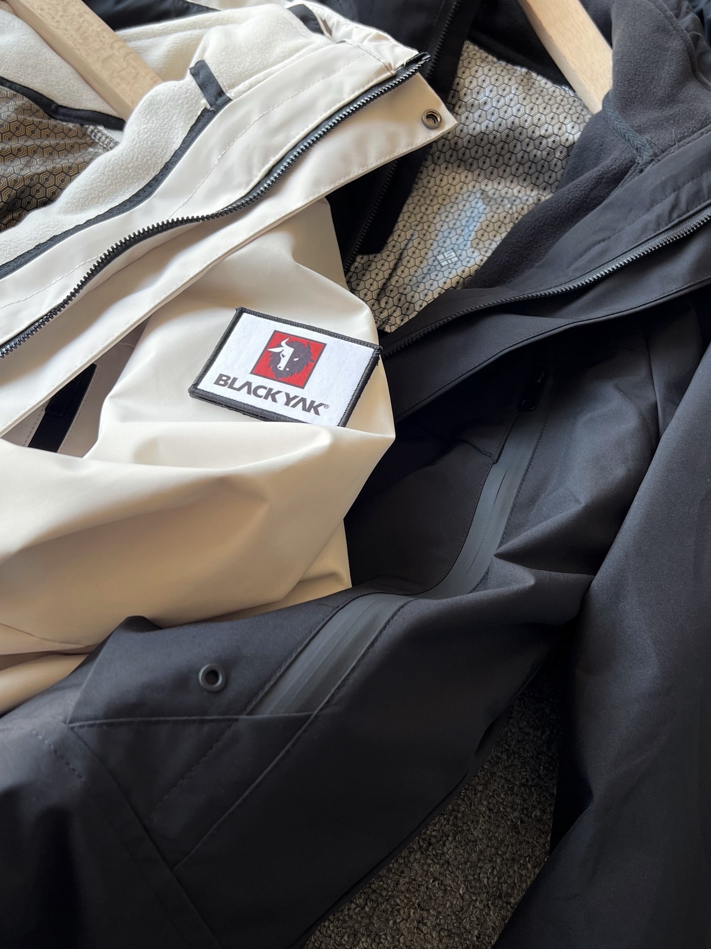 细节细节再细节 BLACK YAK家商场两件套三合一可拉链一体加厚御寒外套冲锋衣 内里是保暖亲肤超柔细腻摇粒绒内胆 可以在适温时穿 单度外面冲锋衣可以单独作为外套穿着 寒冷天气利用内嵌式双拉链可以将内胆和外套合成一体 抗寒保暖性极强 防水大齿拉链口袋设计 袖子带有布莱亚克标识 十分精致 内里带有石墨烯保暖工艺 静态锁温