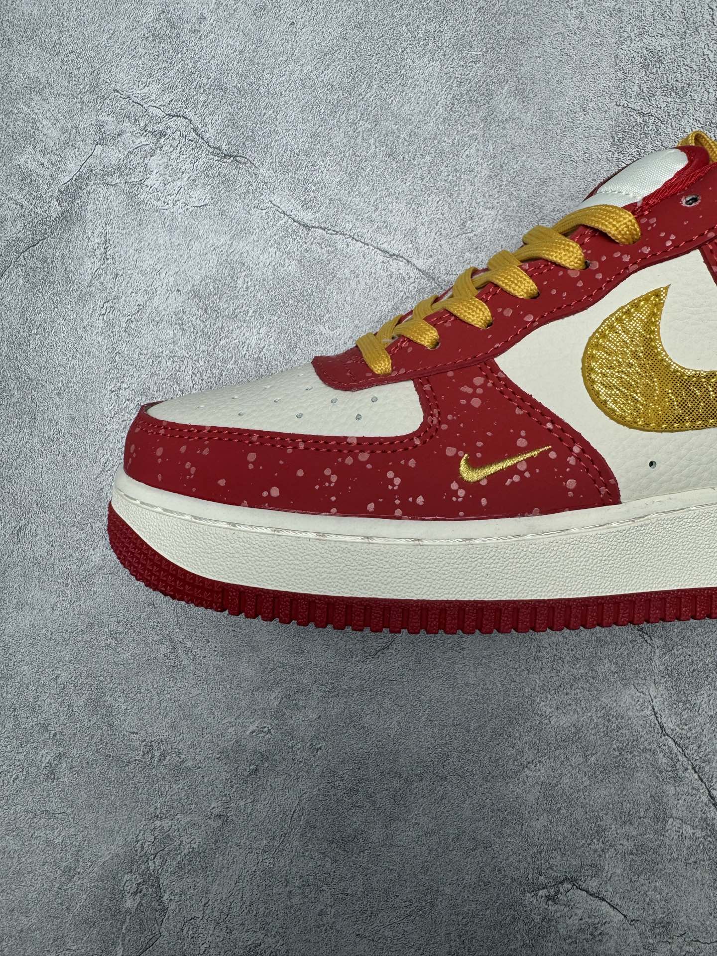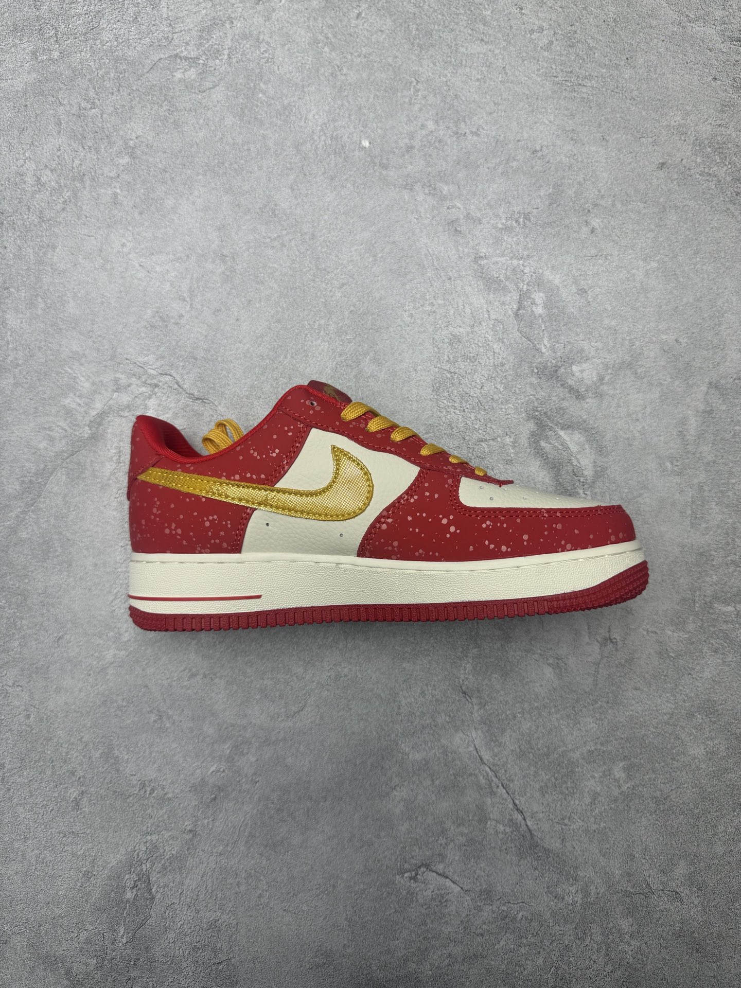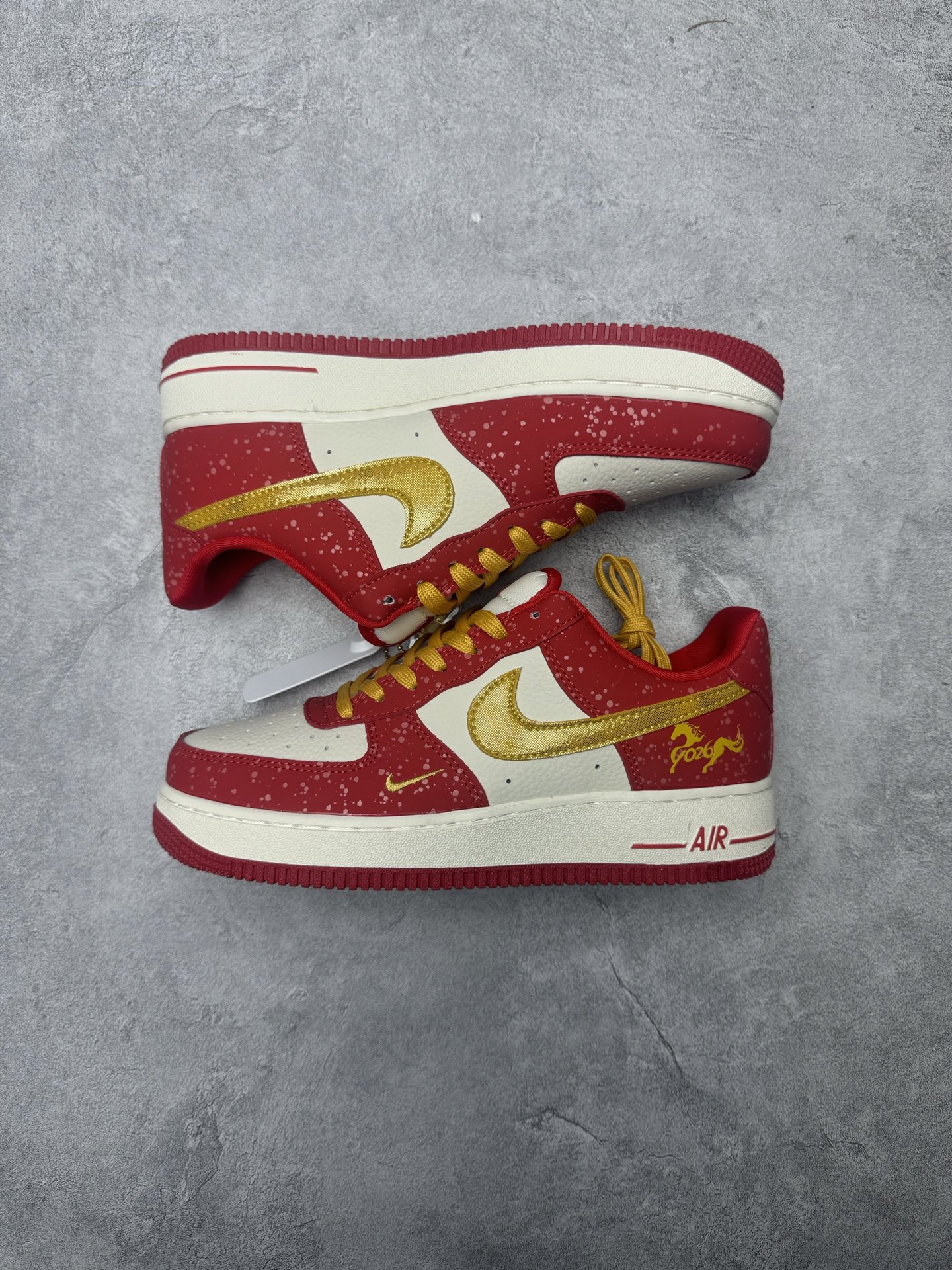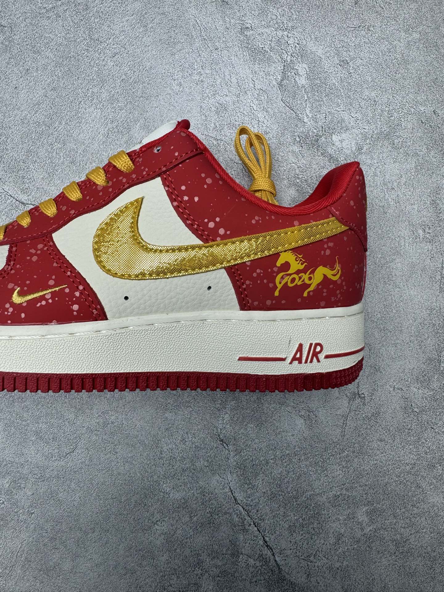 定制版 高端定制Nike Air Force 1 07 Low 马年限定联名 白红金泼墨 鞋身侧面印有金色 2026 字样与祥云纹样