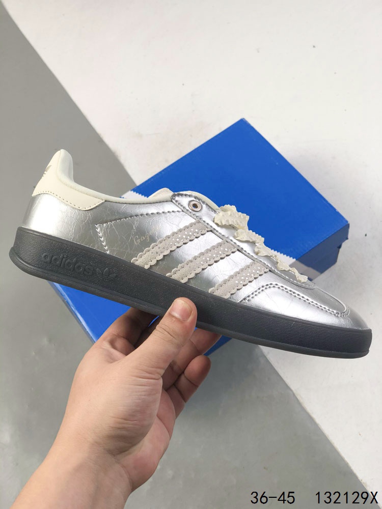 真标带半码 阿迪达斯Adidas Gazelle Indoor 联名三叶草休闲防滑耐磨低帮板鞋 鞋头出色设计 塑就出众贴合感 稳固的后跟贴合足部曲线设计 软弹舒适 不易磨脚 橡胶鞋底配合防滑纹路设计 平稳抓地 货号 KJ1456 尺码 如图 ID 132129X