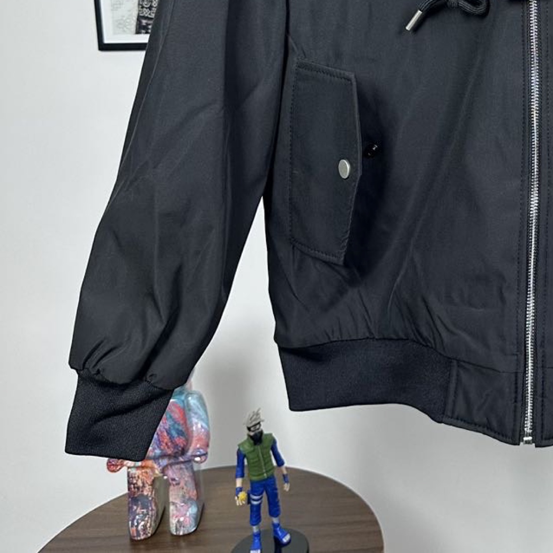 这件横须贺刺绣外套以缎面拼接丝绒衣袖 后幅绣上精致的刺绣图案 左襟缀以海鸥标志 条纹罗纹饰边为这款外套加上经典学院风格 令设计更有特色