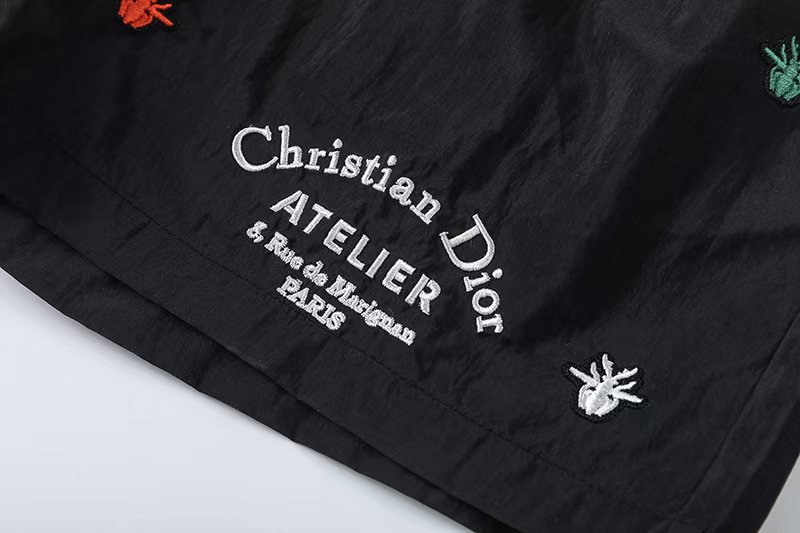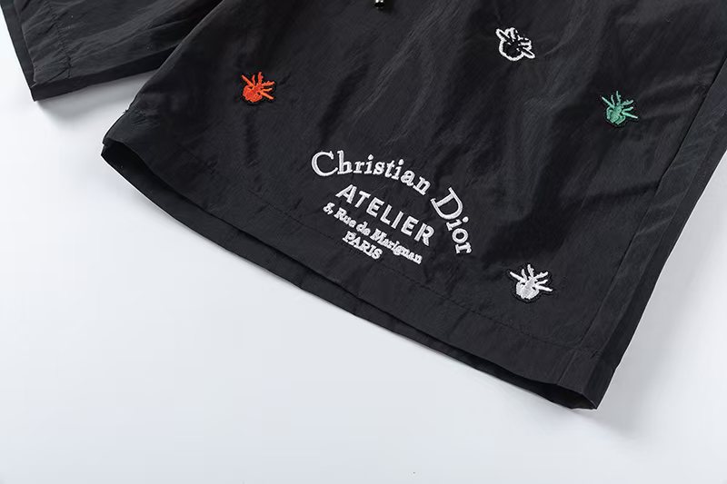 沙滩裤上显著地印有Dior的标志 展现出品牌的高端定位和时尚品味