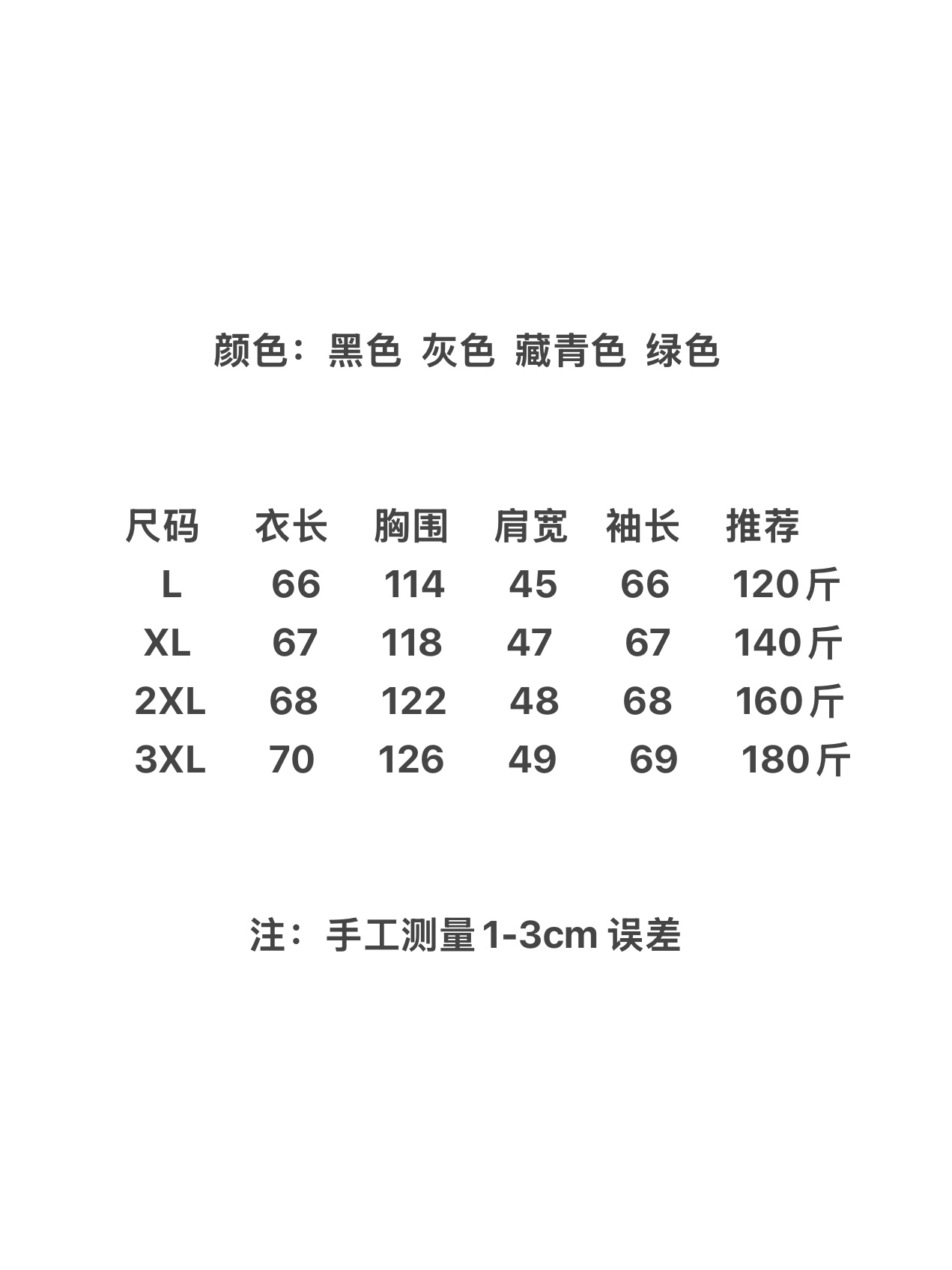 颜色 黑色 灰色 藏青 绿色