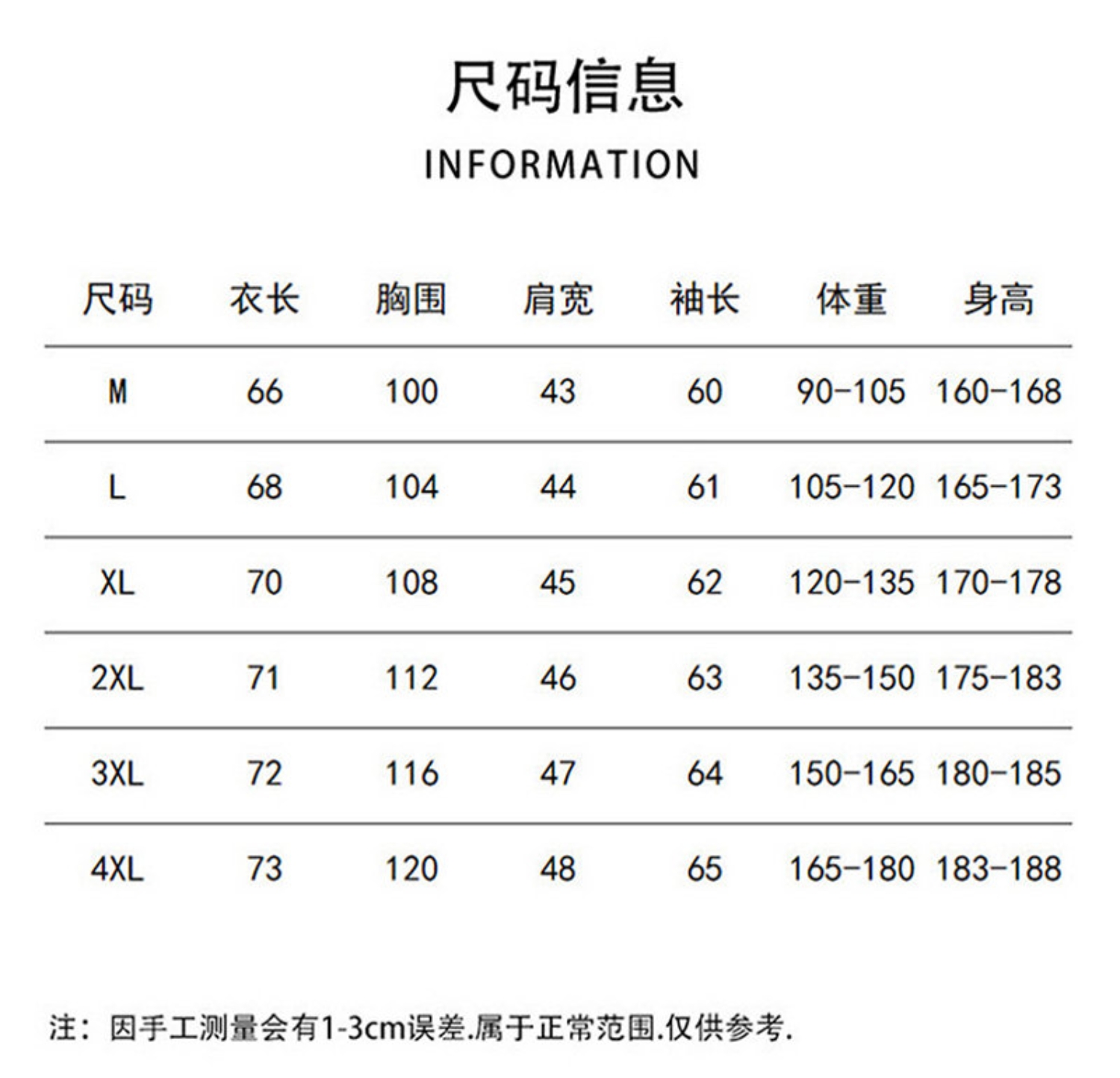 Size M L XL 2XL 3XL 4ⅩL