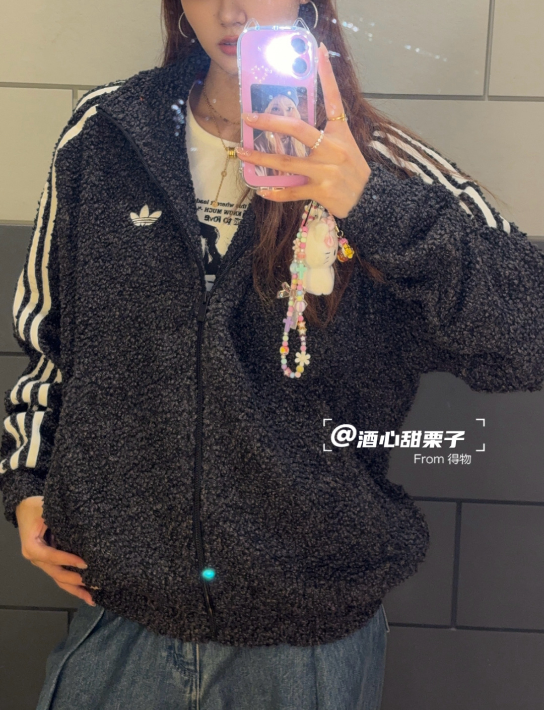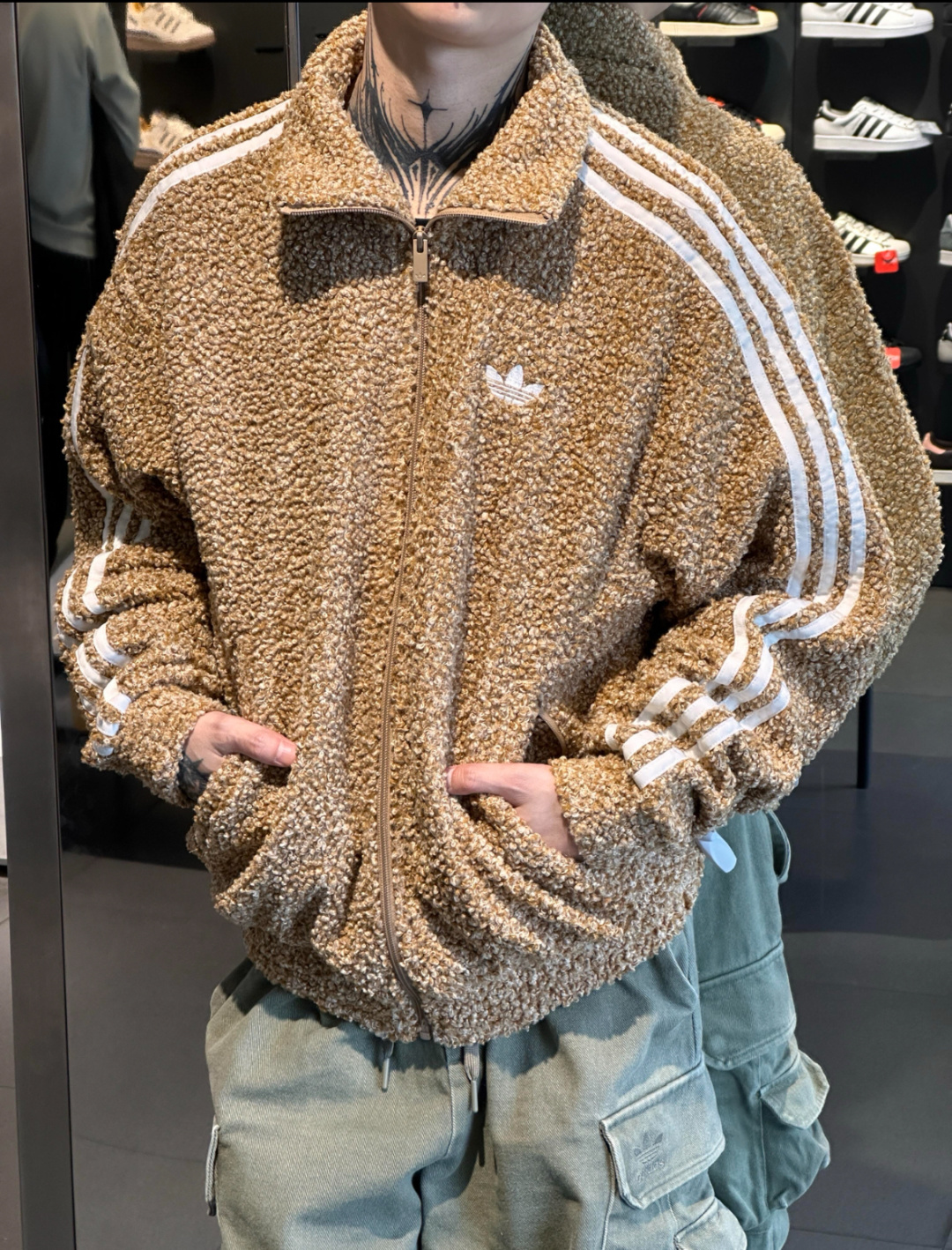 上身效果图𝟭𝟬𝟴𝟵𝟱 吊牌可扫码进入官网 阿迪达斯三叶草 𝗮𝗱𝗶𝗱𝗮𝘀 泰迪绒复合羊羔毛立领保暖休闲宽松情侣外套