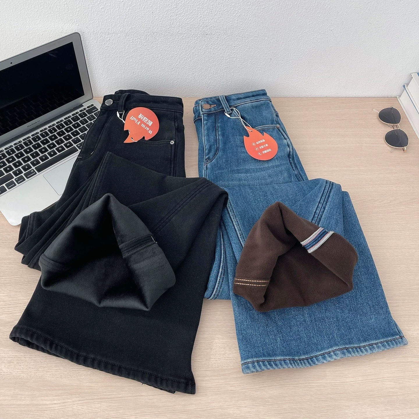 145180961 - 开叉高腰显瘦加厚加绒牛仔裤女冬季新款裤子宽松直筒垂感阔腿裤冬 393642