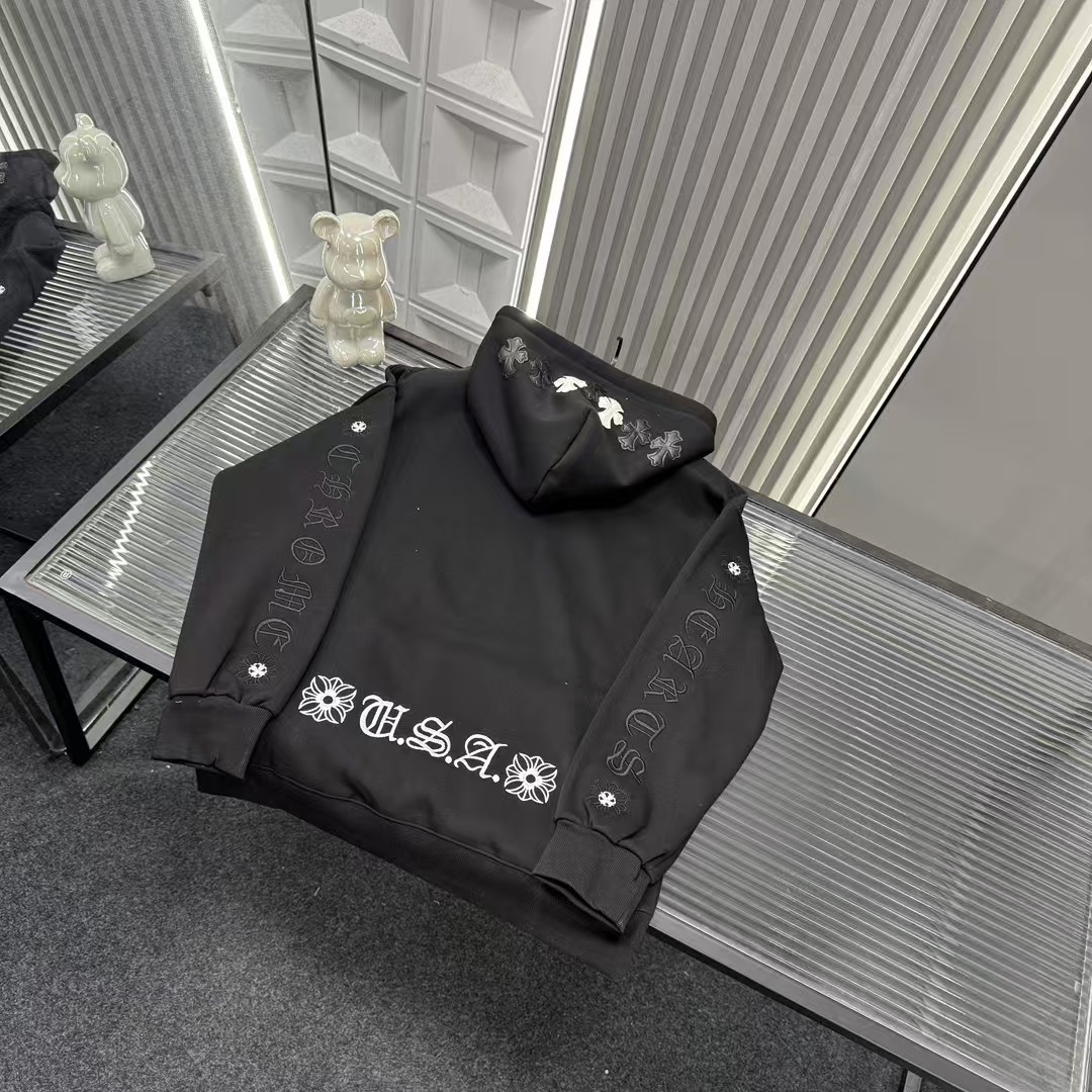 秋冬爆款热销款推荐克罗心加绒连帽卫衣 手臂植绒梵文后背刺绣图案 帽子贴皮刺绣十字架 三标齐全官网一致 放大看细节原相机实物拍摄 颜色 黑色 尺码 L 4xl L 80 105斤 XL 105 120斤 2XL 120 140斤 3XL 140 160斤 4XL 160 180斤