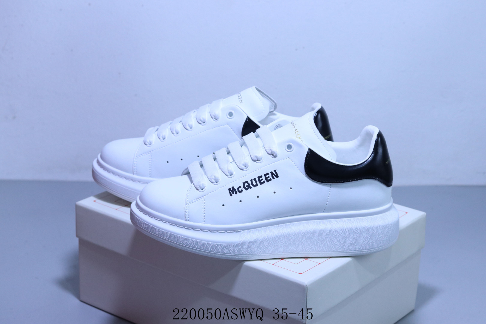 AlexanderMcQueen 亚历山大 麦昆MCQ 情侣款运动小白鞋厚底增高闪尾光滑牛皮平底鞋休闲鞋 时尚男女板鞋潮运动鞋 220050ASWYQ 35 45