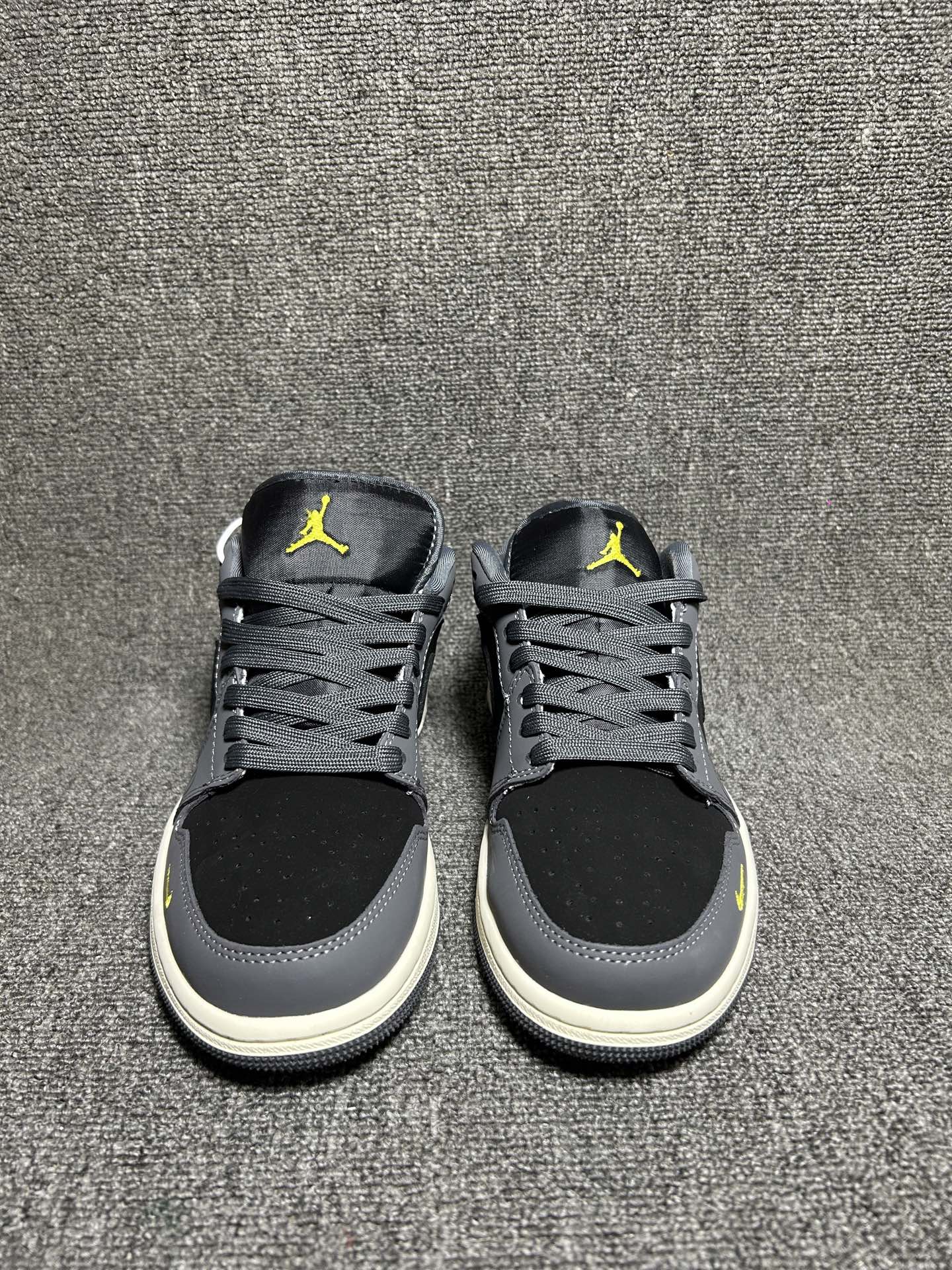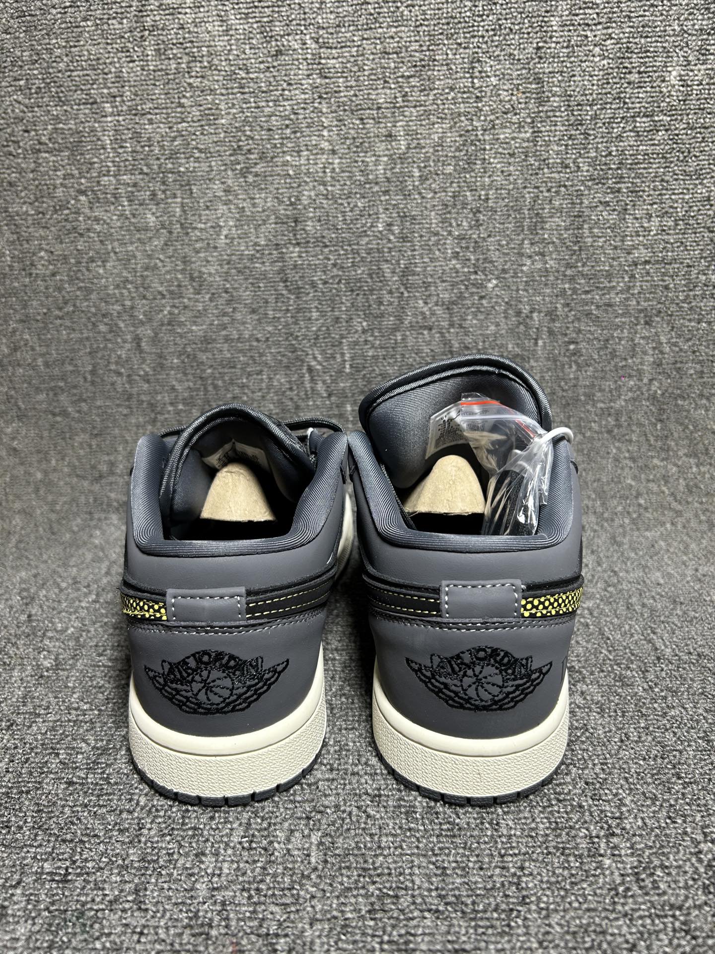 基于Air Jordan 1 Low经典低帮鞋型打造 鞋底为米白色橡胶材质 鞋头处有黄色小勾细节点缀