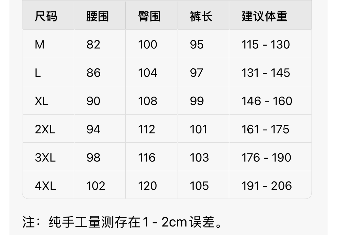尺码 M 4XL