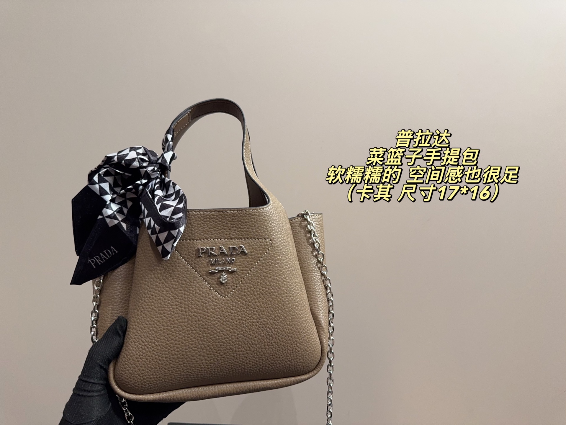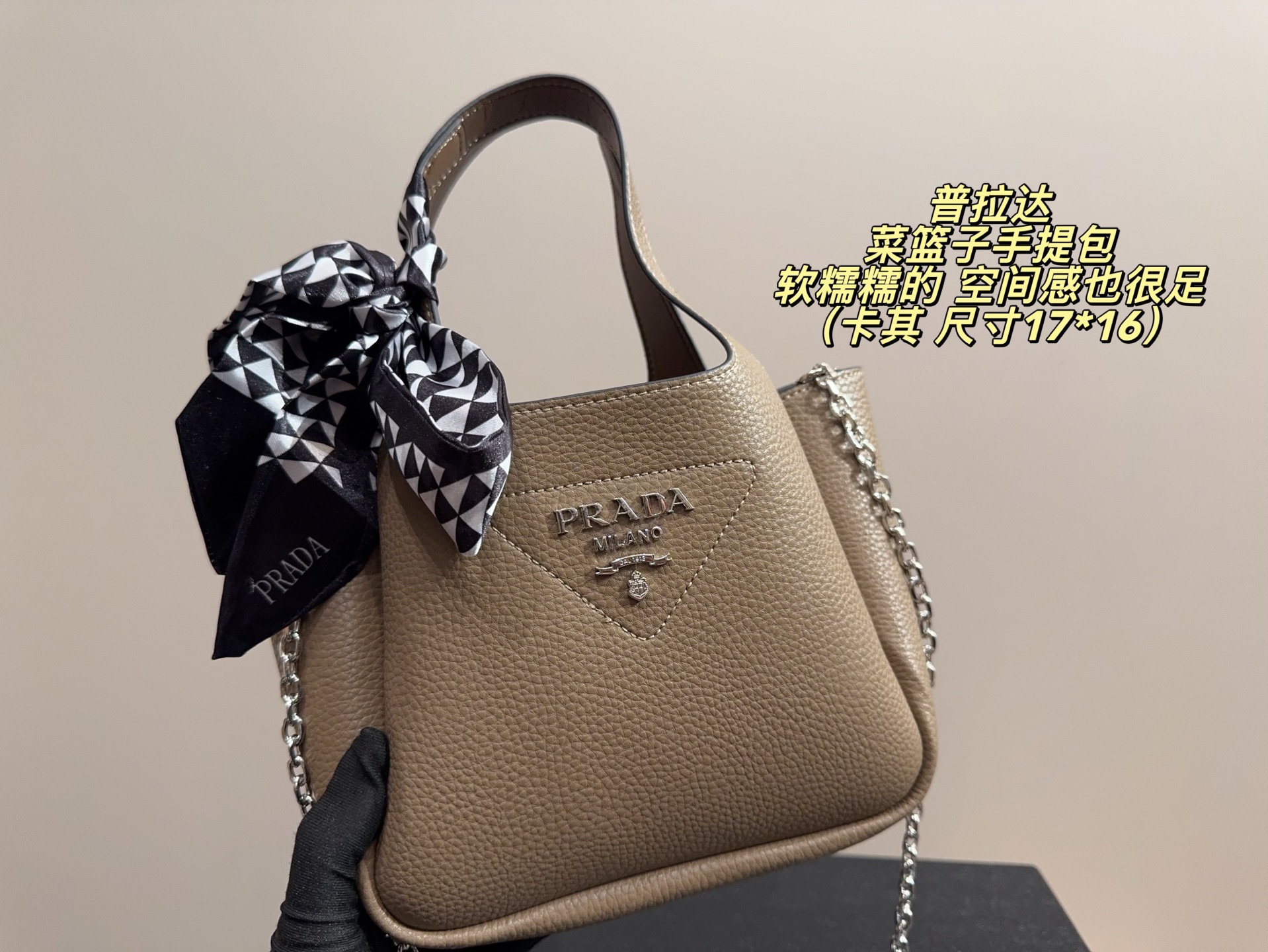 配盒尺寸17 16 普拉达 菜篮子手提包 PRADA 软糯糯 446290