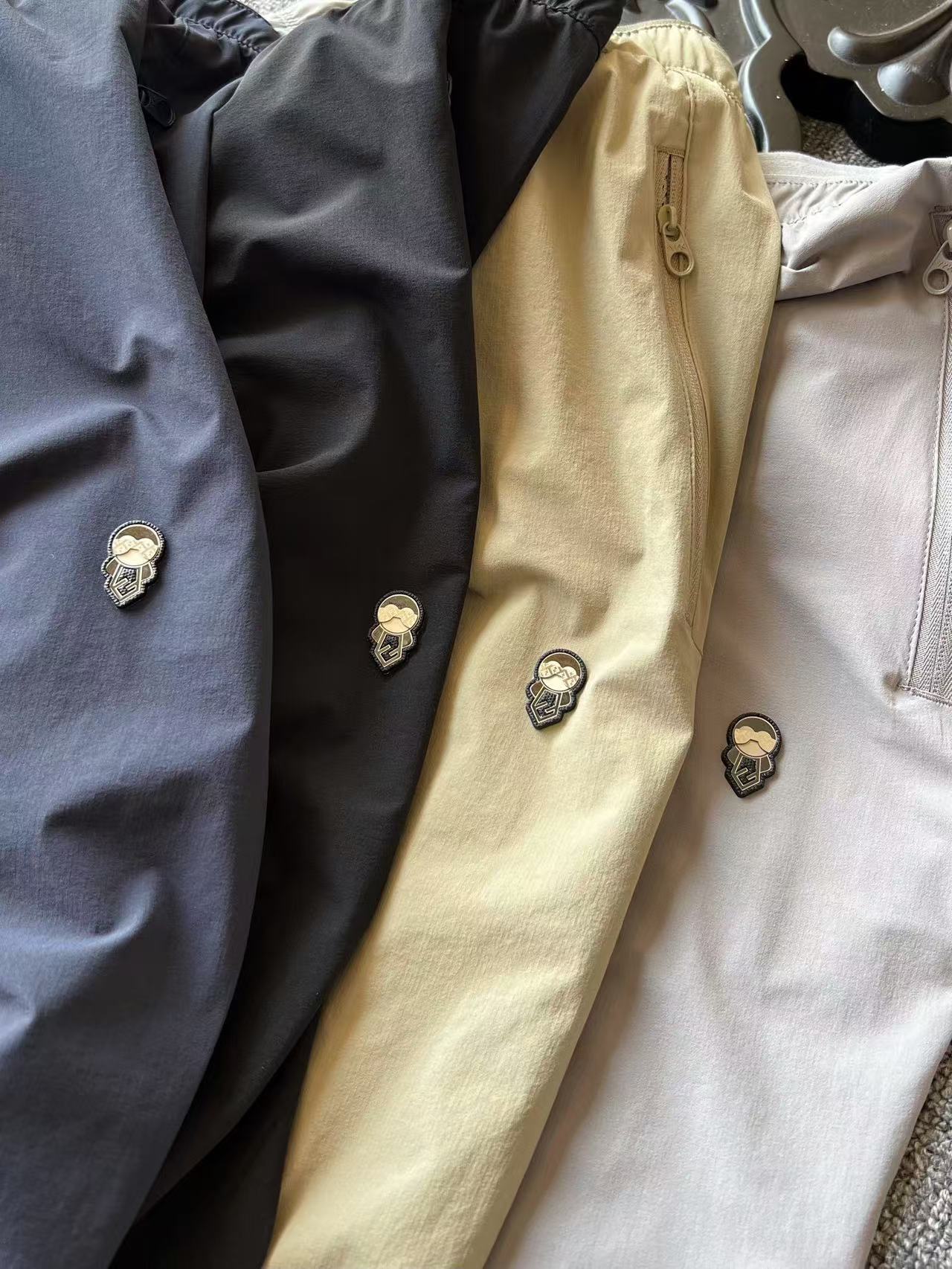 细节细节再细节 Fendi家商场新品运动冰氧速干锦棉直口长裤 裤前激光浮雕金属芬迪老佛爷标识 轮廓镶嵌硅胶环绕 细品凹凸纹理 十分精致 内开式运动抽绳设计 全身多处拼接工艺 每一条裤子都是纯手工精细化生产