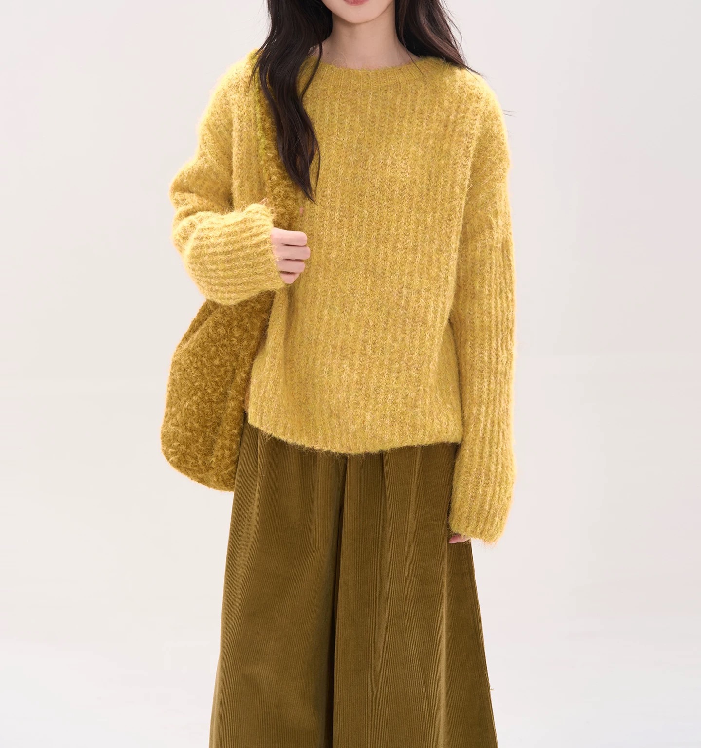 2035169406 - 秋冬爆款针织套头新款温柔风黄色马海毛毛衣女套头针织衫慵懒高级 387680