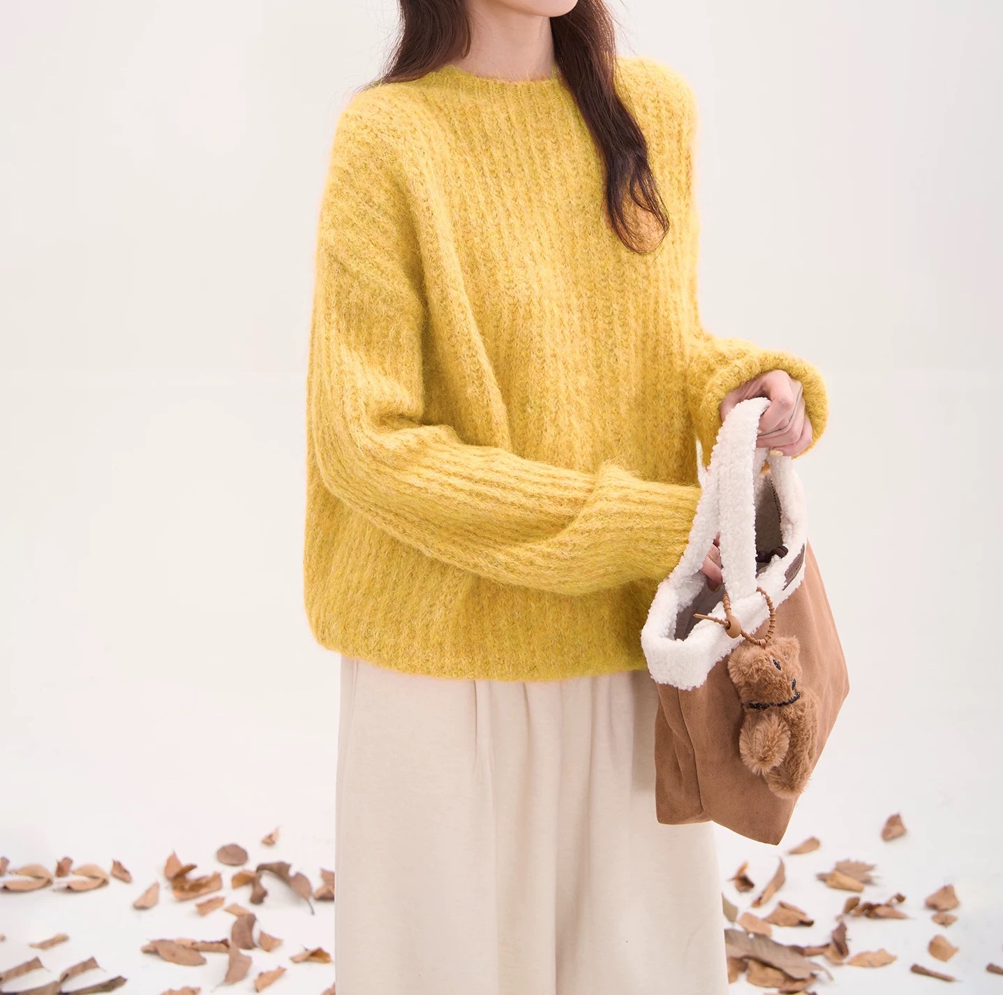 这件姜黄色毛衣直接把冬日氛围感拉满