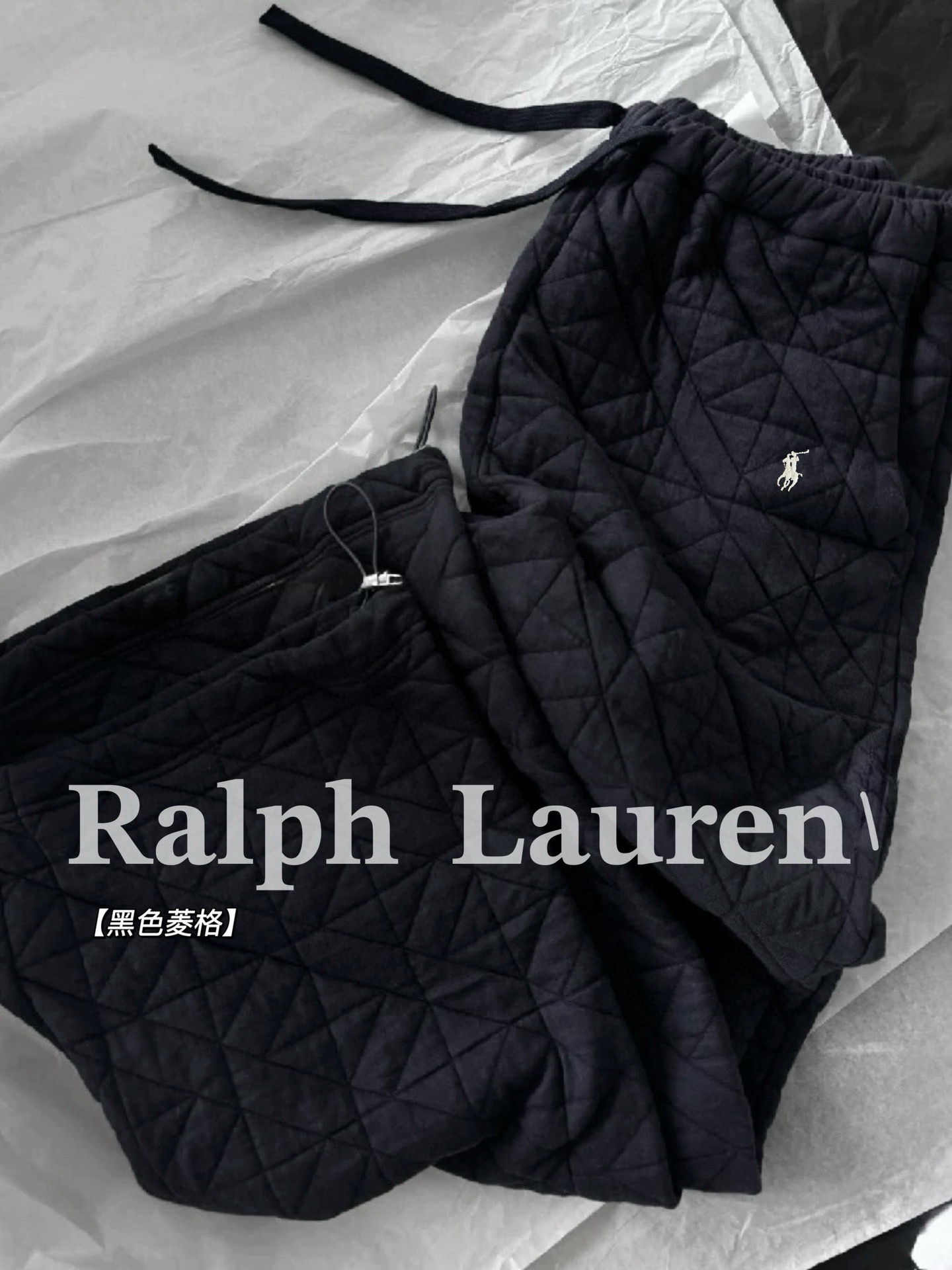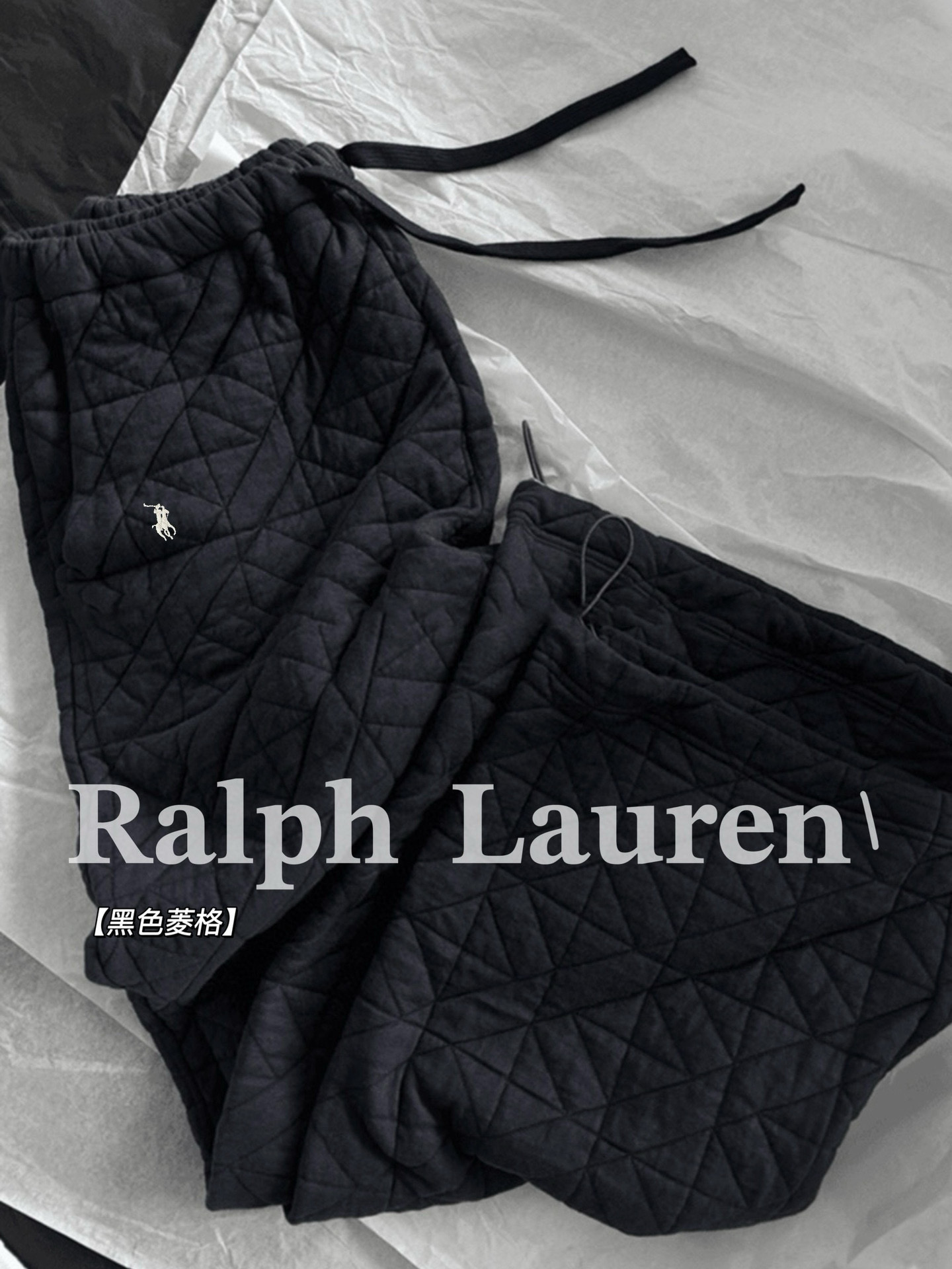 Ralph Lauren 拉夫劳伦RL小马刺绣菱格纹抽绳松紧腰绵绵裤长裤