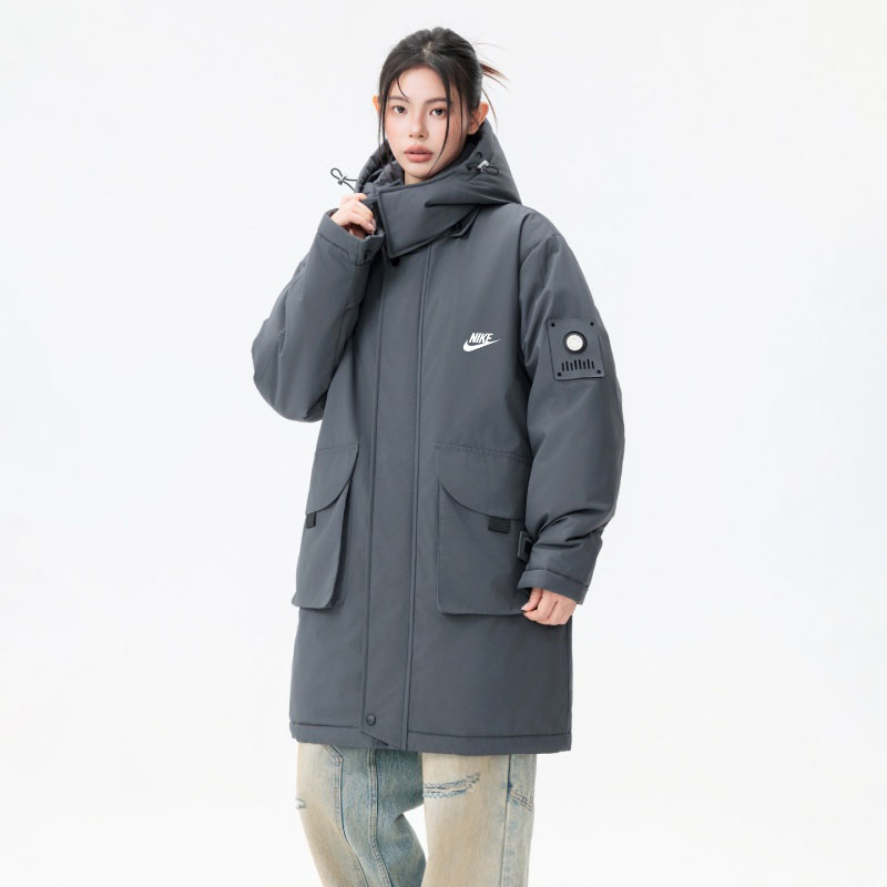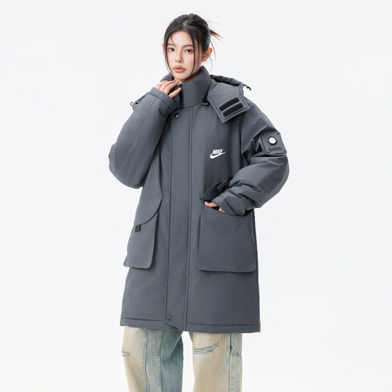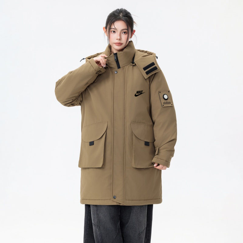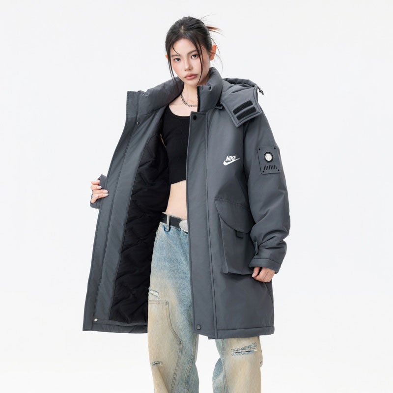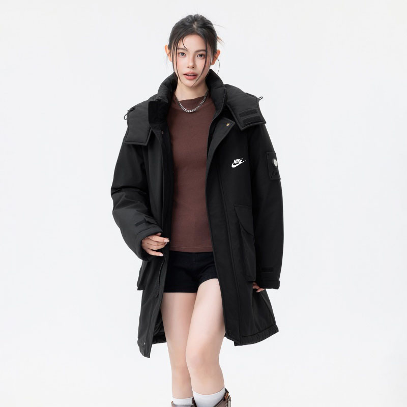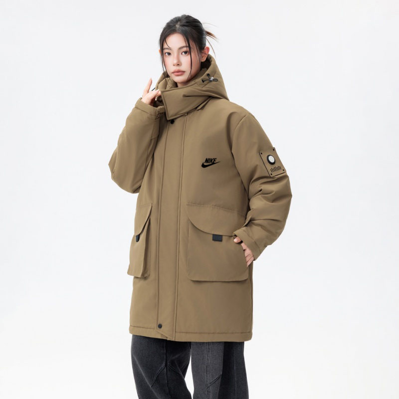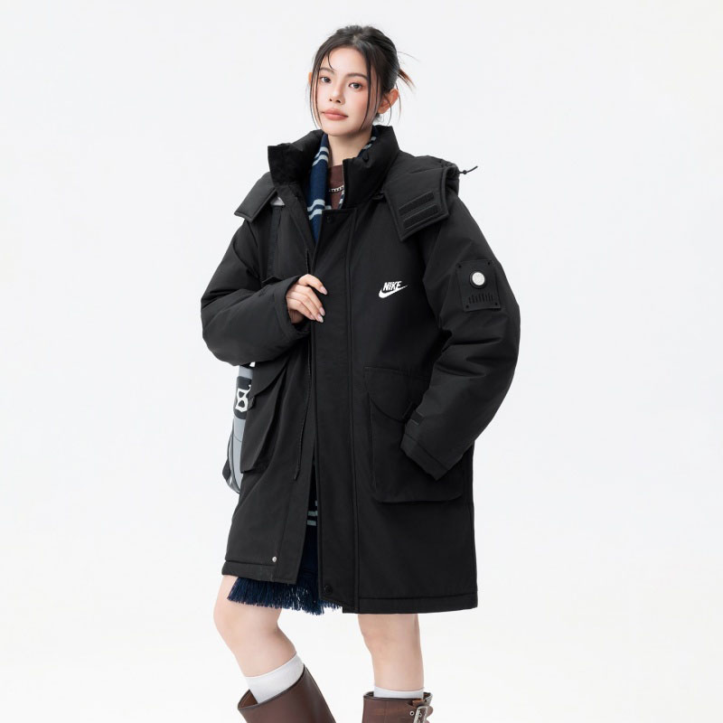 NIKE 耐克中长款羽绒棉服外套 男女同款 冬季衣橱必备的一款人气棉衣 上身超级好看 纯天然手塞羽绒棉填充 每个部分充棉饱满 给人温暖的的视觉感观 前面经典NK印花logo 小红书抖音网红立荐款 细节完美 保暖效果极佳 冬天一件足以 情侣闺蜜搭配更佳