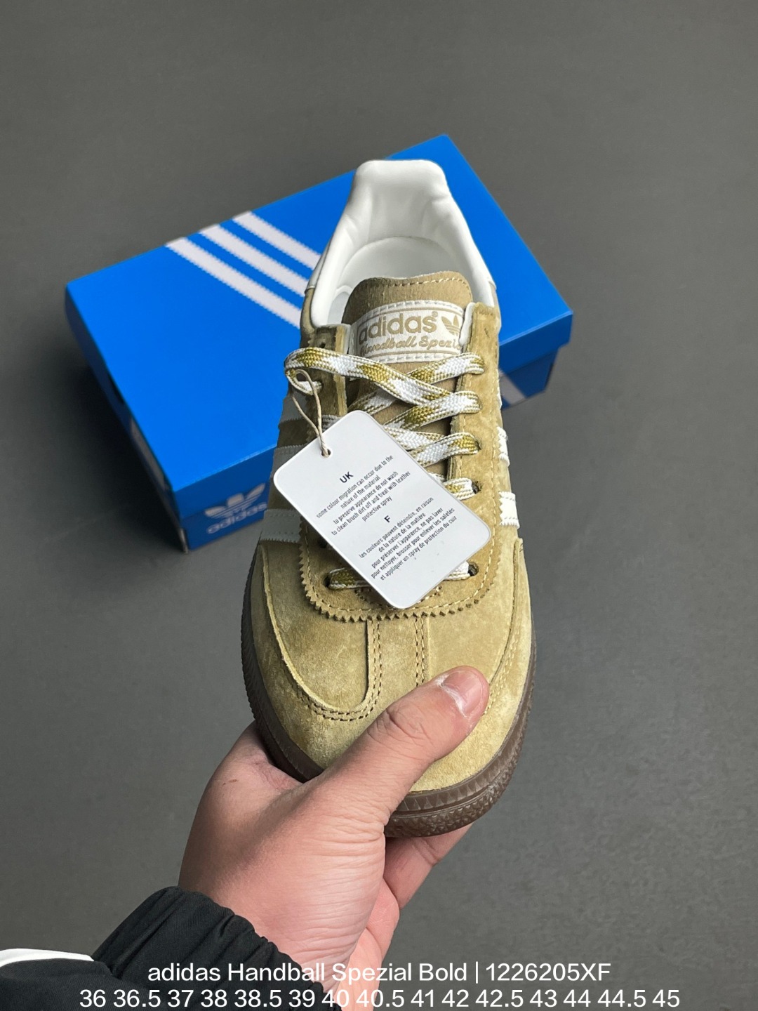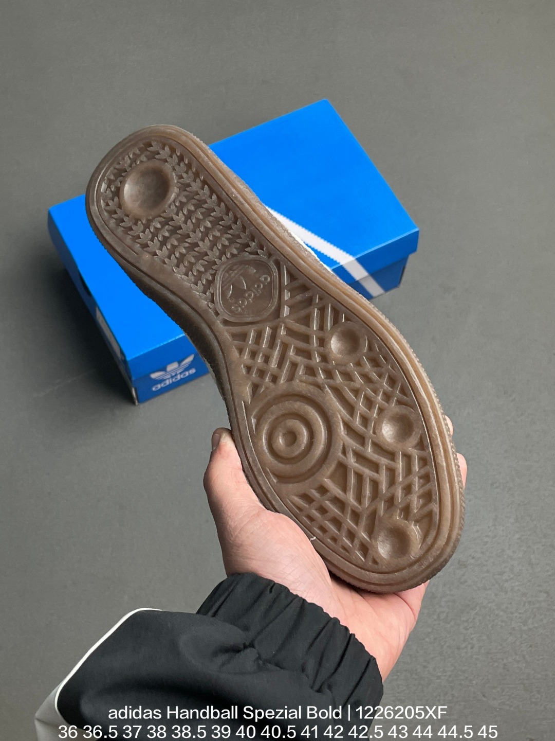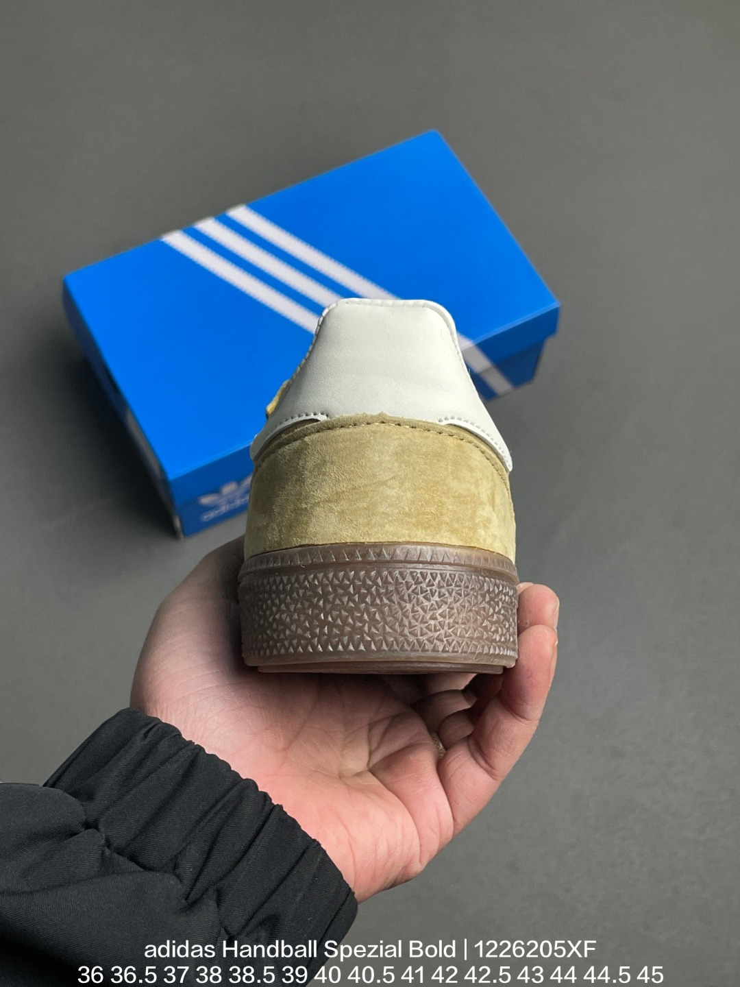 Adidas 阿迪达斯 采用猪巴革组合纤维革鞋面材质 外置加厚橡胶大底全新三层松糕底 阿迪达斯adidas Handball Spezial Bold 手球松糕系列低帮复古百搭厚底增高低帮休闲运动板鞋