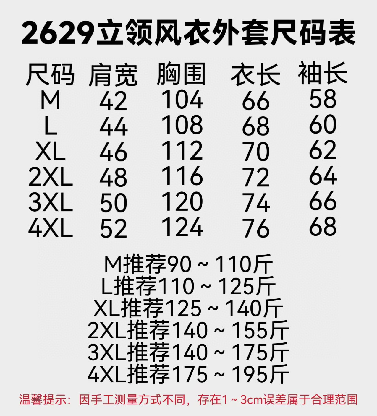 尺码 M 4XL