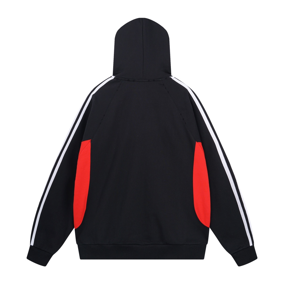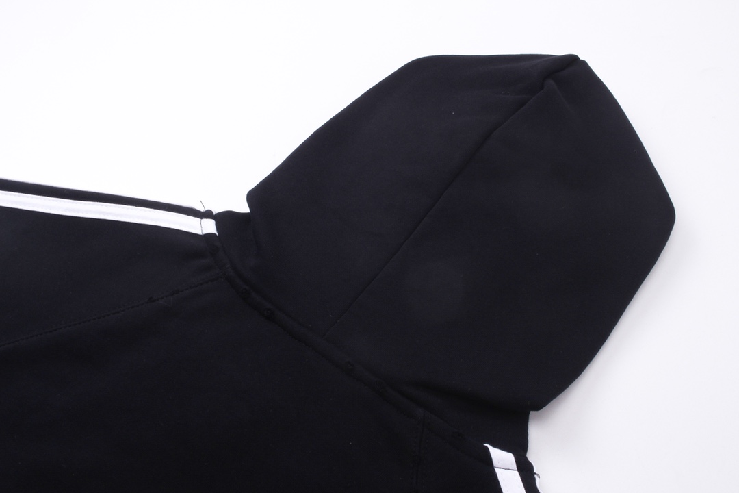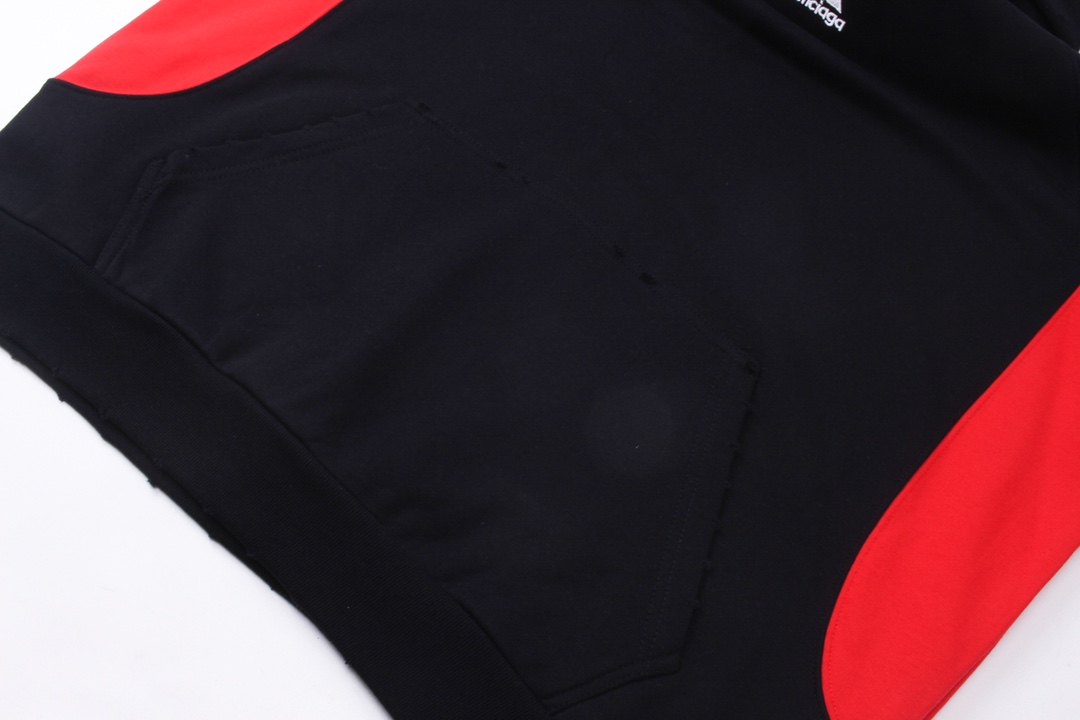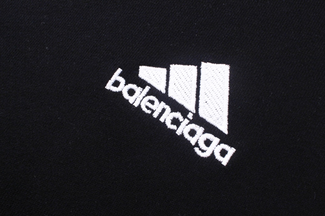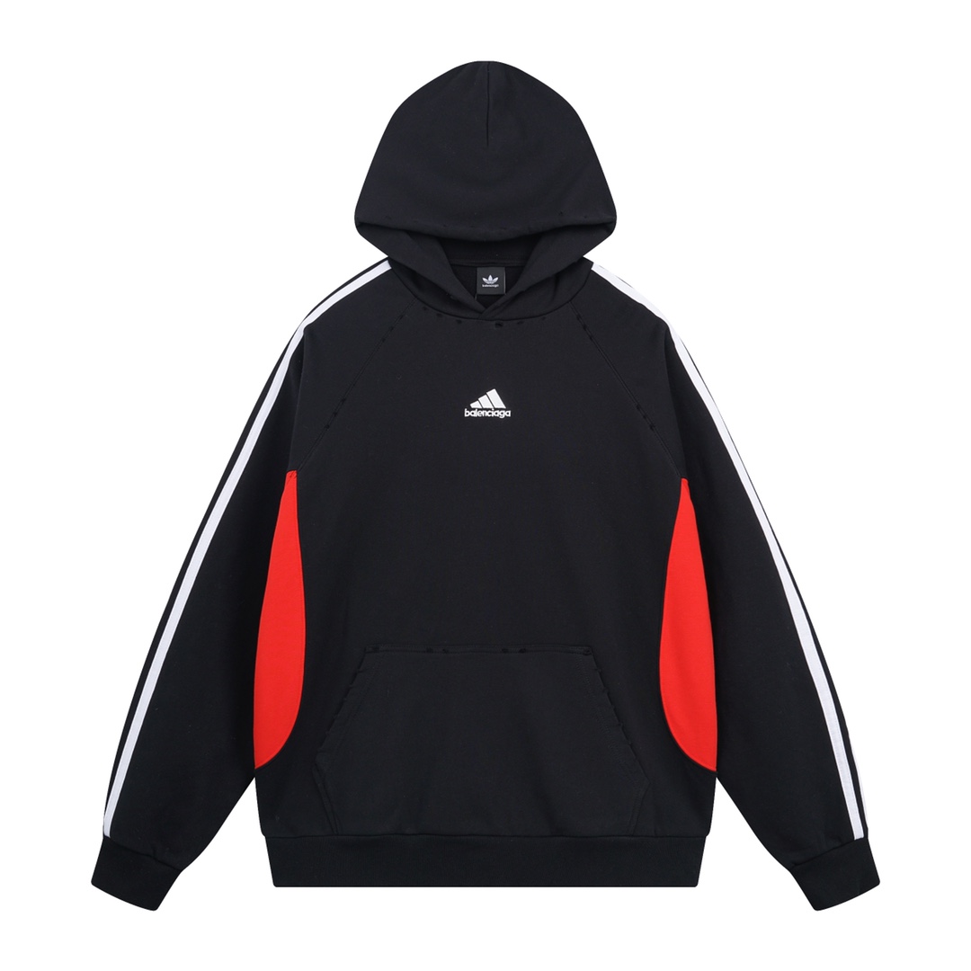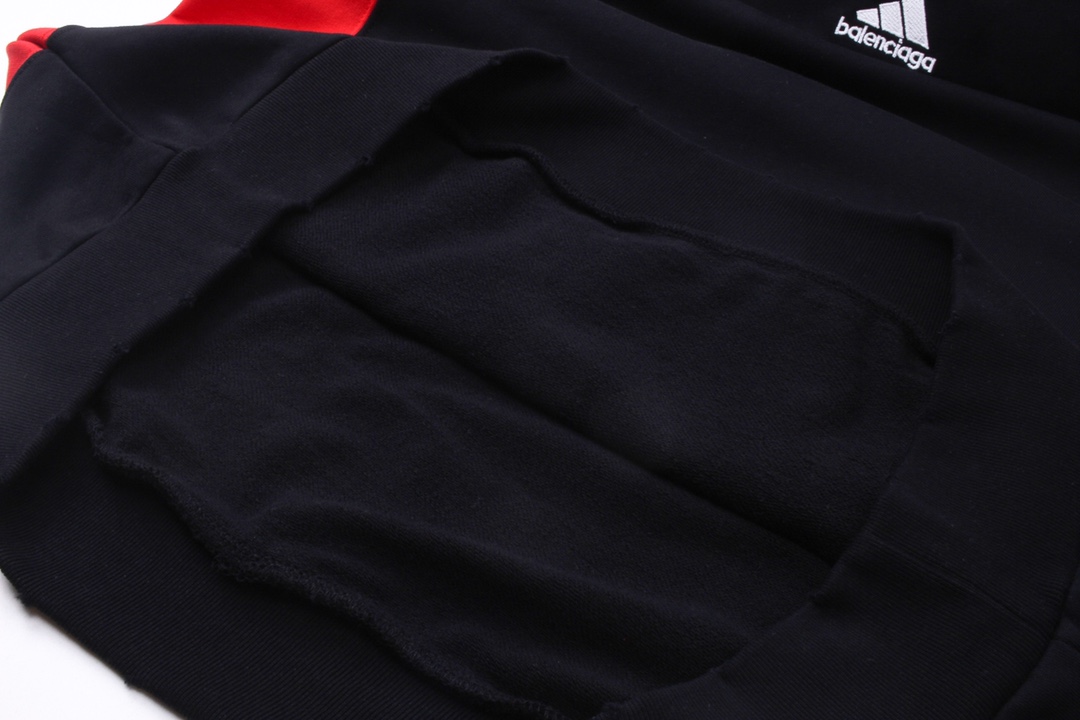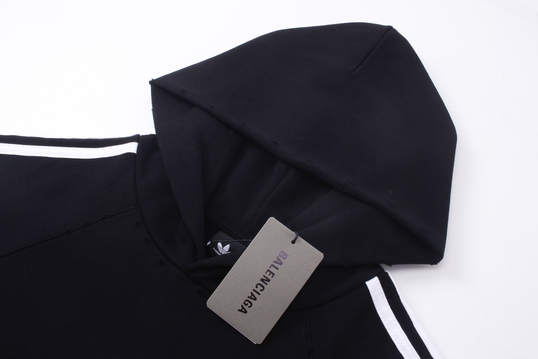 细节图 顶级版本 官网品质 BALENCI GA 巴黎联名Adidas阿迪达斯LOGO绣花连帽卫衣 拼接插色 成衣磨烂
